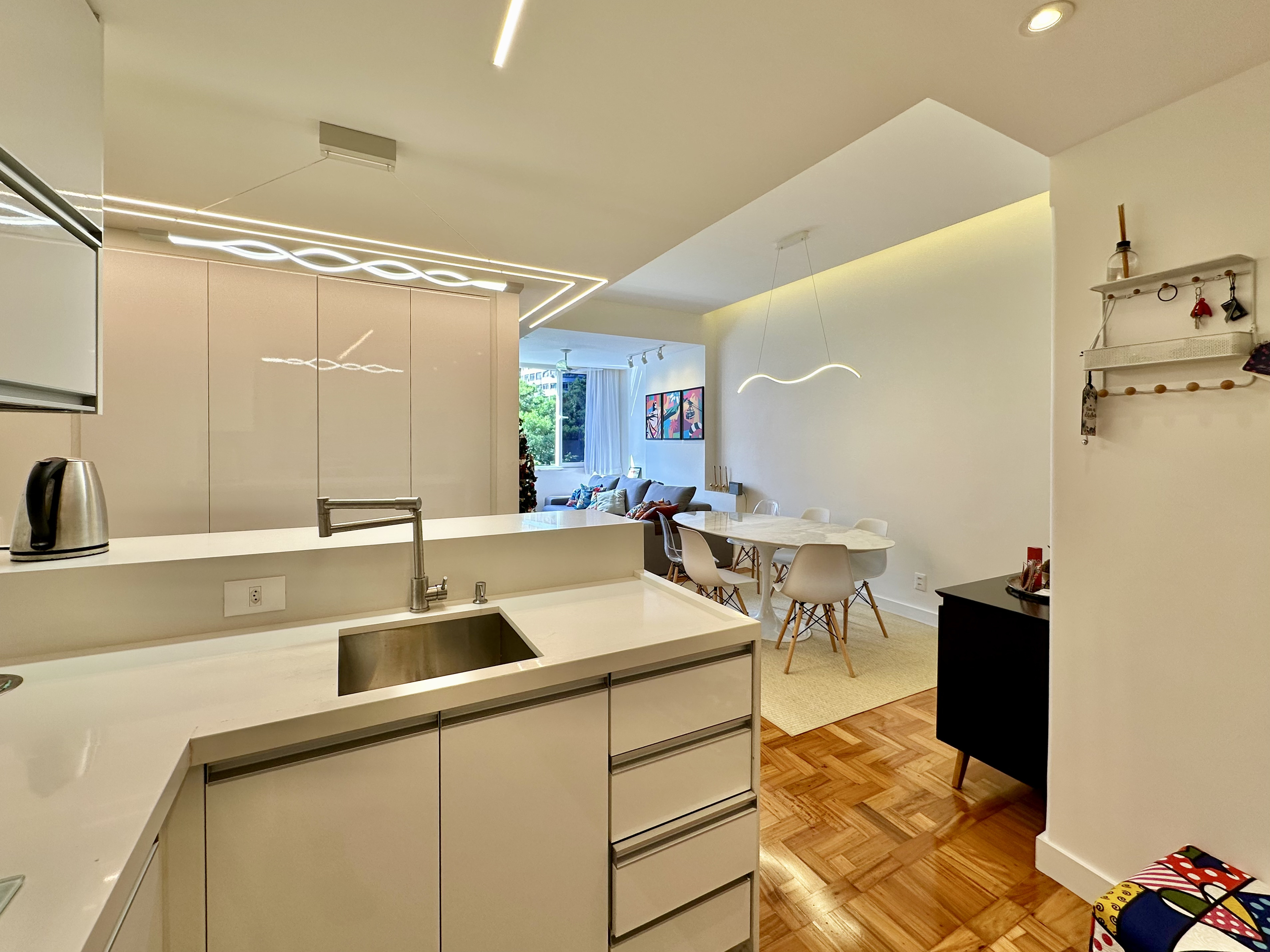 Com 95 m2, conta uma ampla sala, dividida em dois ambientes, proporciona um espaço perfeito para entretenimento e convívio. A cozinha, em conceito aberto e totalmente equipada, reflete modernidade e praticidade, criando o cenário ideal para experiências culinárias inesquecíveis.
