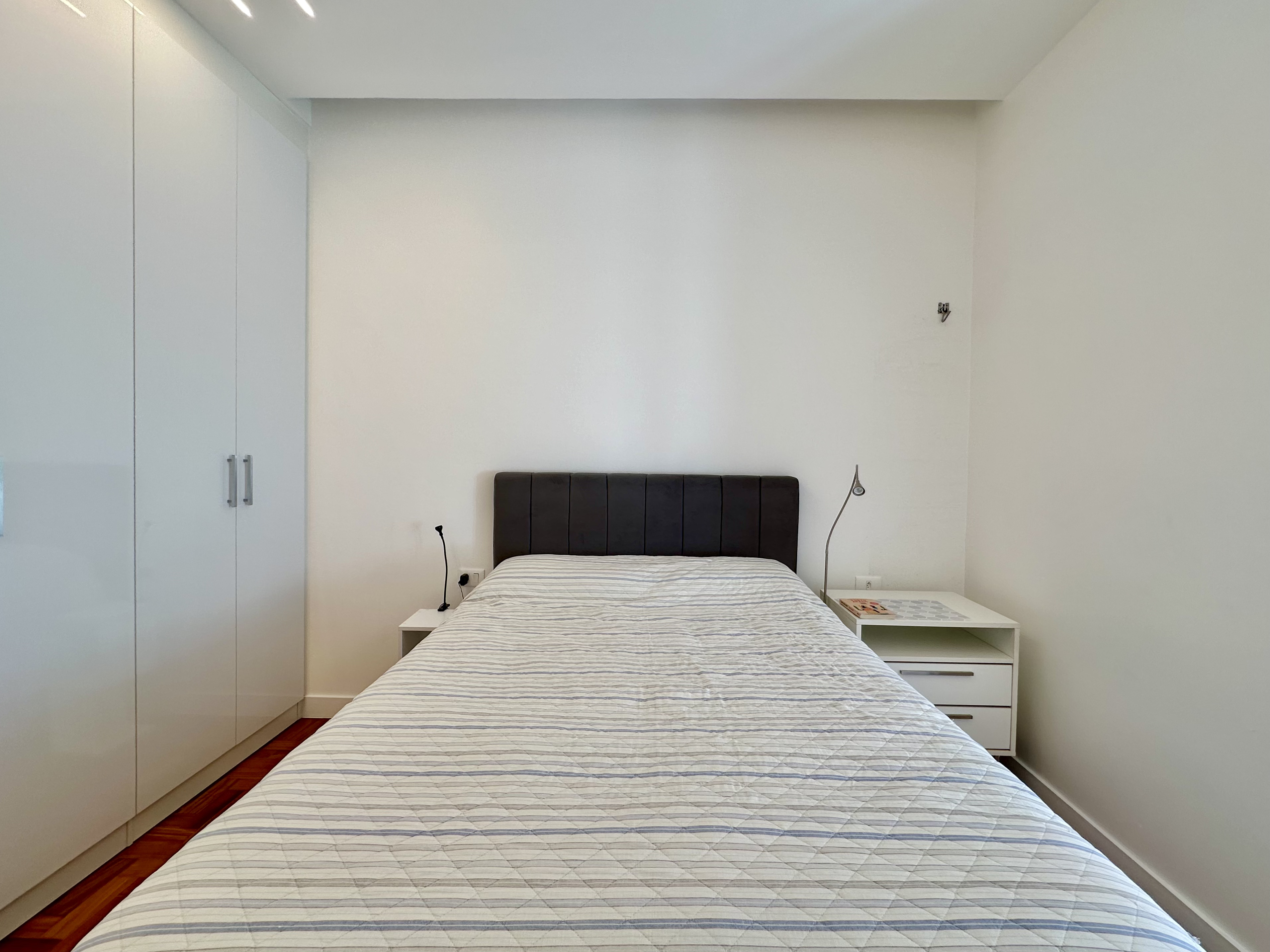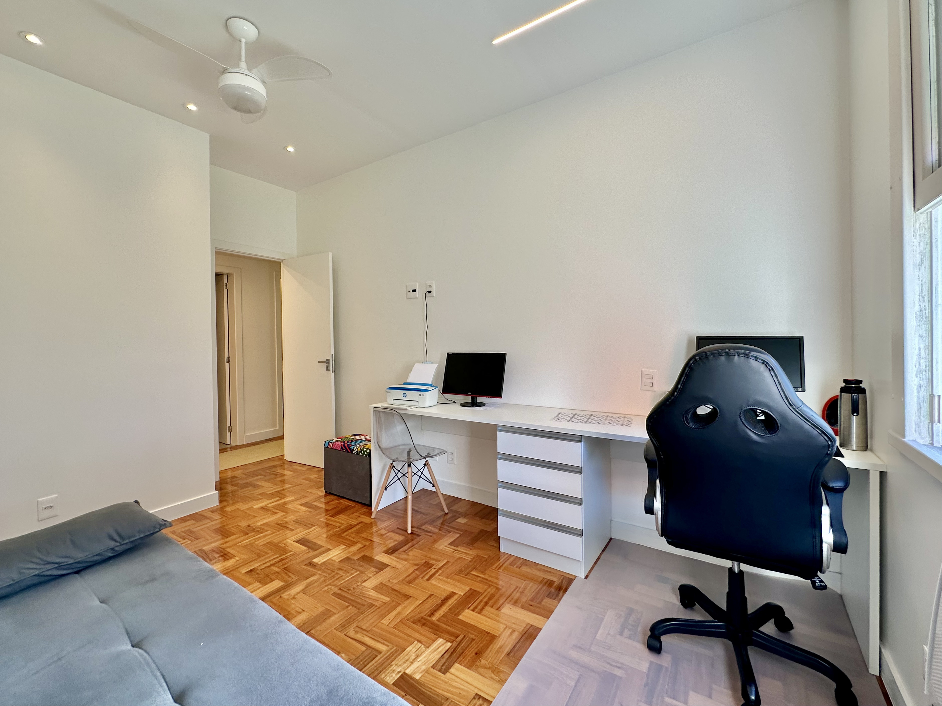 O corredor leva a três quartos espaçosos, sendo um deles uma suite, complementada por um banheiro social. Conta com uma área de serviço que oferece praticidade no dia a dia, tornando as tarefas domésticas uma experiência mais eficiente e organizada. Além disso, o imóvel inclui uma vaga na escritura, garantindo comodidade e segurança para seus moradores.