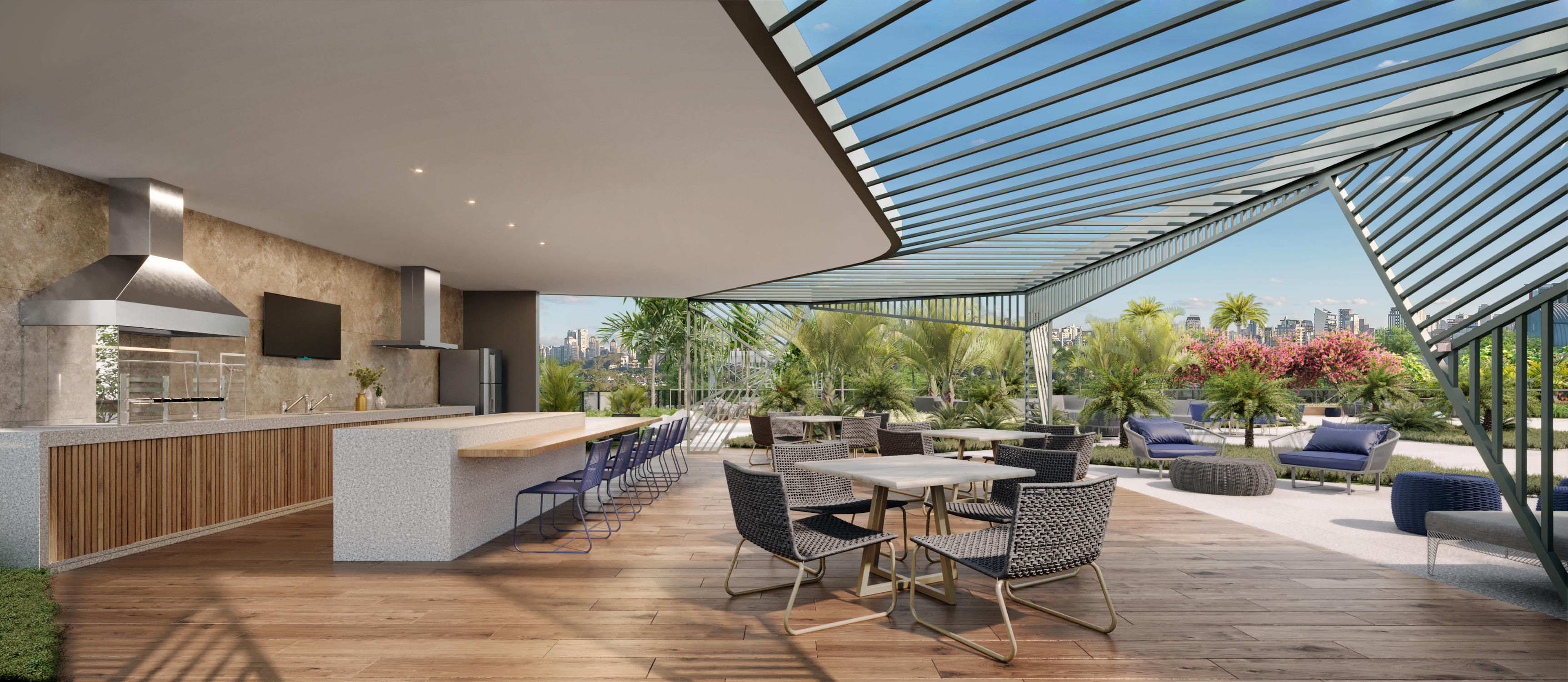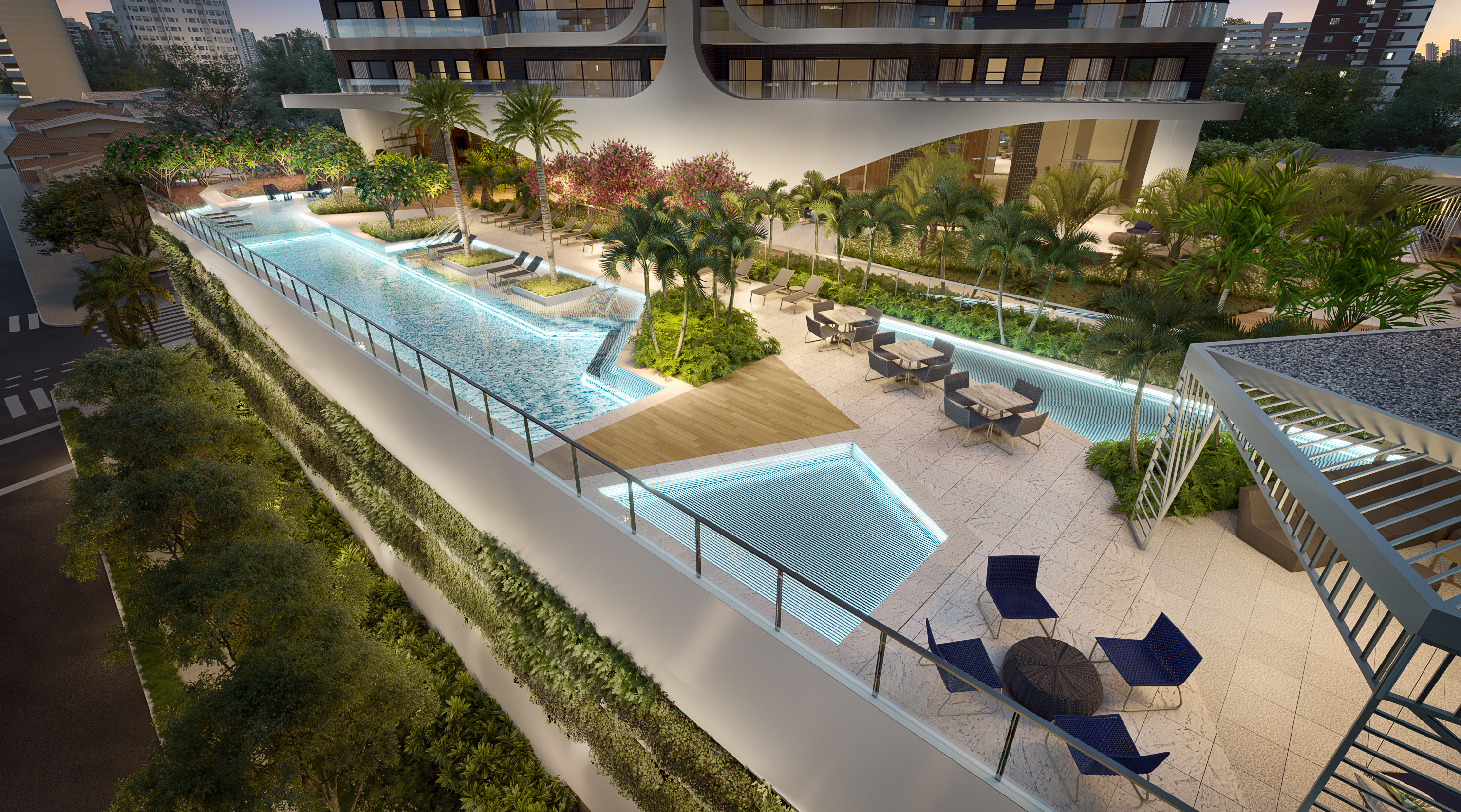 **Outros Diferenciais:**- Arquitetura e paisagismo biofílicos valorizando o contato com a natureza- Calçadas largas e sombreadas com jardins exuberantes- Brinquedoteca projetada para diversas faixas etárias