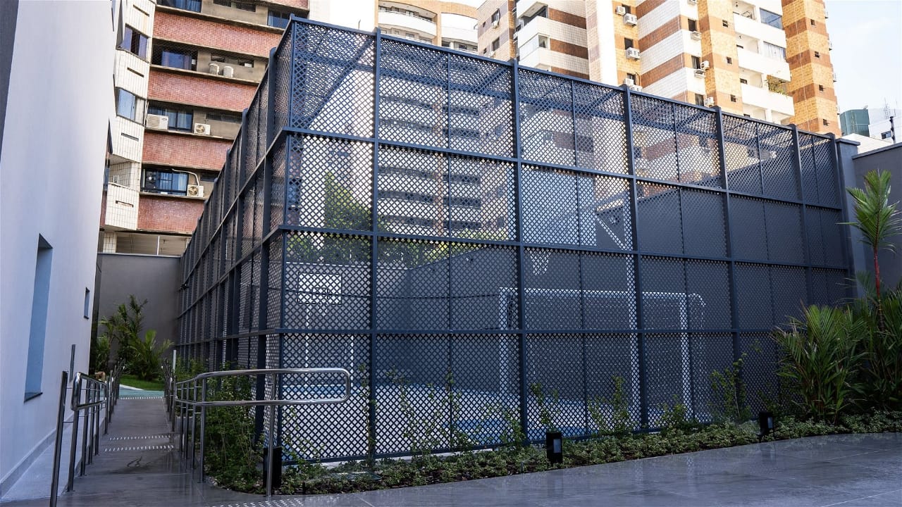 Áreas de lazer ao ar livre, como quadras esportivas ou pistas de caminhada