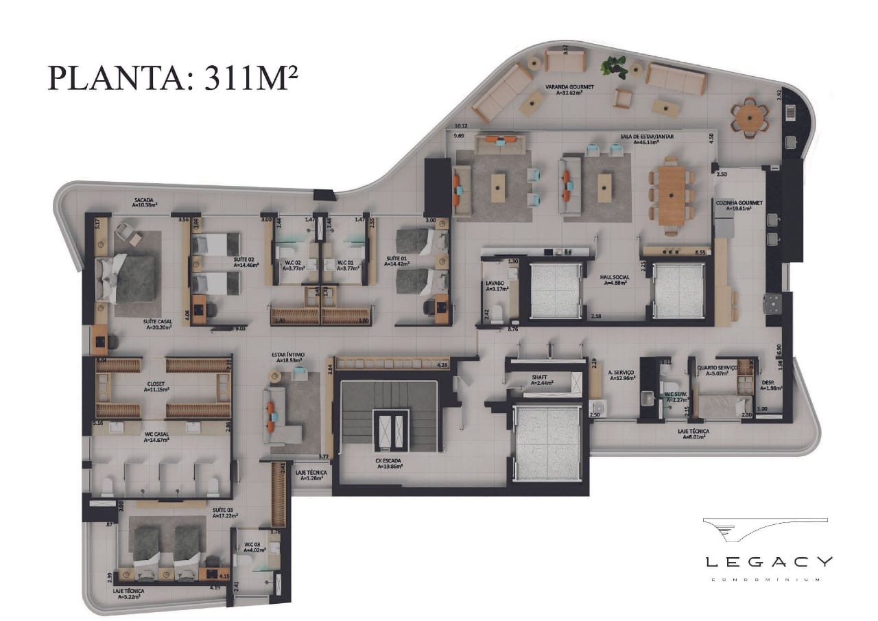 4 suítes, incluindo uma Suíte Master com WC duplo e closet- Estar íntimo- Dependência completa- Varanda Gourmet- Espaço amplo com 311m² **