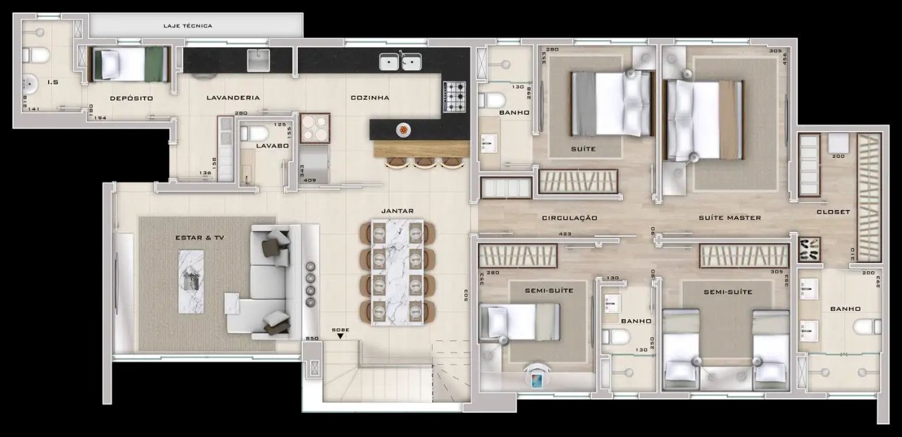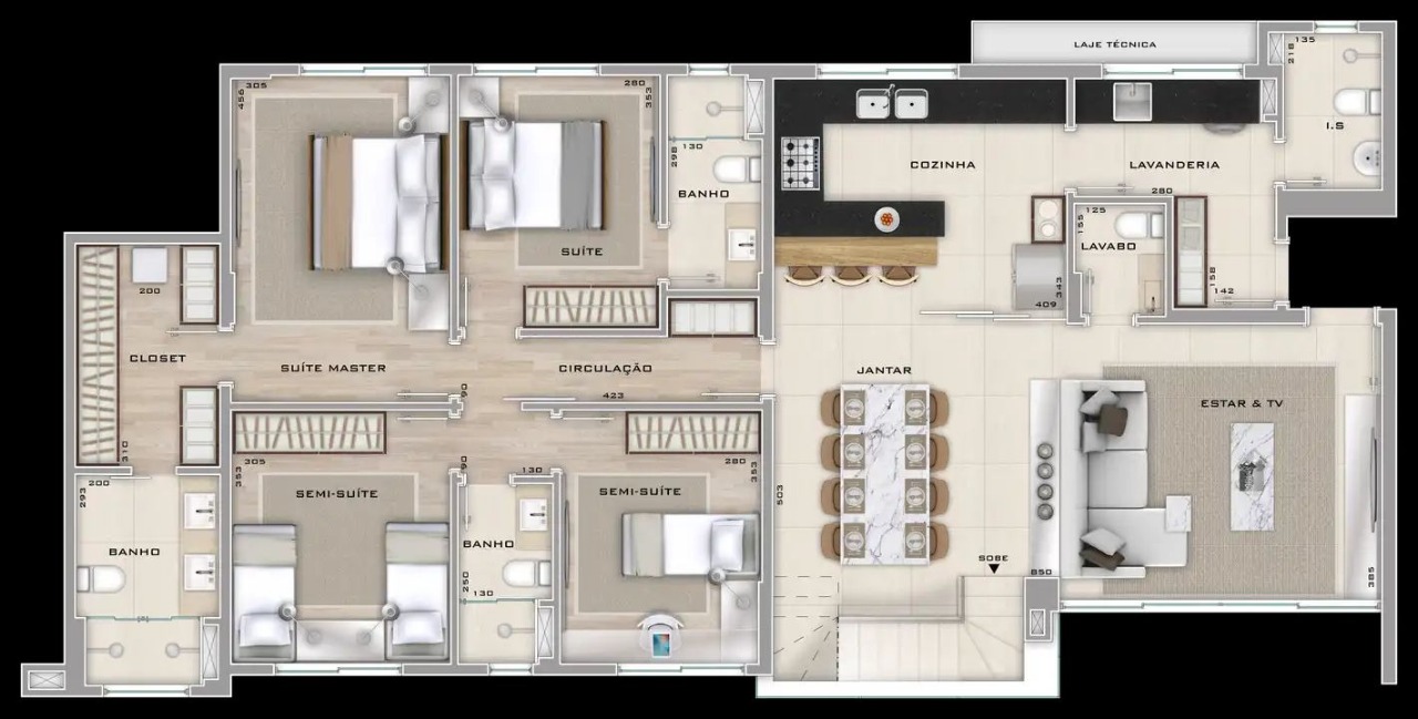 Apartamento com 5 quartos, 3 suites e 8 banheiros para aproveitar a vida
