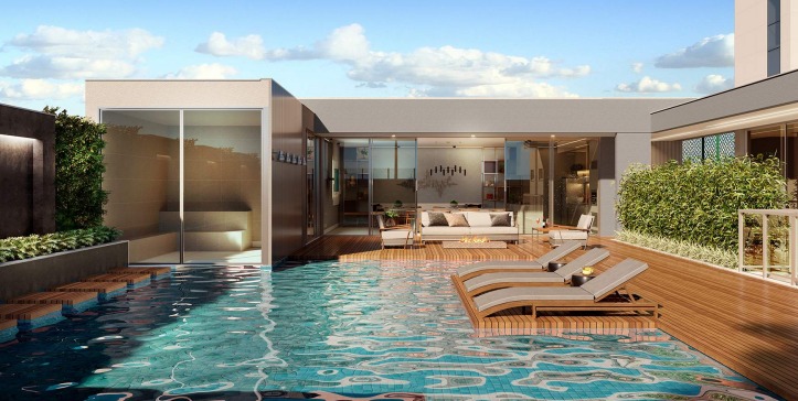 506 m²Cobertura com 5 quartos, 4 suites e 10 banheiros com uma linda piscina azul da cor do mar