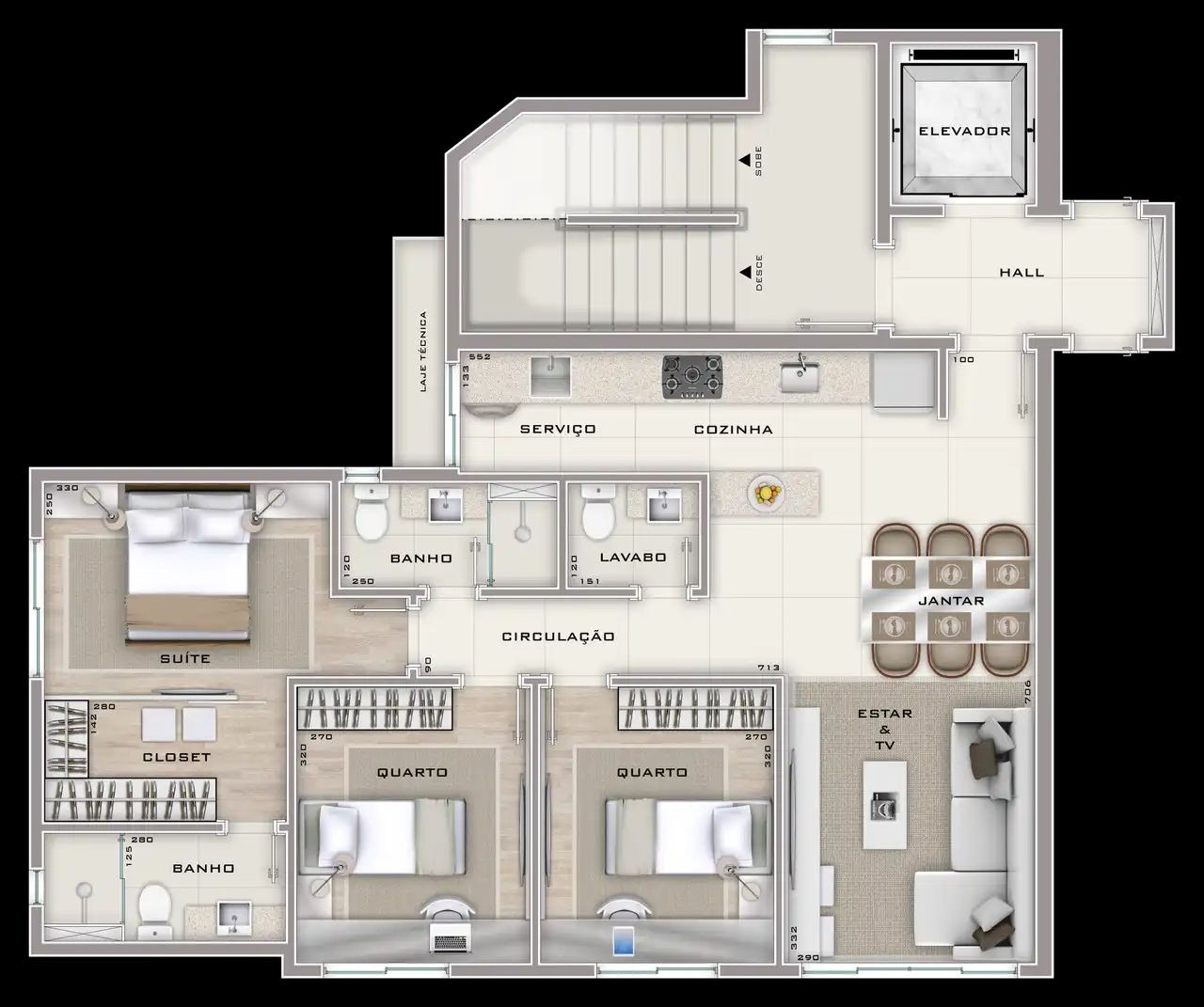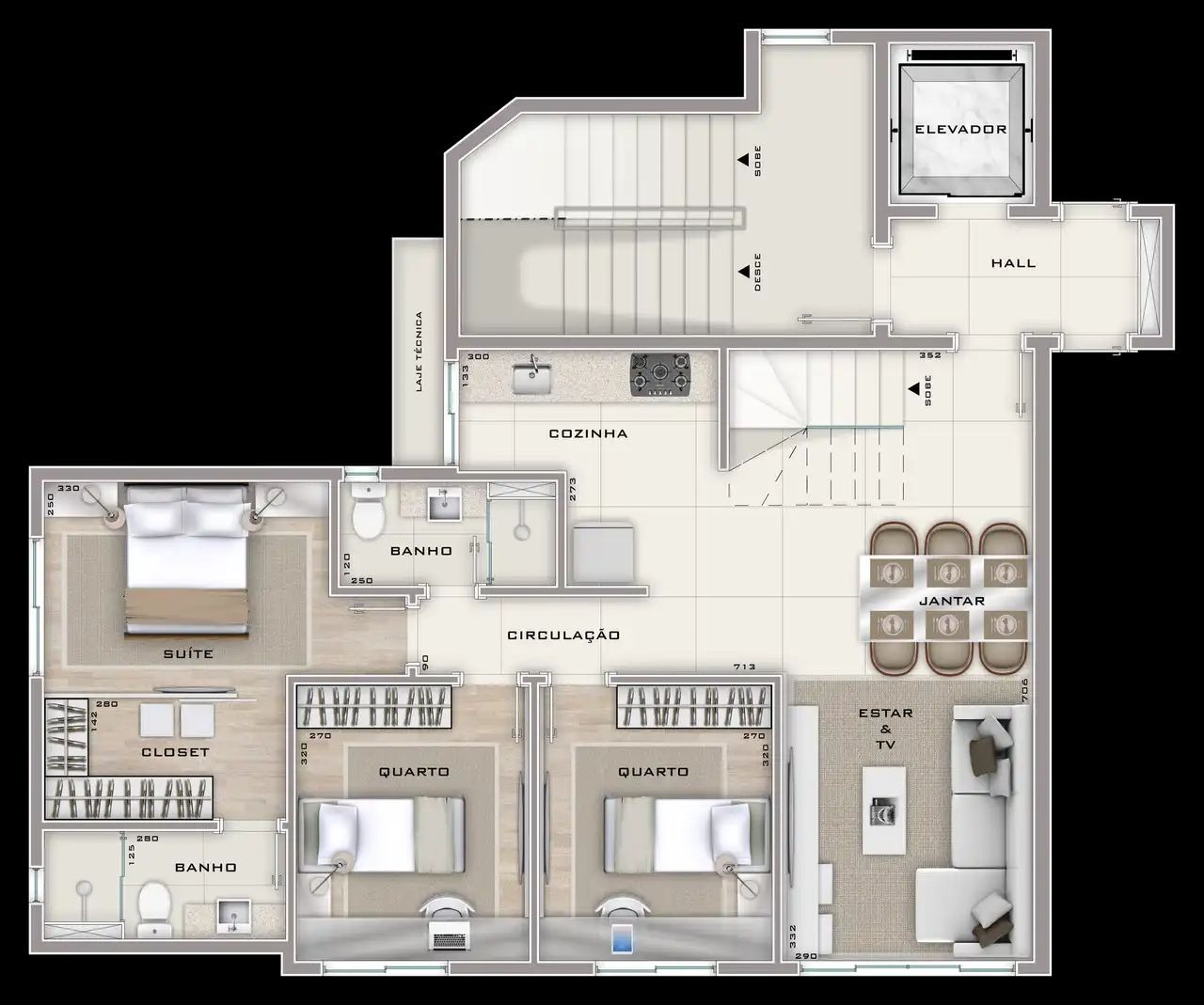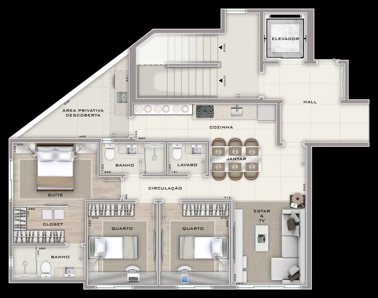 Apartamento com 31 quartos, 1 suite e 4 banheiros para aproveitar a vida