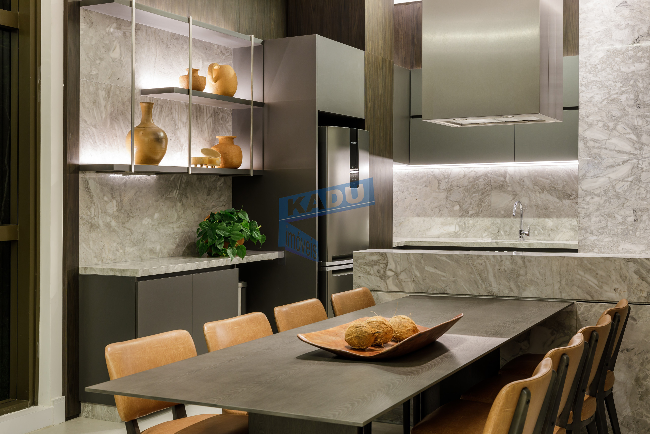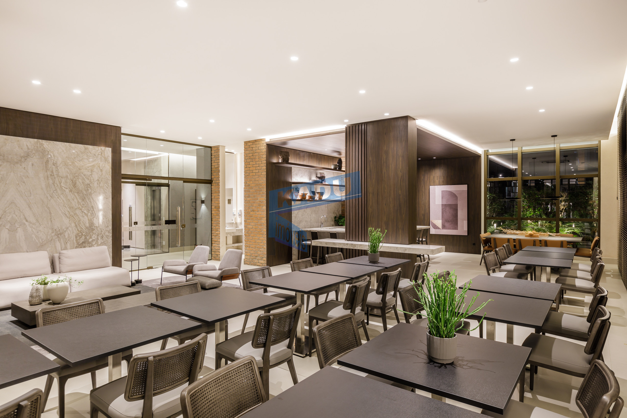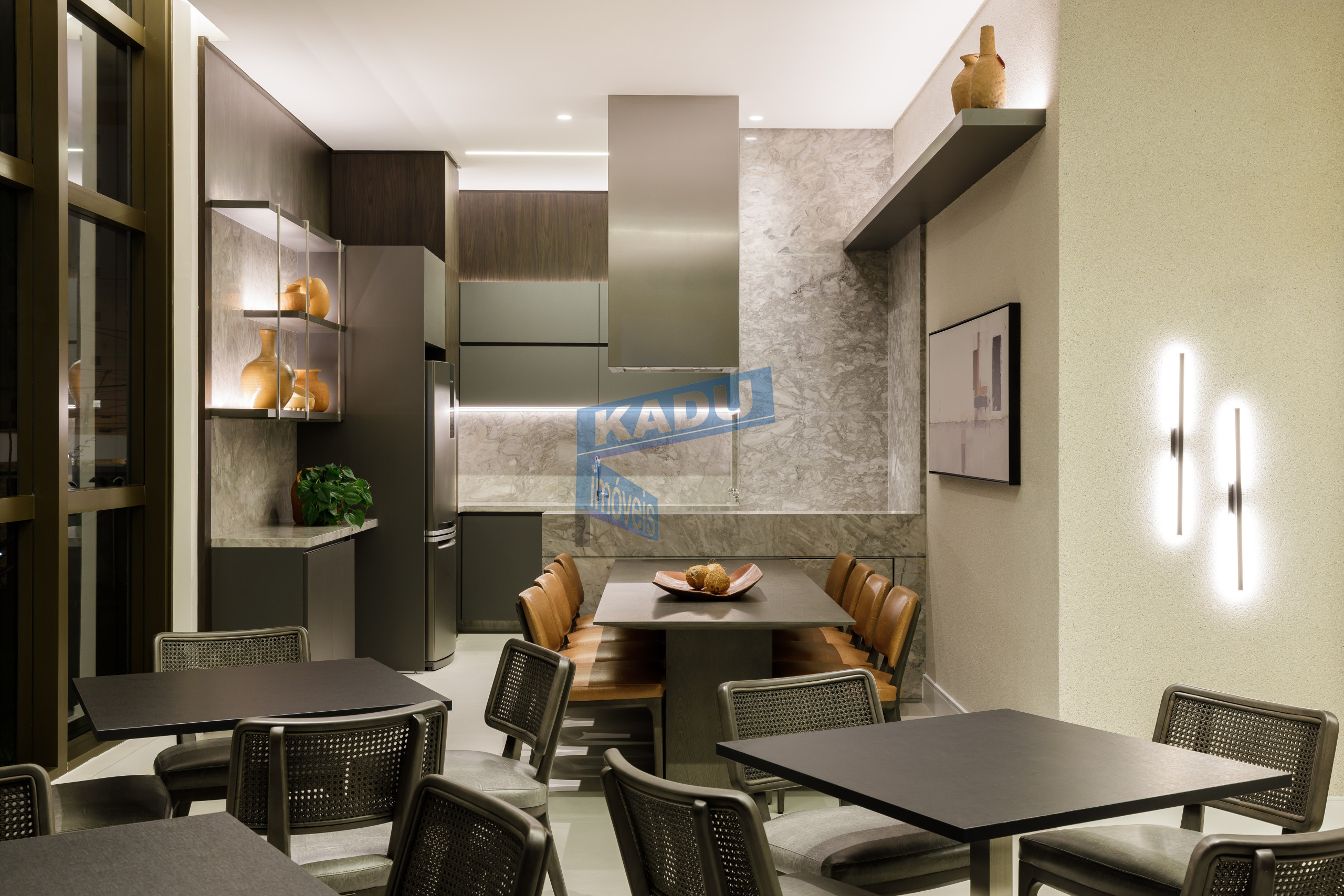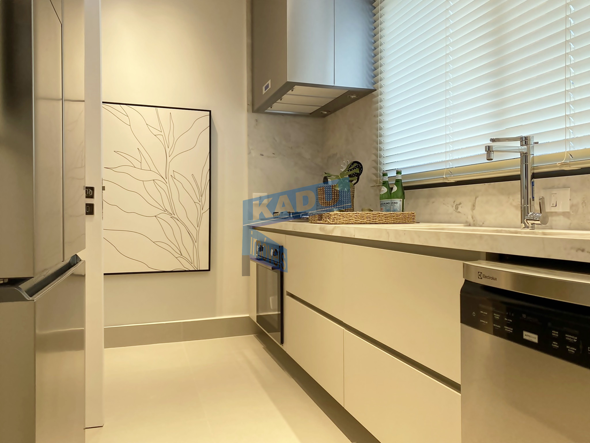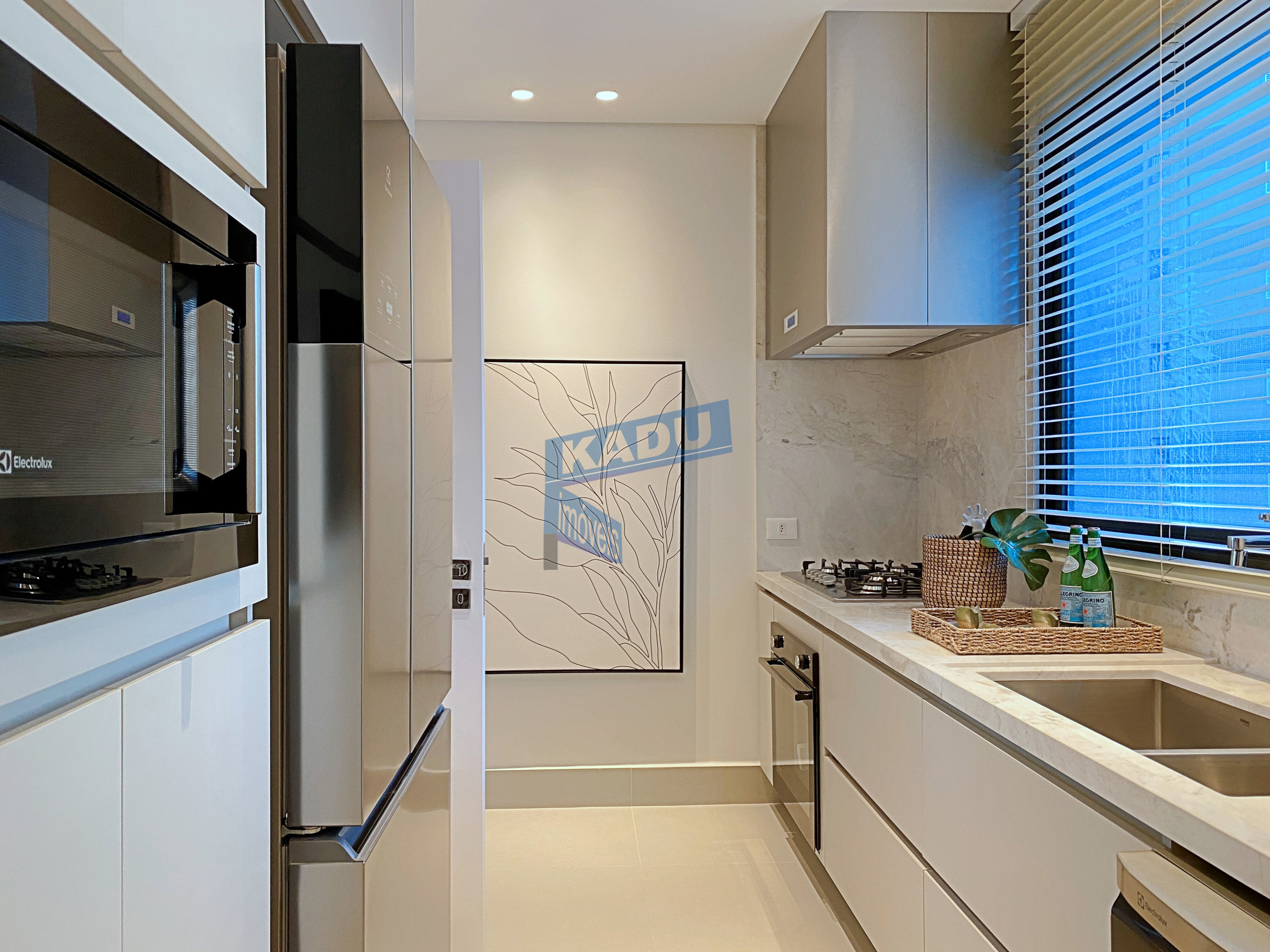Elevador com acesso direto ao apartamento, sala de estar e jantar integradas à sacada gourmet com churrasqueira à carvão, cozinha ampla e área de serviço com lavabo e despensa, terraço amplo com possibilidade de instalação de jacuzzi.