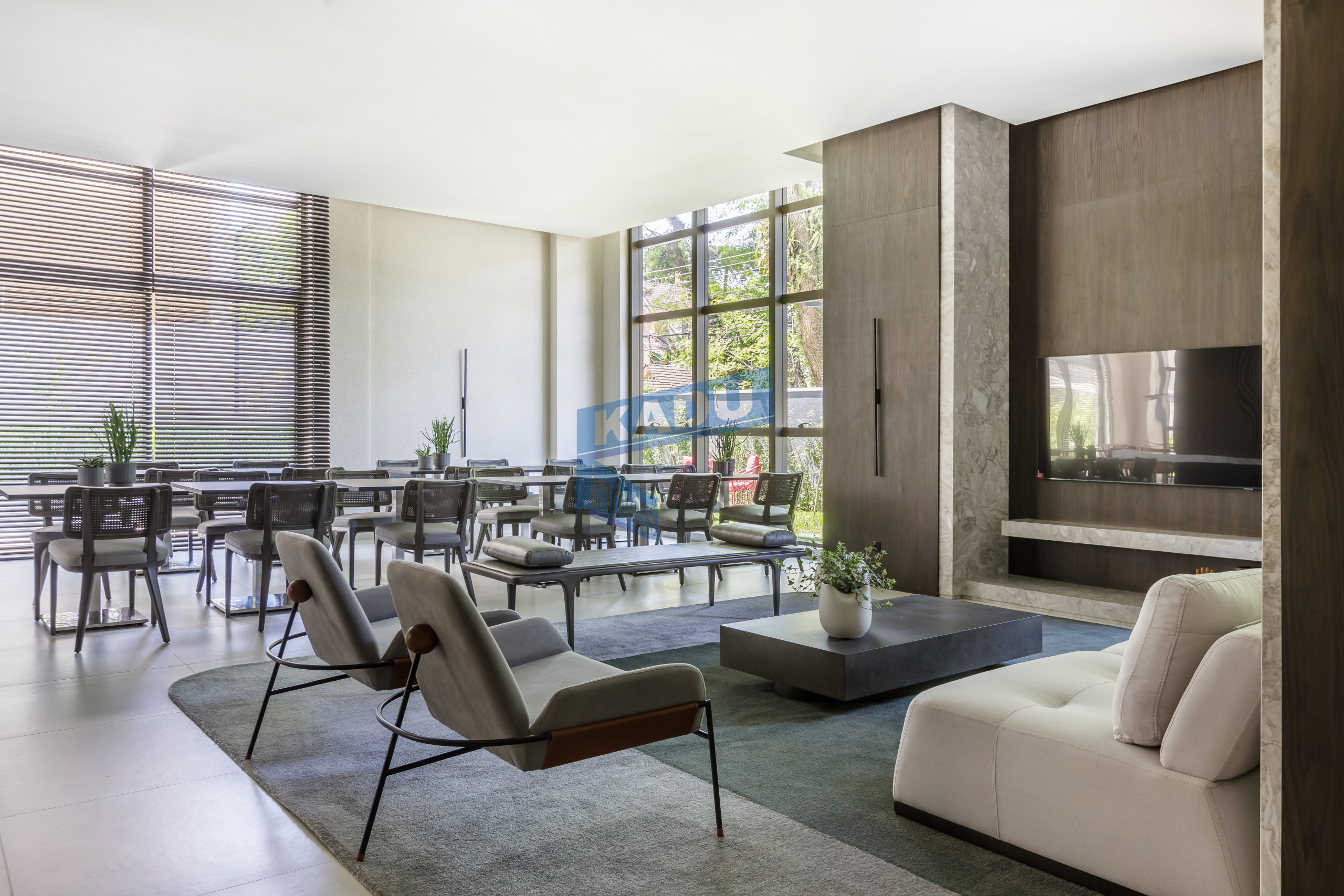 Elevador privativo social e de serviços, ambos com senha, living para dois ambientes,