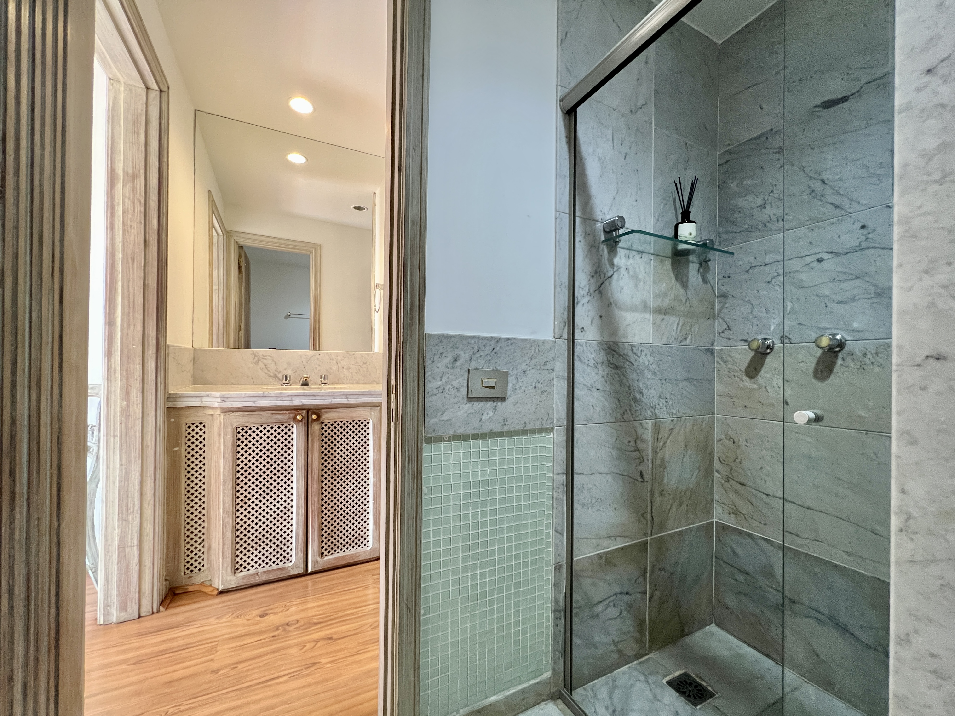 Com duas suítes bem planejadas, incluindo uma suíte Master com um amplo guarda-roupa, este apartamento oferece privacidade e conforto aos seus moradores. Além disso, os armários embutidos e o sistema de ar condicionado proporcionam praticidade e comodidade para o dia a dia.