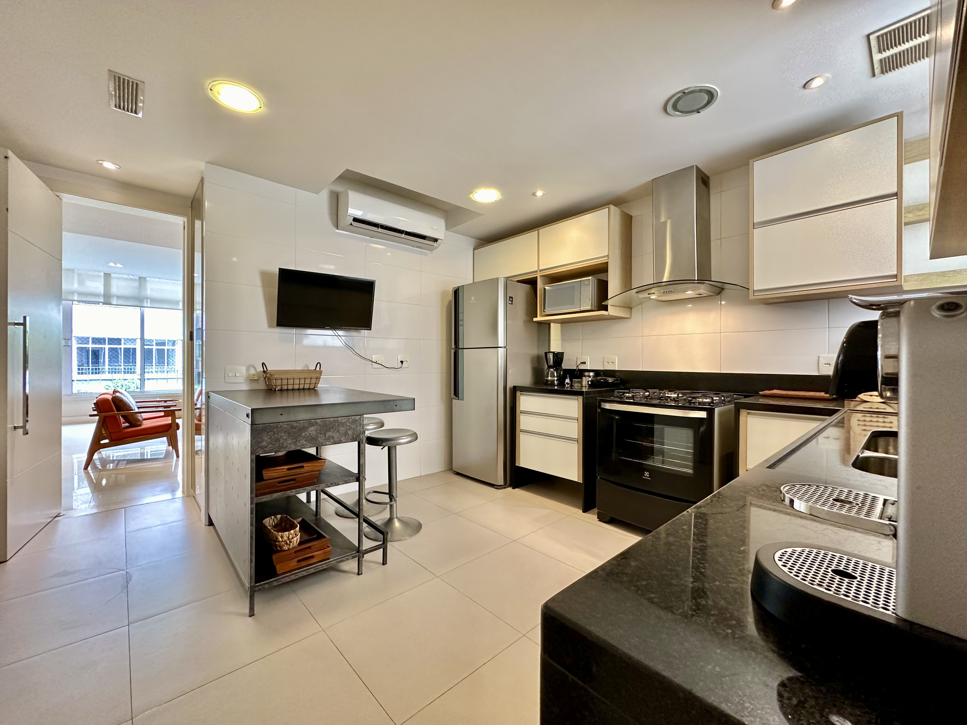 Este apartamento, meticulosamente renovado e com uma deslumbrante vista para a copa das árvores.