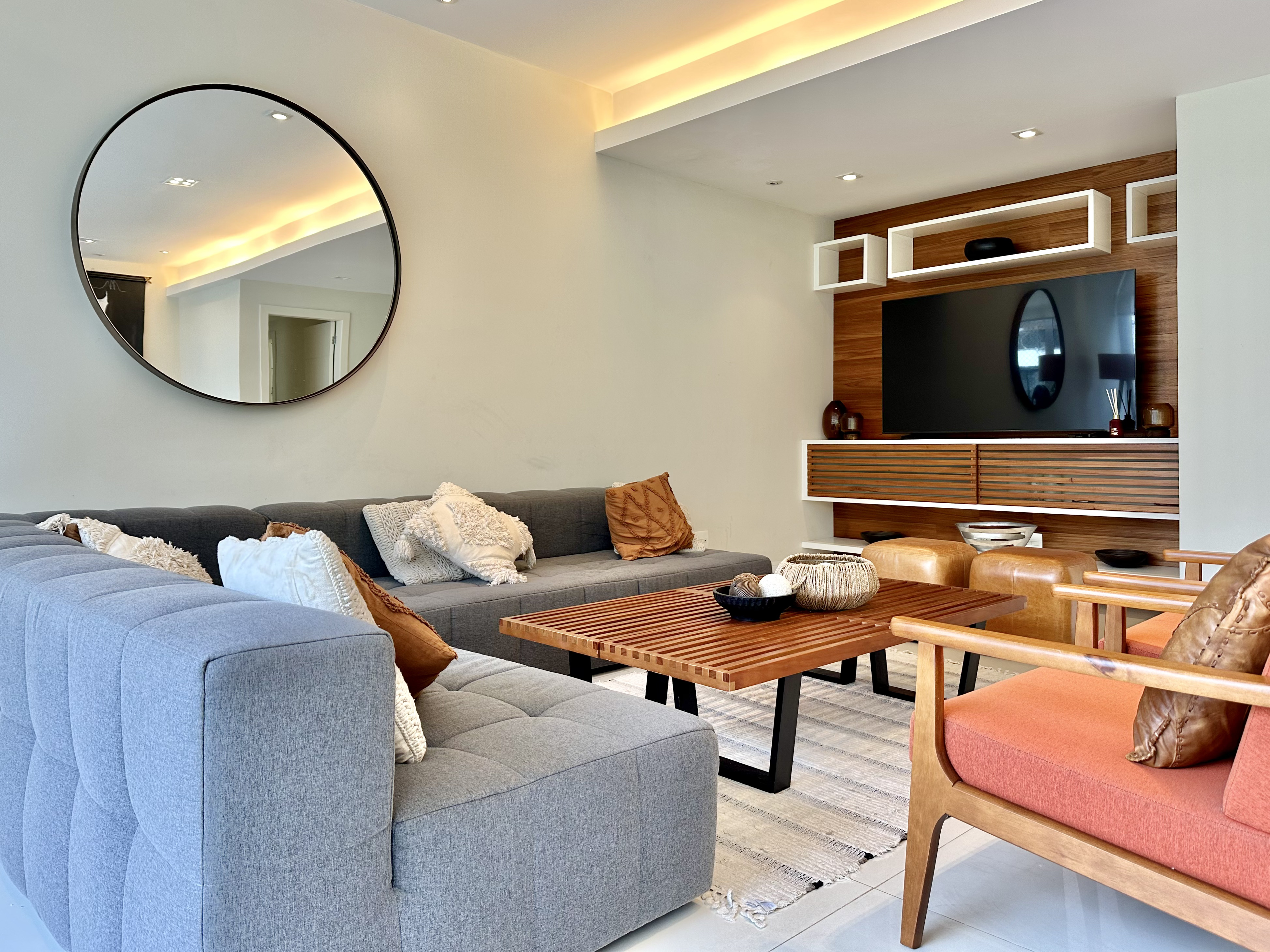 Cada detalhe foi cuidadosamente pensado para criar um ambiente que equilibra o luxo contemporâneo com a serenidade natural.