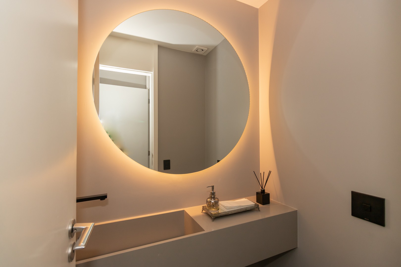 A arquitetura e o conceito deste funcional apartamento são verdadeiramente impressionantes, proporcionando uma experiência única logo ao adentrar o imóvel.