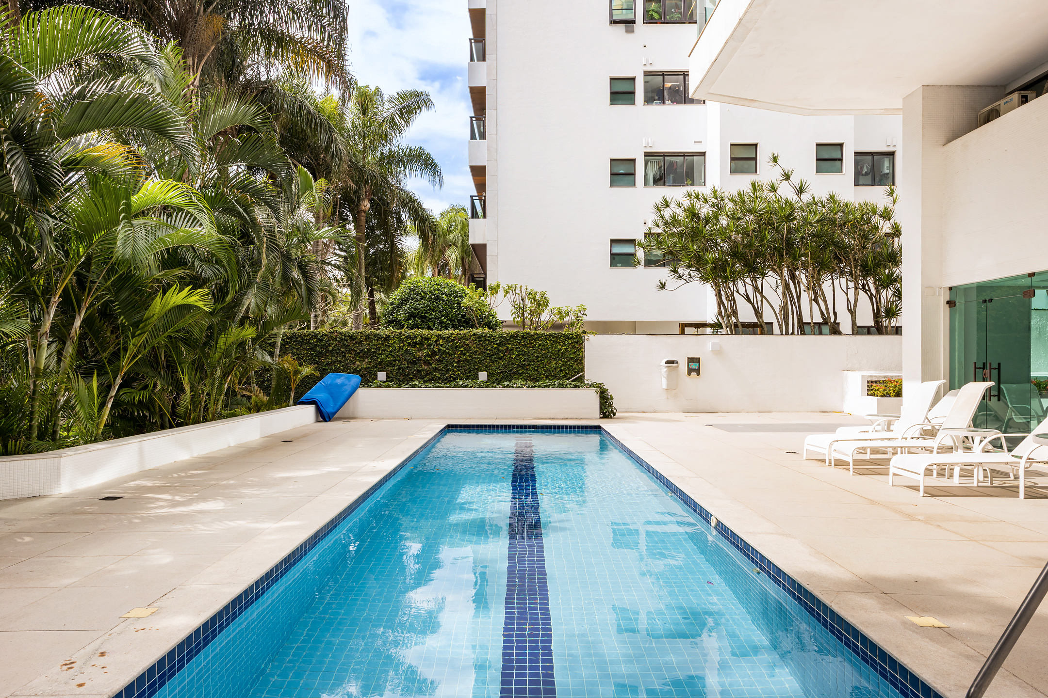 De frente ao mar, esse belíssimo prédio com muitos jardins e portaria imponente, é um convite ao bem viver, rodeado de natureza e próximo à todas as conveniências do bairro de São Conrado.