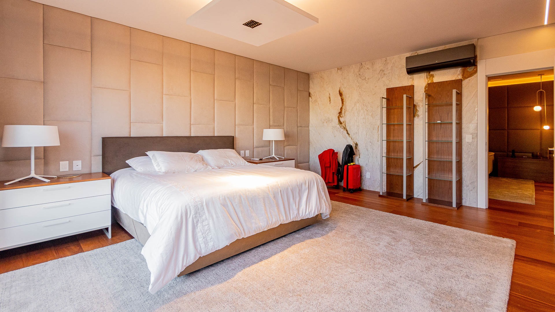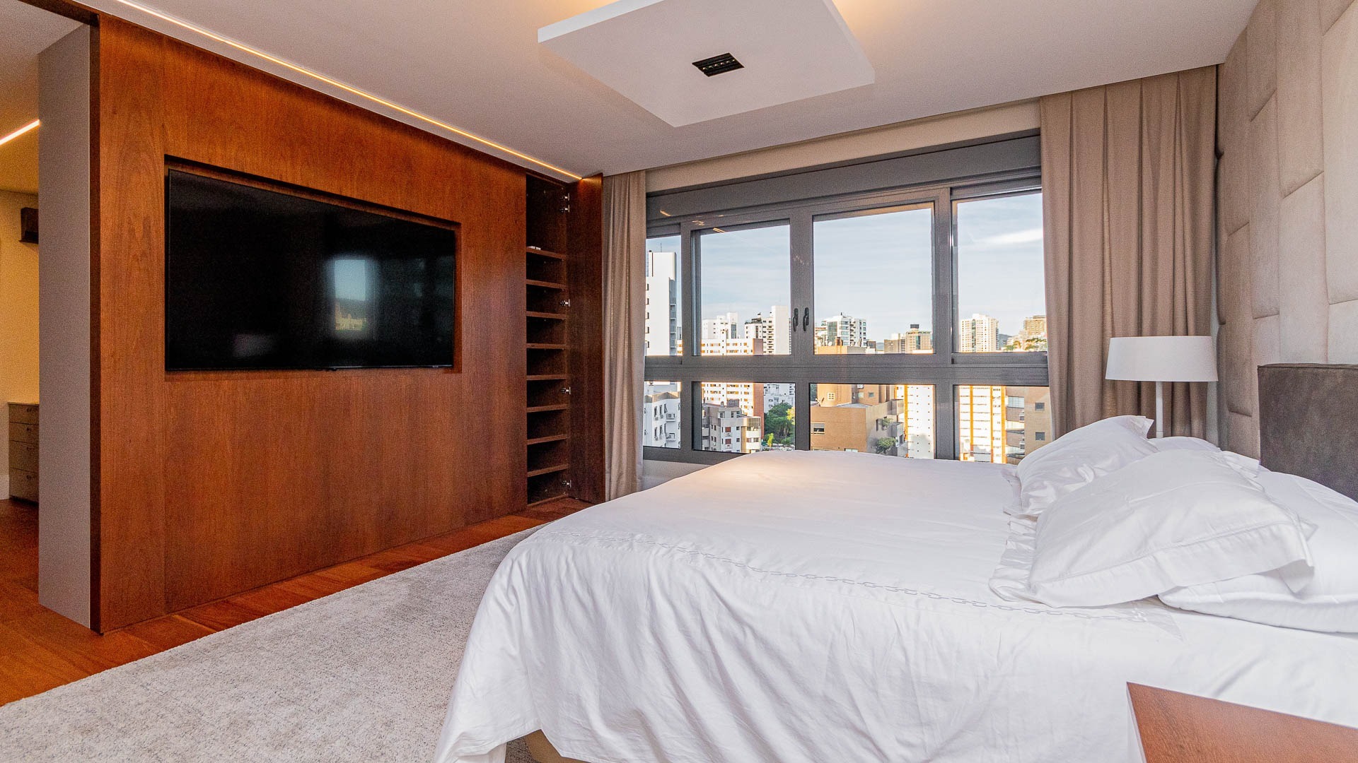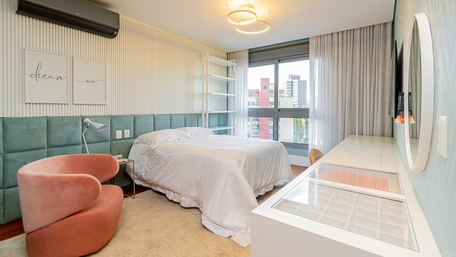 Com design assinado pelas arquitetas Carol Froeder e Cassia Kroeff, destaca-se pela sua decoração exclusiva e móveis assinados, além de um enxoval completo de cama e banho, refletindo um alto padrão de luxo e conforto.