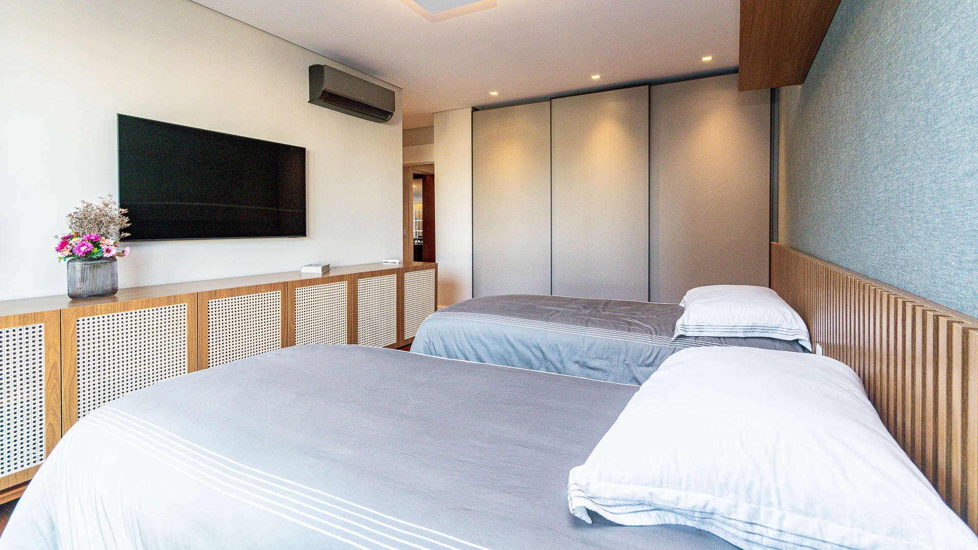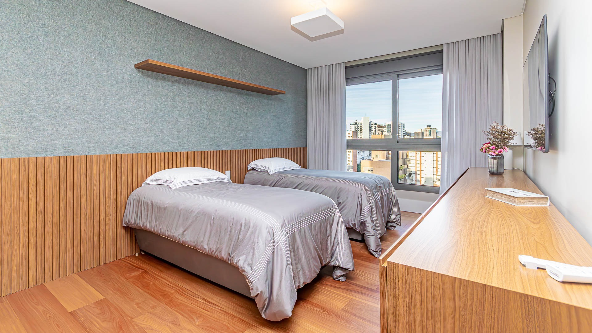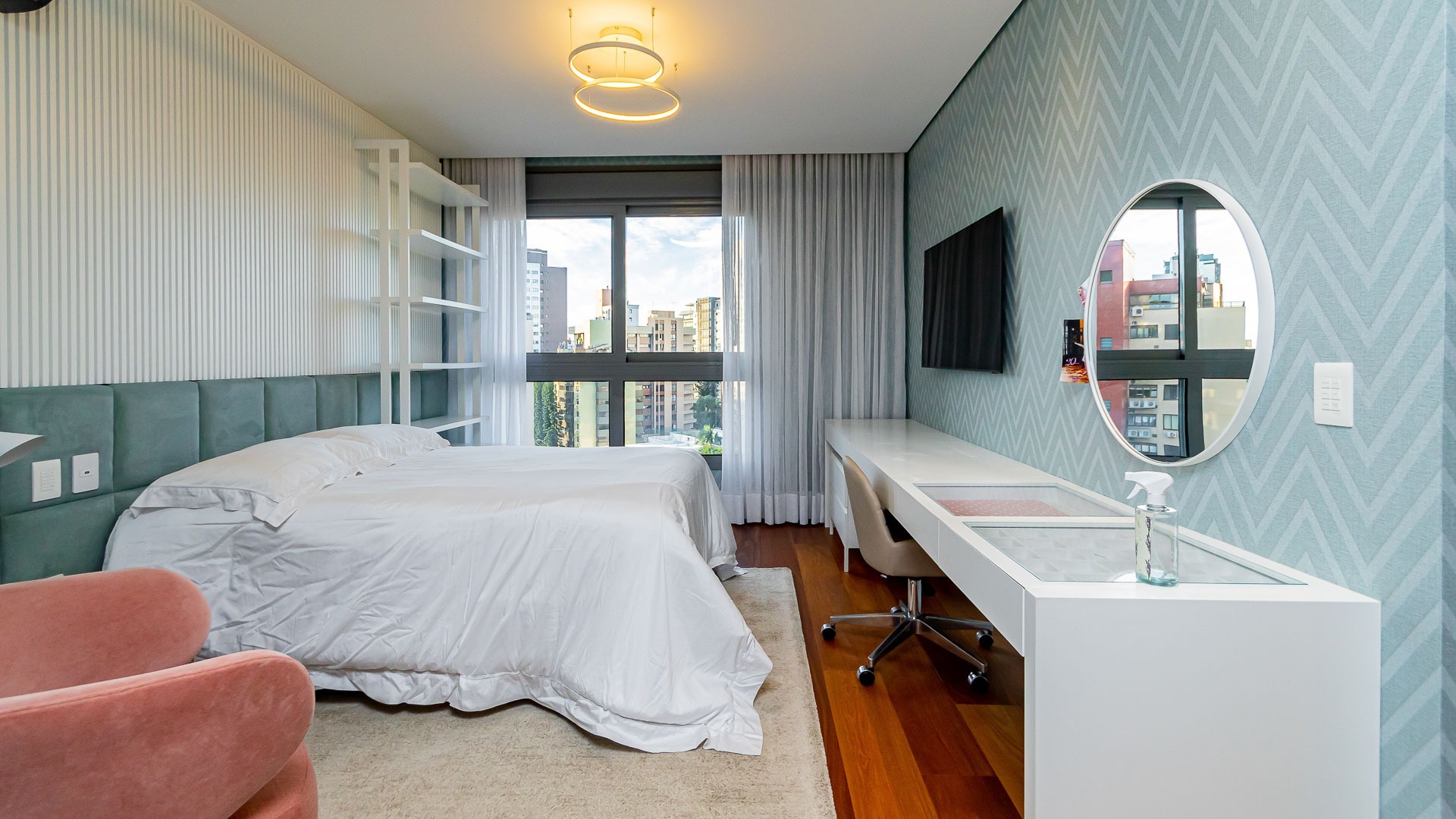 Com design assinado pelas arquitetas Carol Froeder e Cassia Kroeff, destaca-se pela sua decoração exclusiva e móveis assinados, além de um enxoval completo de cama e banho, refletindo um alto padrão de luxo e conforto.