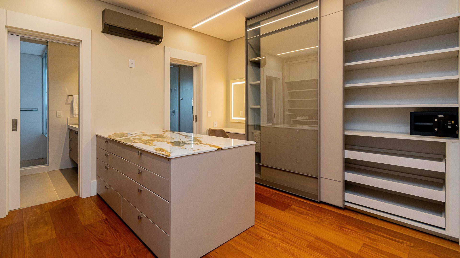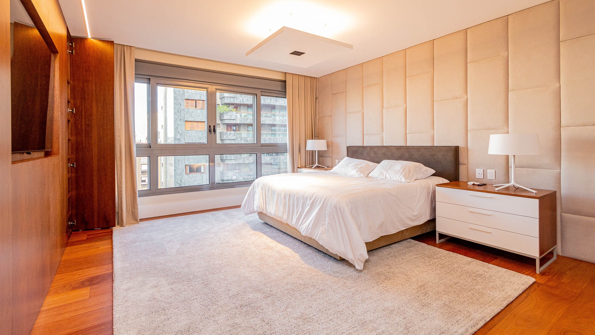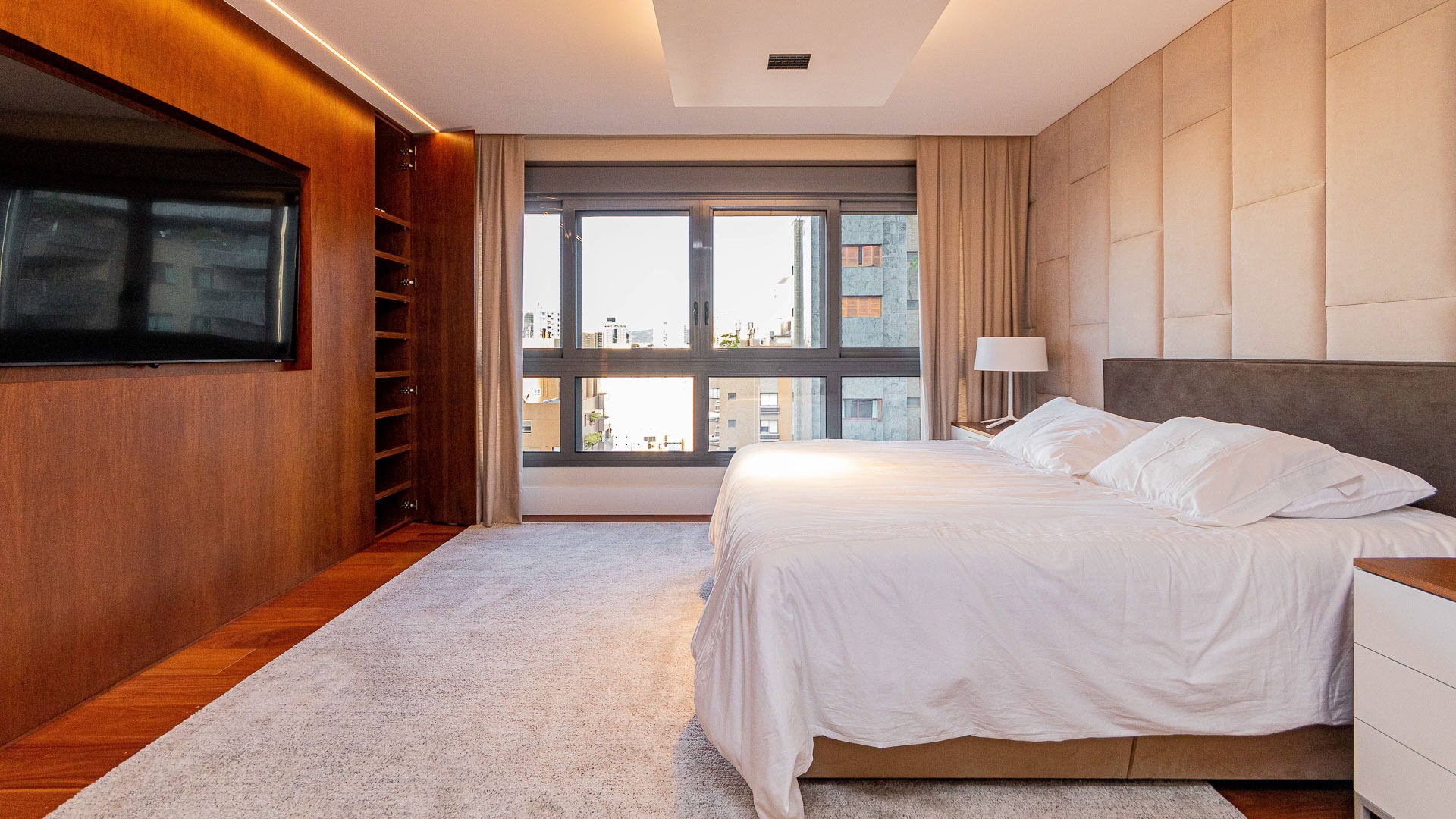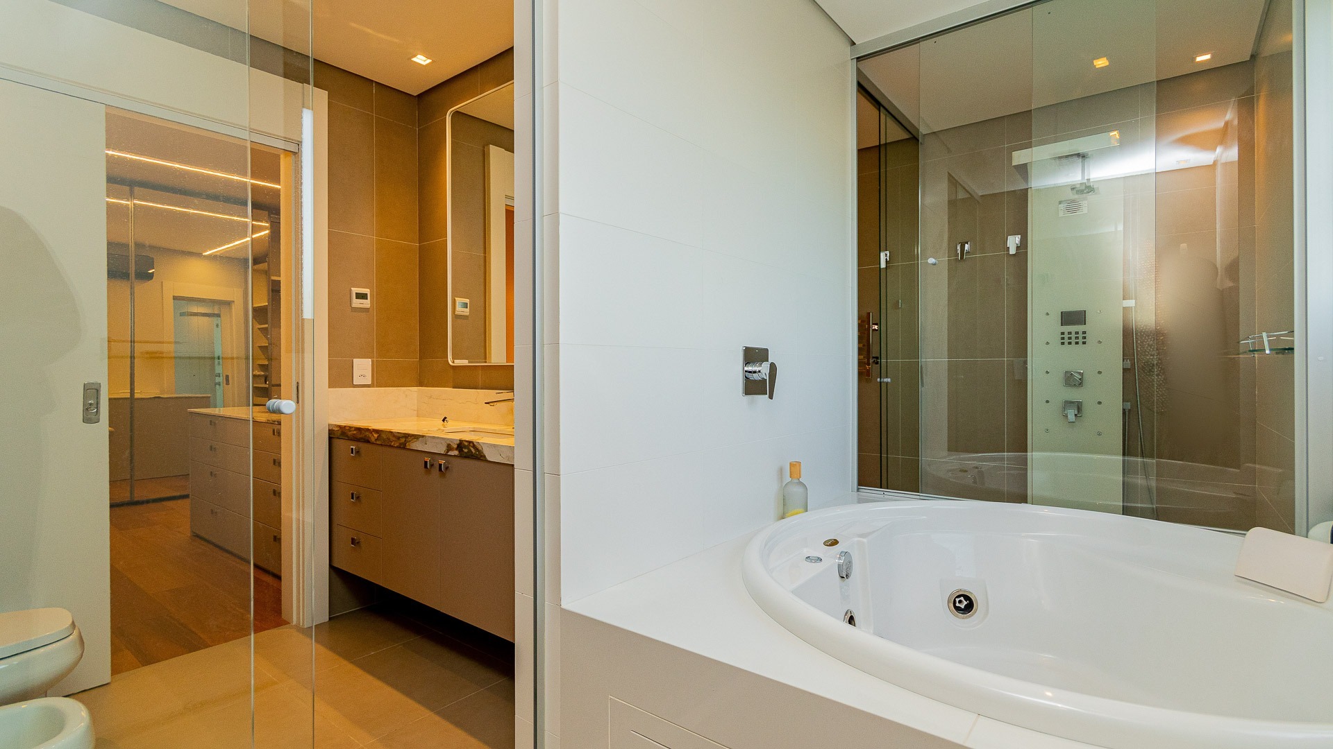 Esta cobertura de 770m², situada em frente à Praça Bela Vista, oferece 4 suítes, incluindo uma suíte máster com closet, sacada e banheiro com hidromassagem.