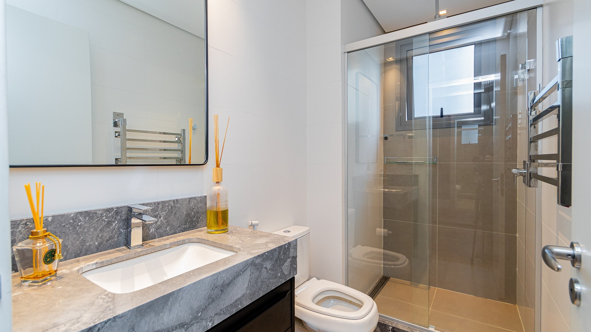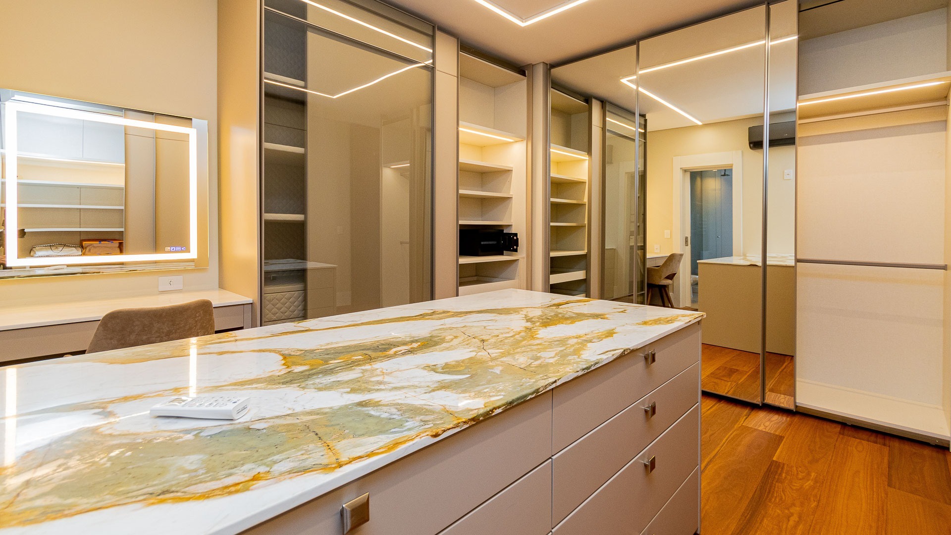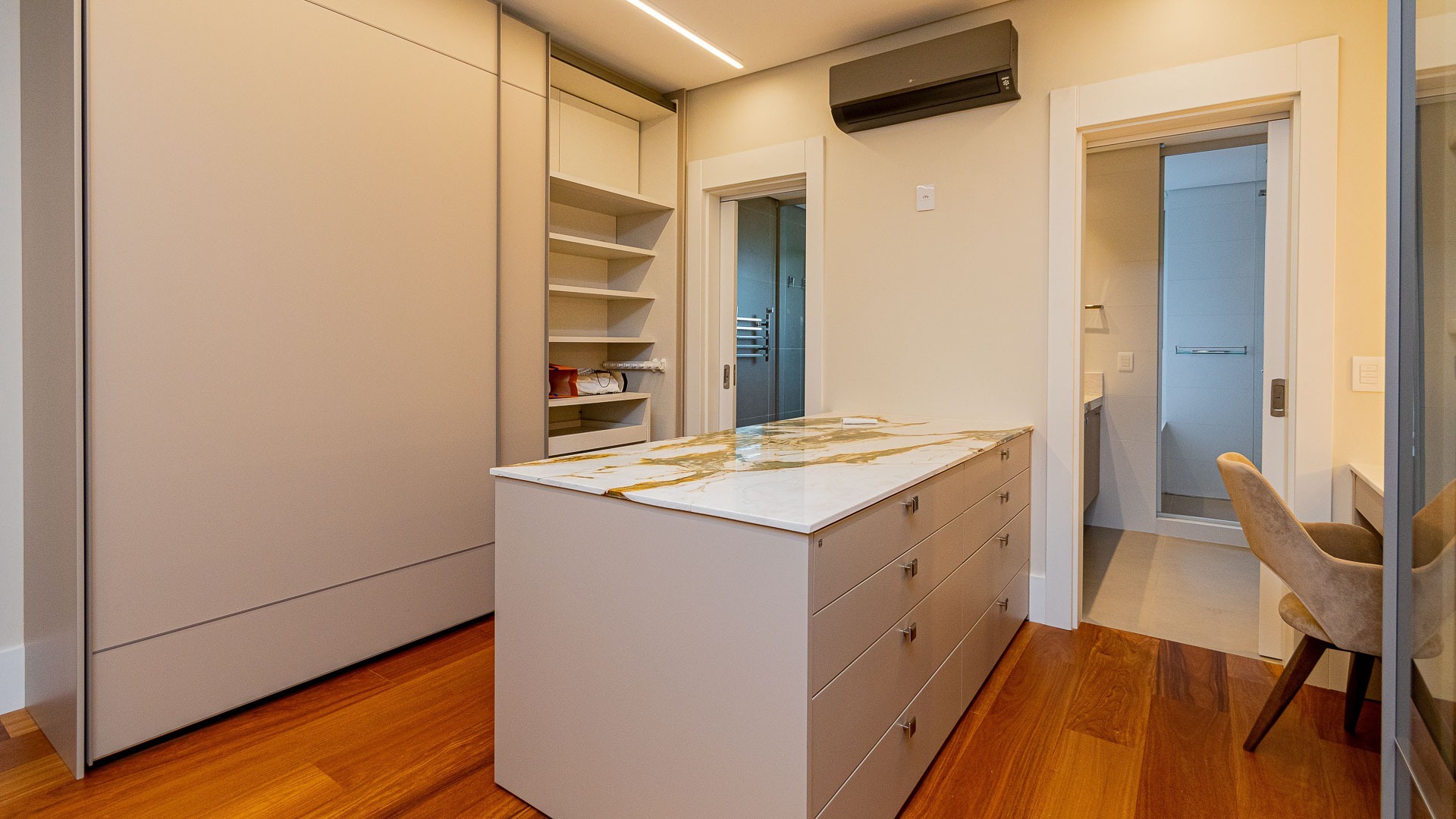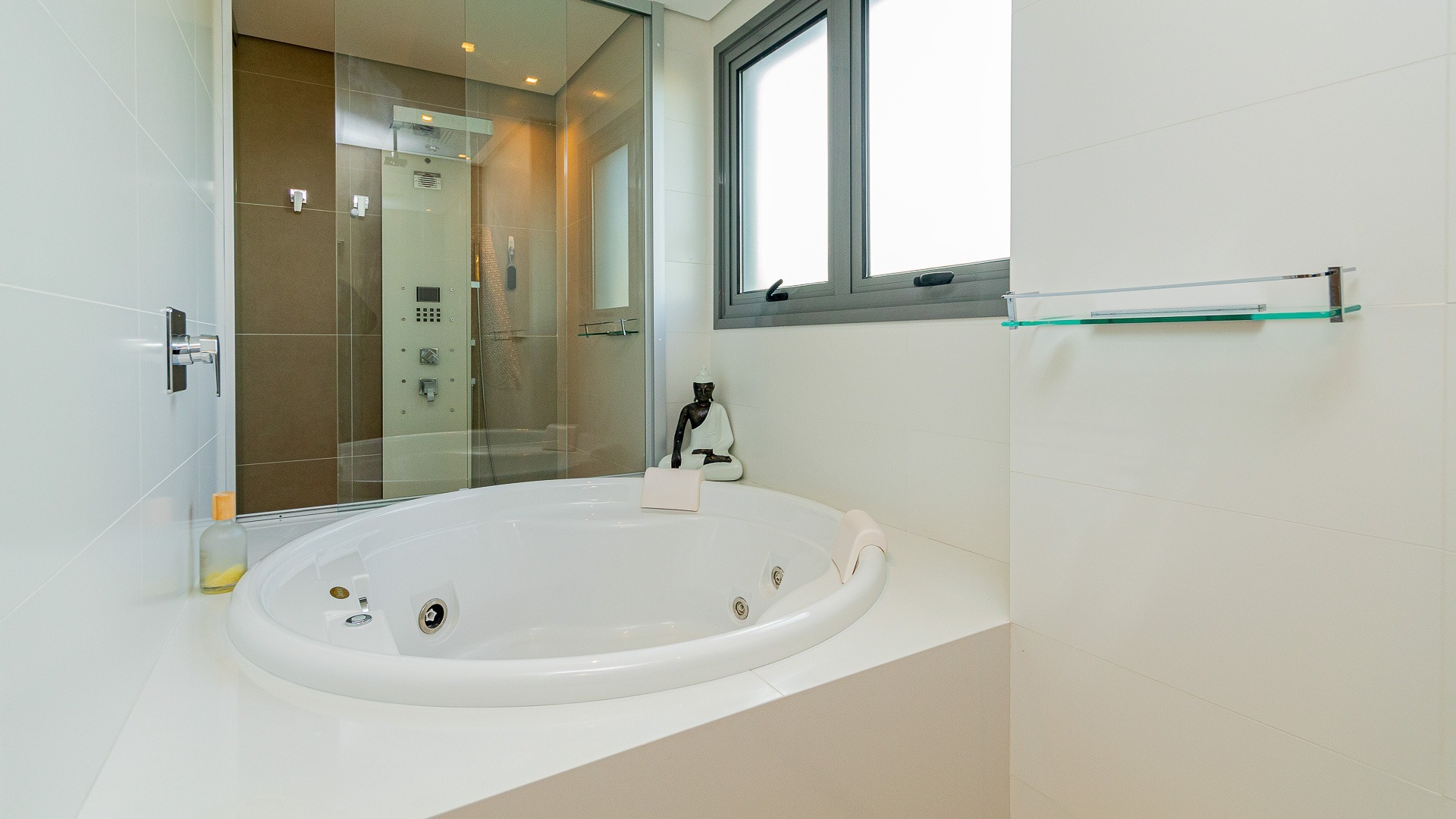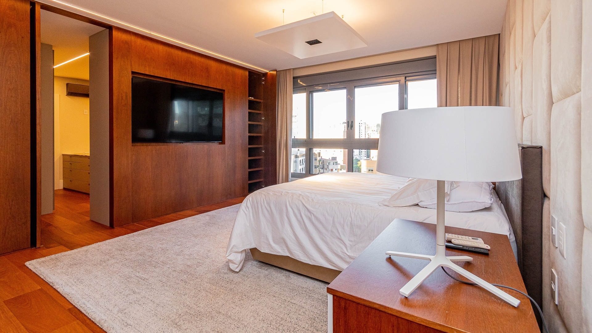 Esta cobertura de 770m², situada em frente à Praça Bela Vista, oferece 4 suítes, incluindo uma suíte máster com closet, sacada e banheiro com hidromassagem.