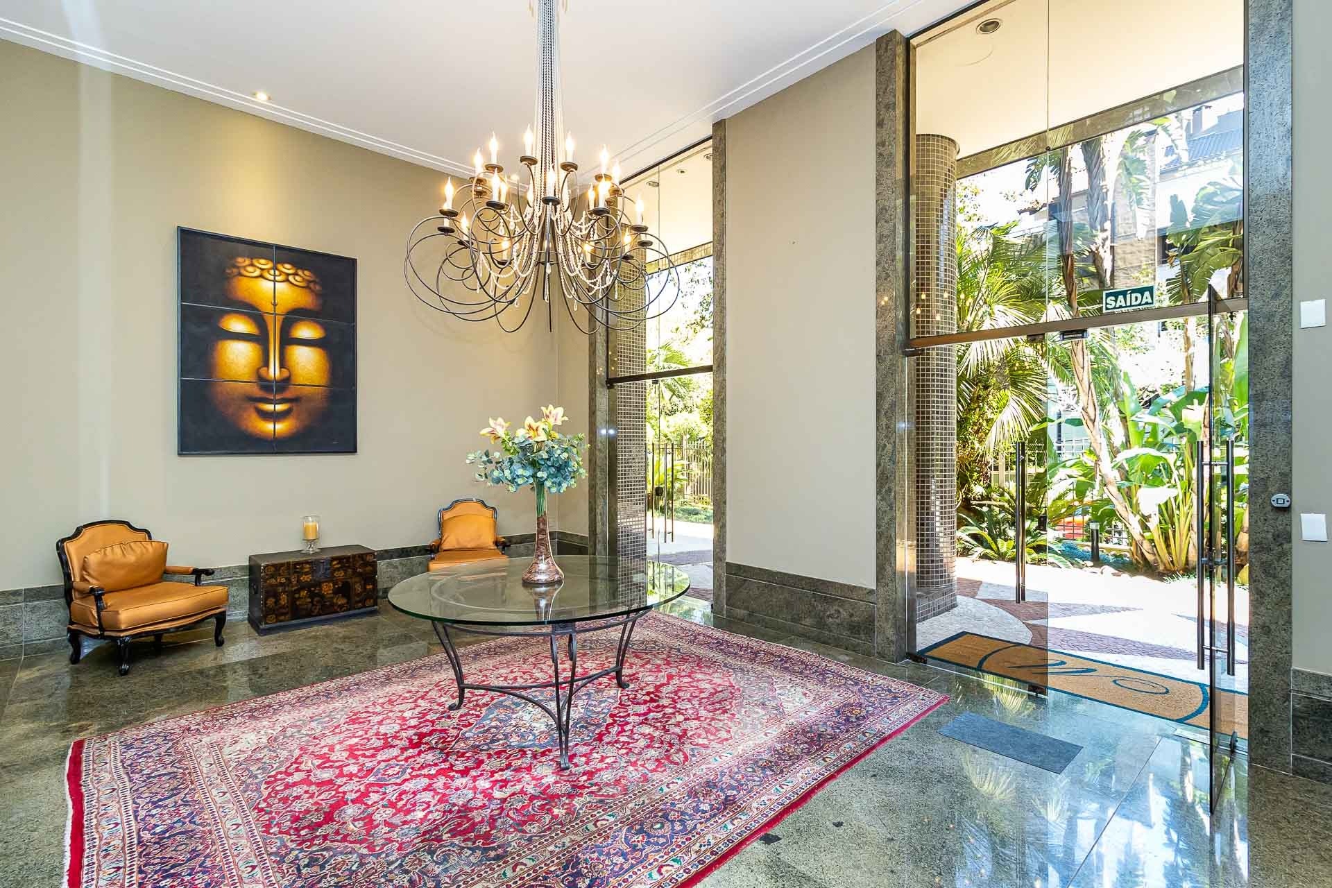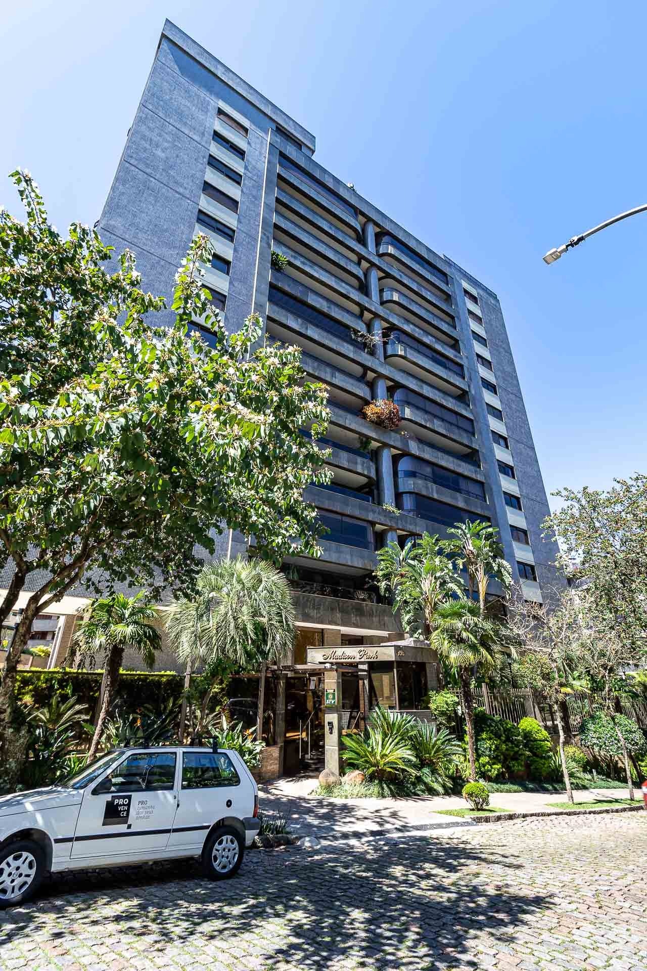 Apartamento mobiliado de 237 m², 3 dormitórios, 3 suítes, 1 suíte máster com closet e hidro, living 3 ambientes com sacada, gabinete, lareira, lavabo, cozinha com churrasqueira, dependência, área de serviço com entrada independente, depósito e 3 vagas de garagens.