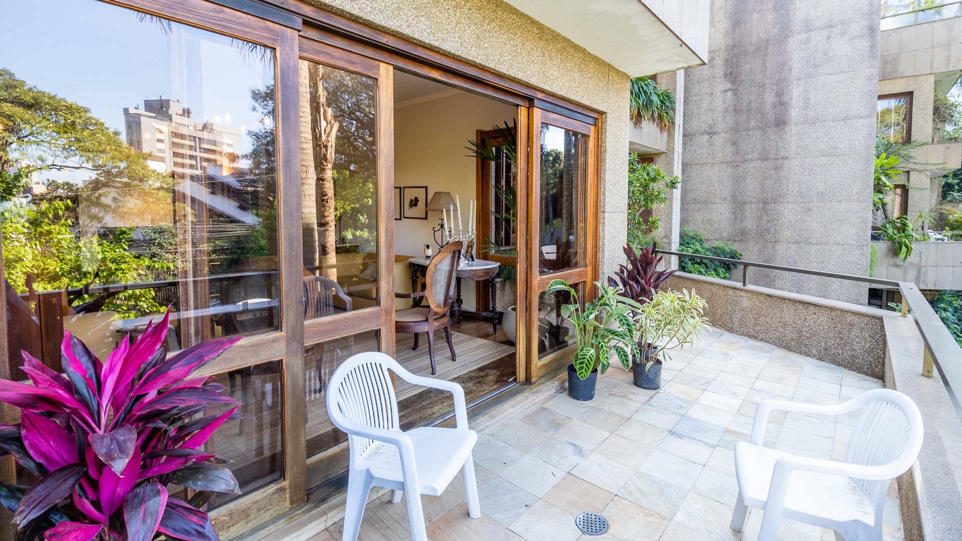 Apartamento para alugar mobiliado com 4 dormitórios, sendo 2 suítes, 179m de área privativa, living com ar condicionado, sacada fechada e ampla com churrasqueira, escrivaninha, cômodas, ventiladores de teto e cortinas, banheiro social com armários, cozinha completa com armários, fogão, geladeira, micro-ondas e coifa e área de serviço.