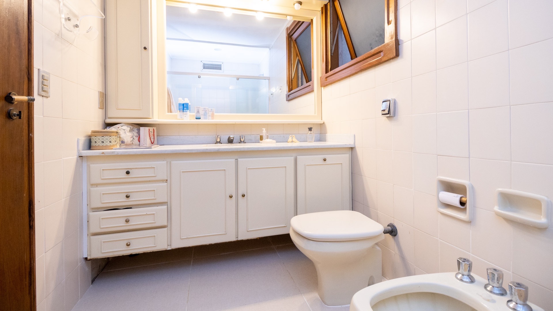 Possui área privativa de 113,96m², sendo que o imóvel conta ainda com banheiro social, amplo living 2 ambientes com churrasqueira, cozinha, área de serviço e dependência de empregada completa.