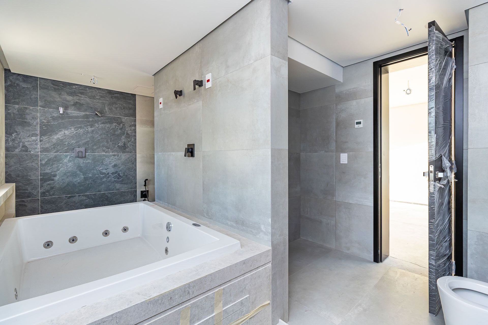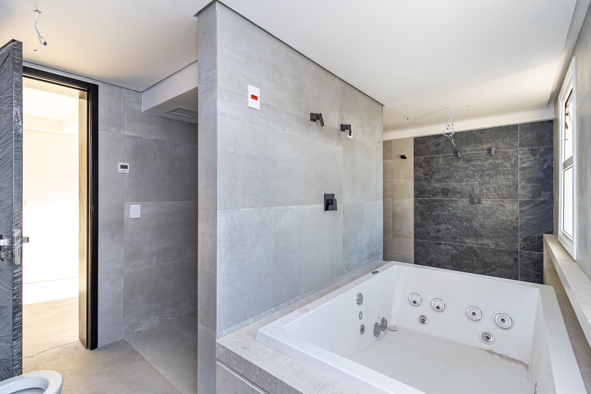Apartamento de 275 m² de área privativa, vista definida, 3 dormitórios sendo 3 suítes com piso aquecido, a suíte master com closet, banheiro ele/ela e banheira, amplo living para 5 ambientes, copa cozinha, lareira, churrasqueira, sacada aberta, dependência de empregada e 4 vagas de garagem