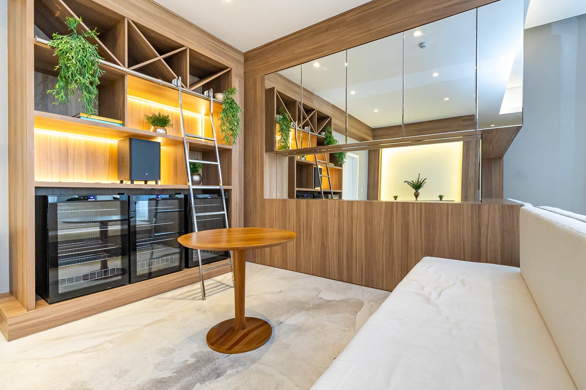 Living 4 ambientes com lareira, sala de jantar, espaço gourmet com churrasqueira e chopeira, lavabo, gabinete, 3 sacadas, jardim de inverno, adega climatizada.