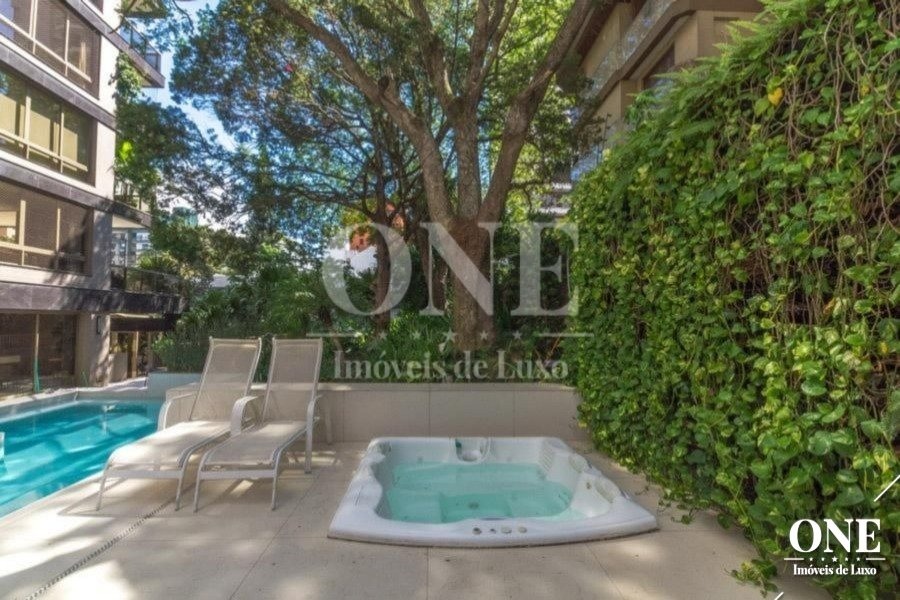 Apartamento de 744 m² privativos, dividido em peças amplas como um living com 4 ambientes, sendo uma sala de jantar separada, lareira, churrasqueira, e todo voltado para uma belíssima varanda com uma piscina com raia de 25m e um aconchego e sensação de paz com o visual de uma linda vegetação em uma área de preservação e o sol da manhã e 5 garagens escrituradas e um depósito.
