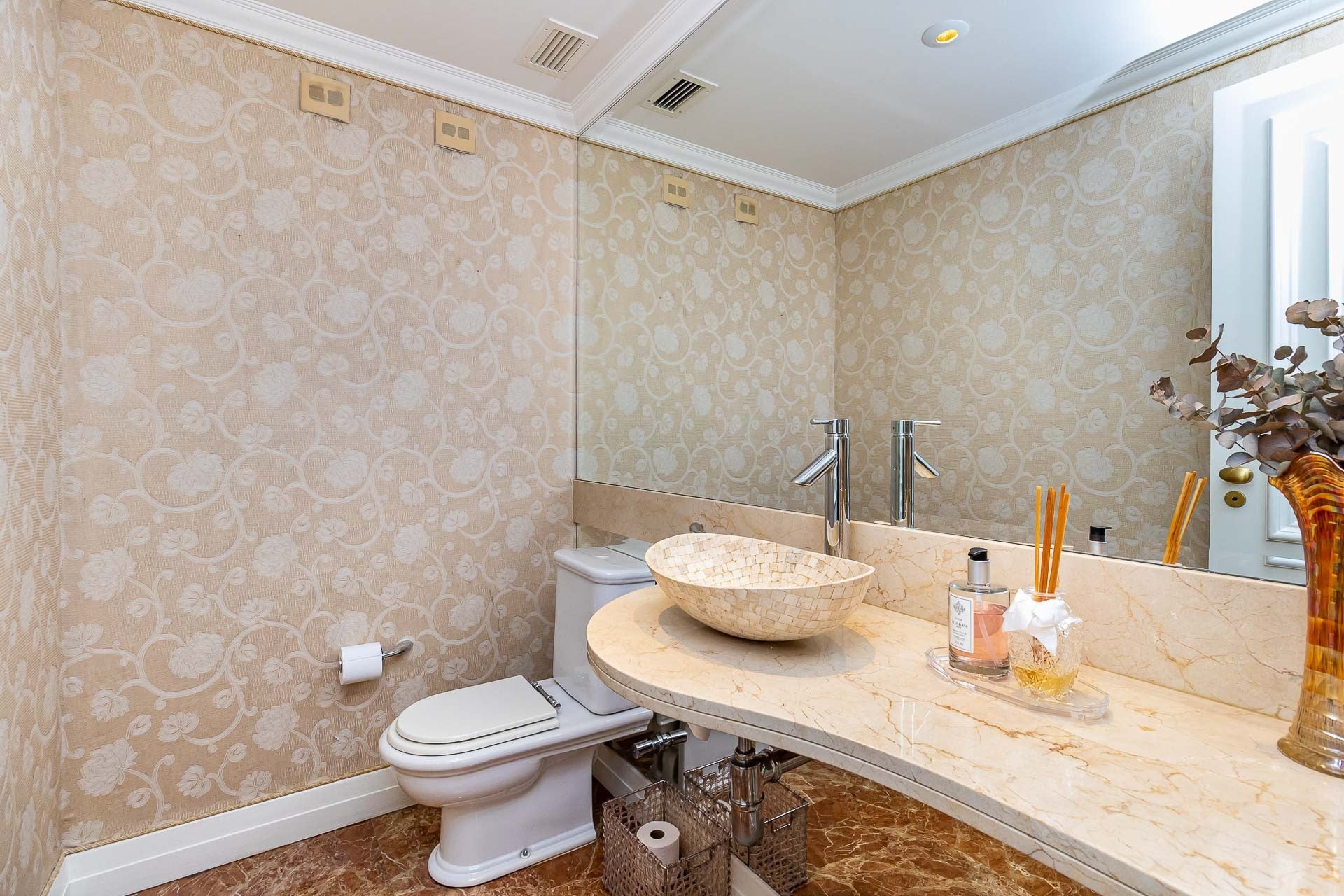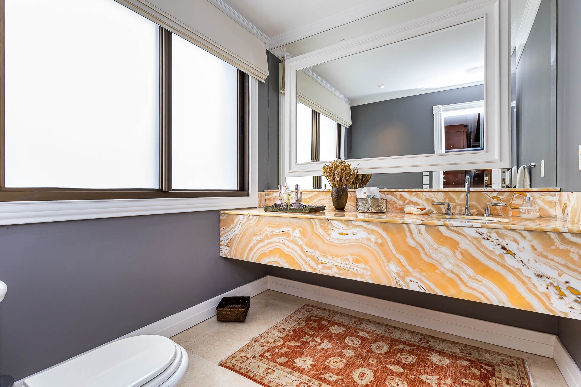 Além disso, lavabo, living 3 ambientes: sala de estar com lareira, sala de jantar e espaço gourmet. Cozinha com copa e lavanderia fechadas com 2 acessos pra área íntima e social. Banheiro auxiliar.