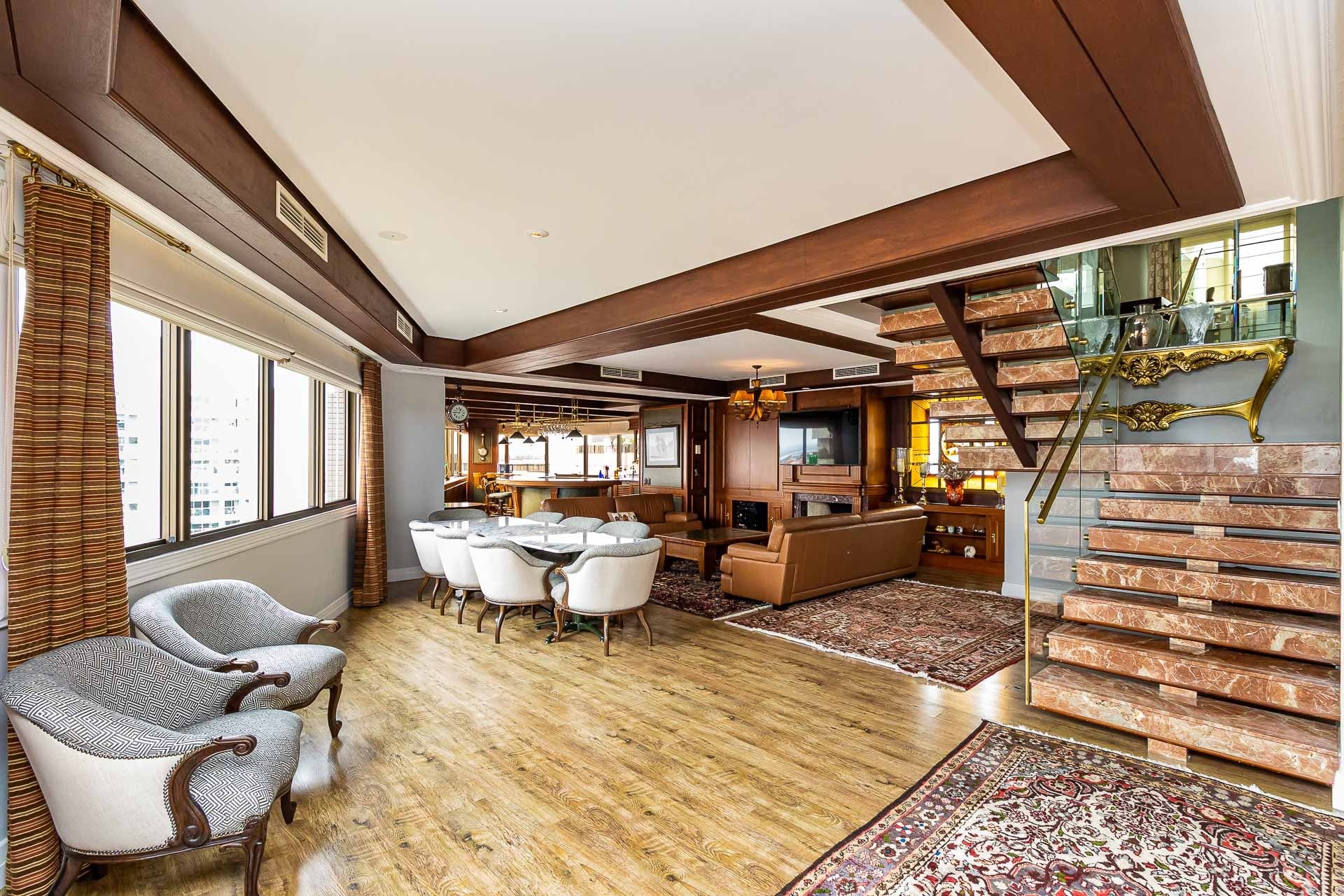 Cobertura com 1559 m² de área privativa, localizada num do endereços mais cobiçados do Bairro Moinhos de Vento. Imóvel exclusivíssimo, composto por 4 suítes, todas master (com closet e hidromassagem) e 8 vagas de garagem. No primeiro pavimento enconta-se um amplo living com ambientes distintos, entre eles, sala de estar com 3 ambientes, estar íntimo com lareira, sala de jantar para 12 pessoas, es...