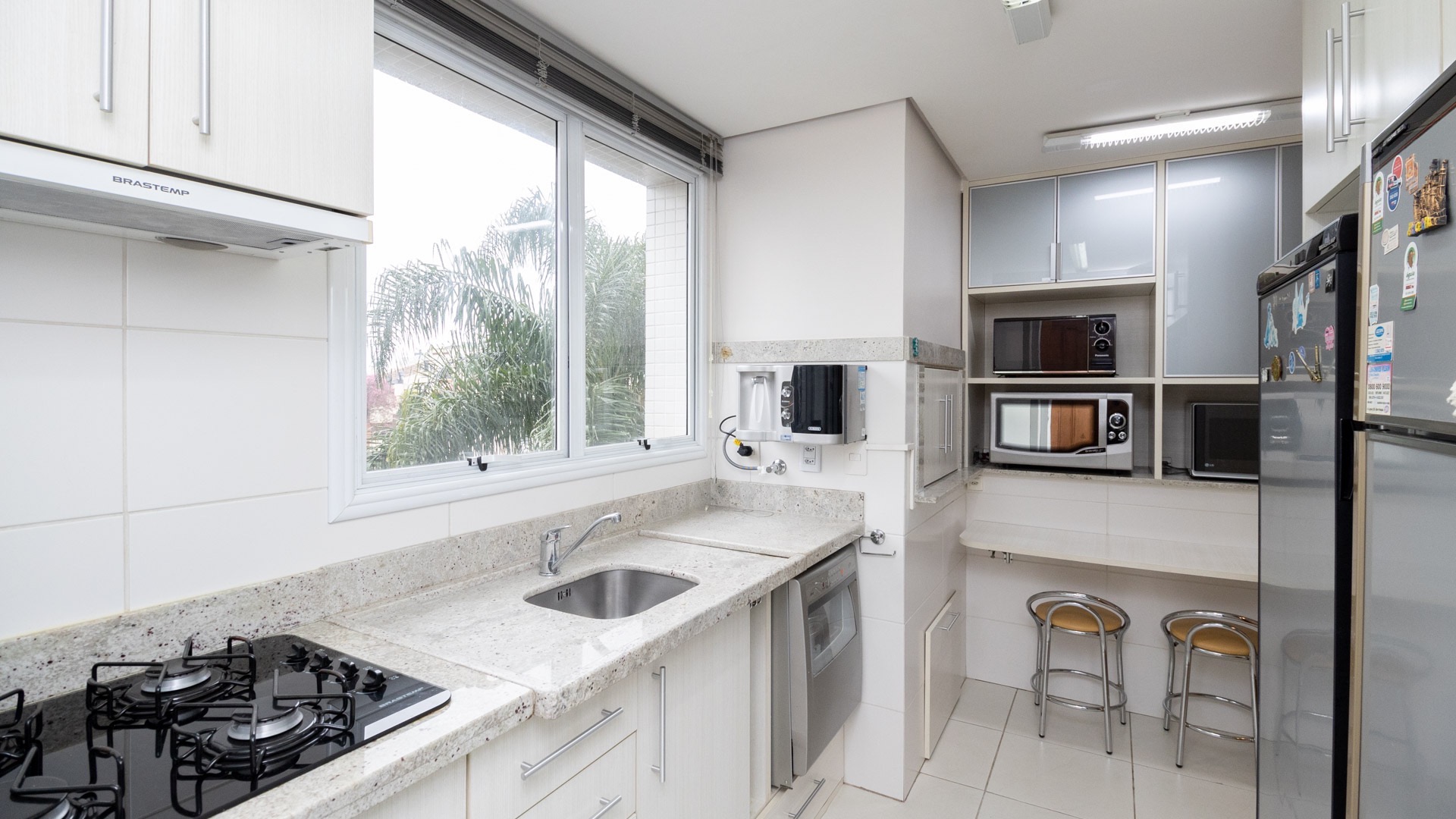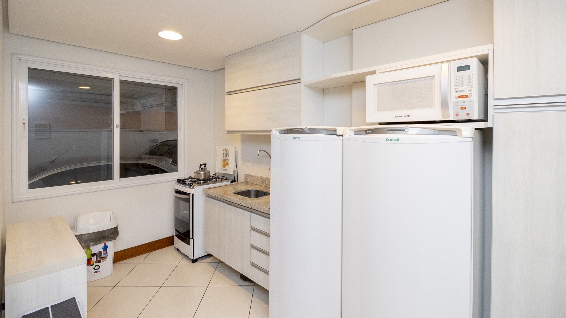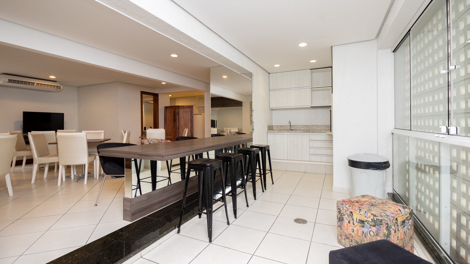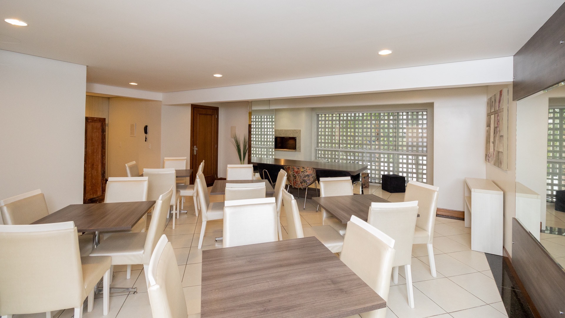 Possui área privativa de 113,96m², sendo que o imóvel conta ainda com banheiro social, amplo living 2 ambientes com churrasqueira, cozinha, área de serviço e dependência de empregada completa.