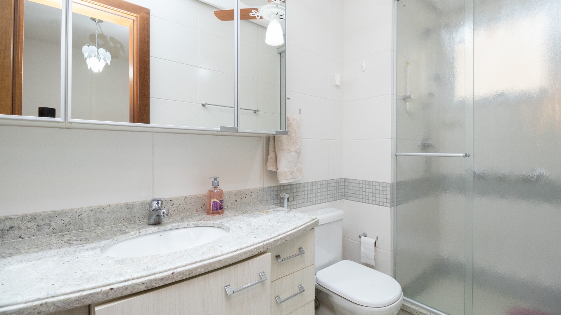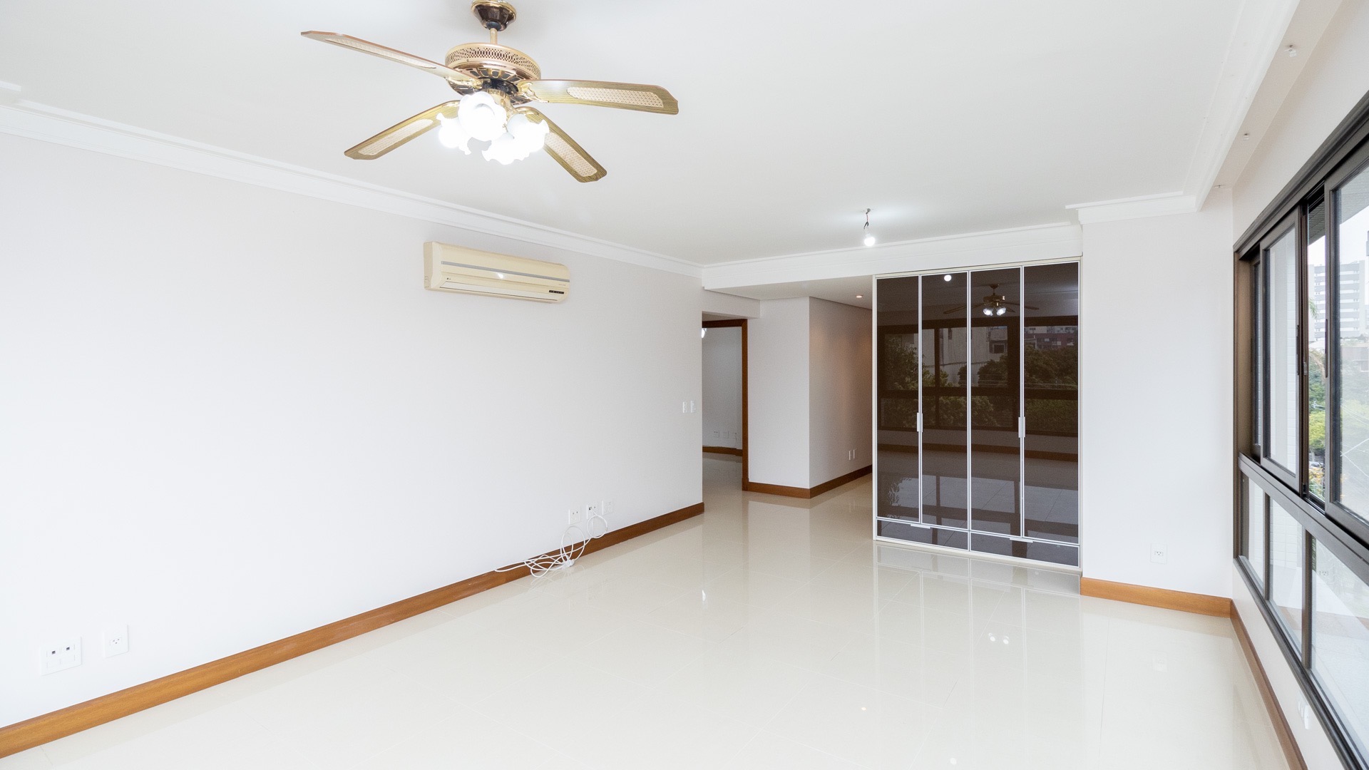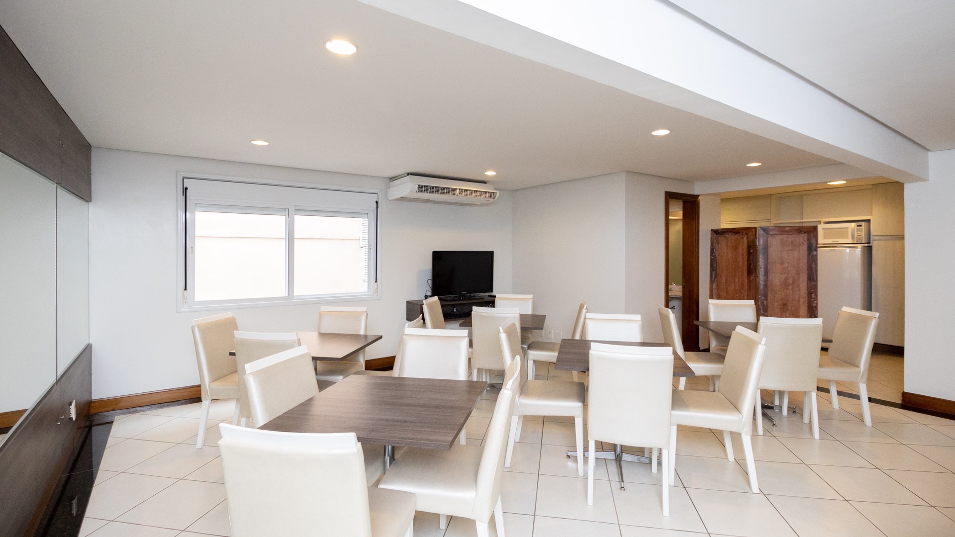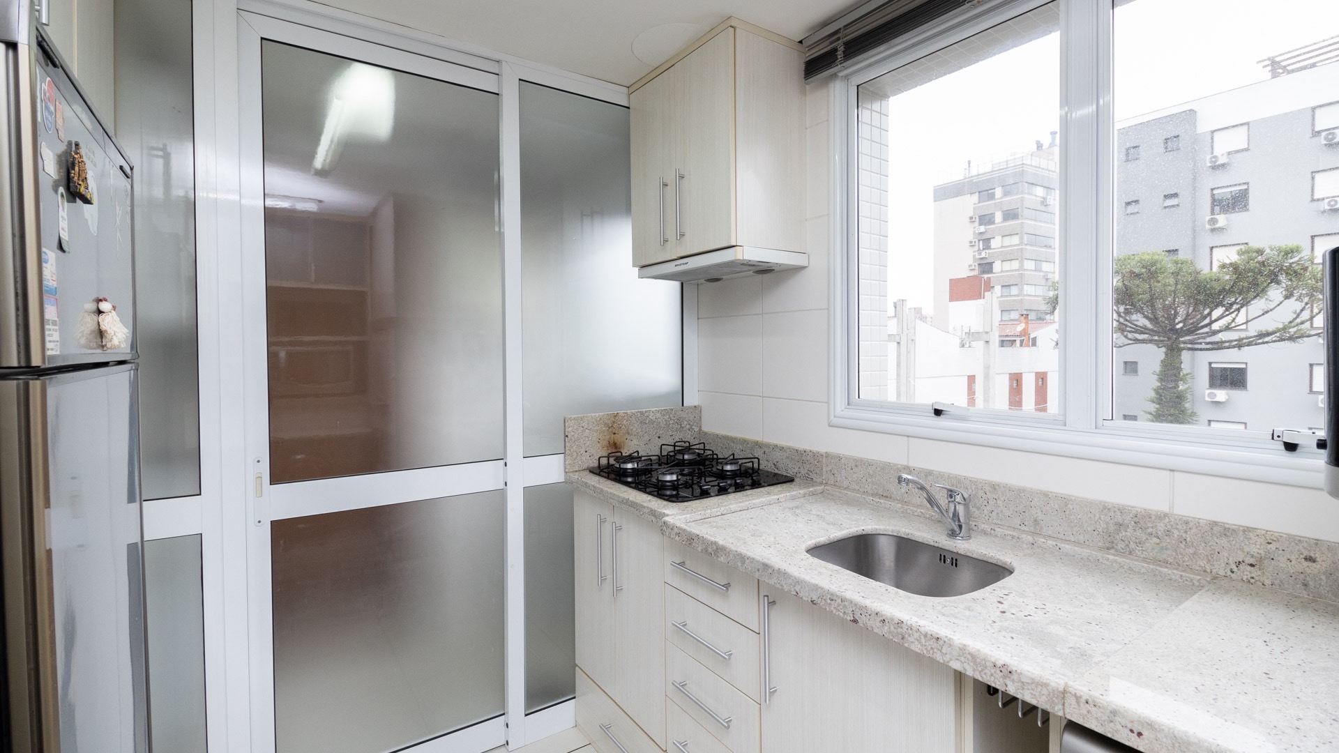 Possui área privativa de 113,96m², sendo que o imóvel conta ainda com banheiro social, amplo living 2 ambientes com churrasqueira, cozinha, área de serviço e dependência de empregada completa.