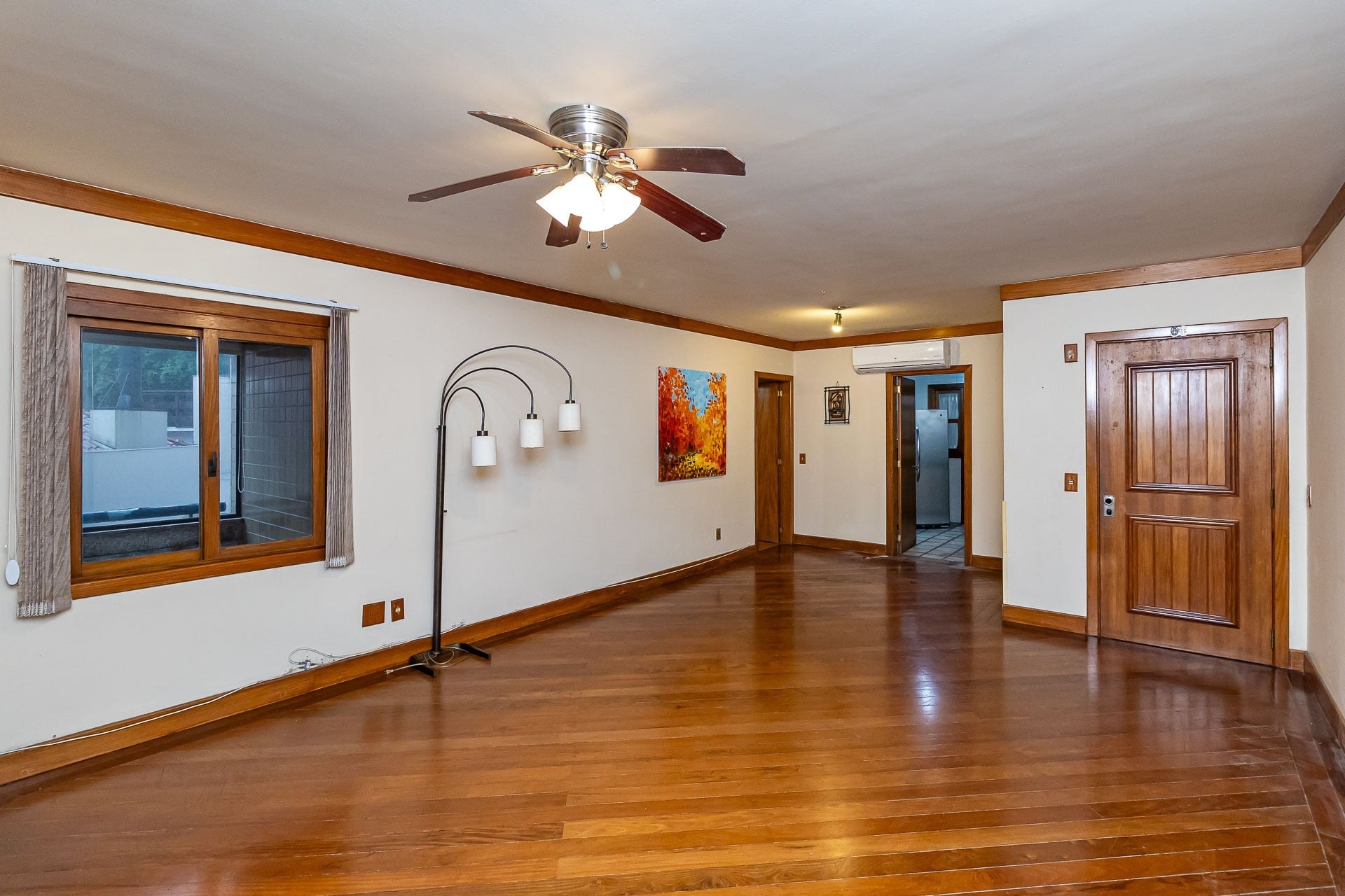 O imóvel possui pé-direito duplo na sala de estar, living de 57 m² para 3 ambientes, varanda de 37 m², hall social, lavabo, churrasqueira, lareira, espaço gourmet completo integrado ao living, estar íntimo, 4 suítes, a suíte master de 48 m² com closet ele/ela e...