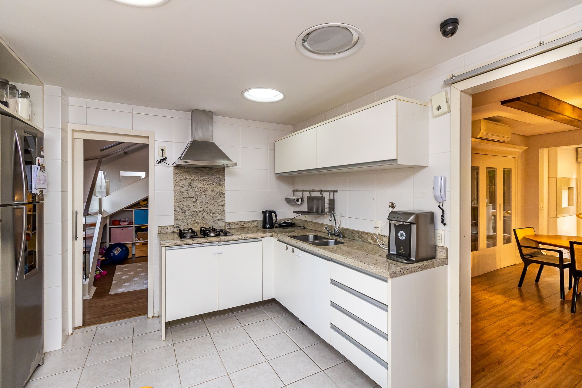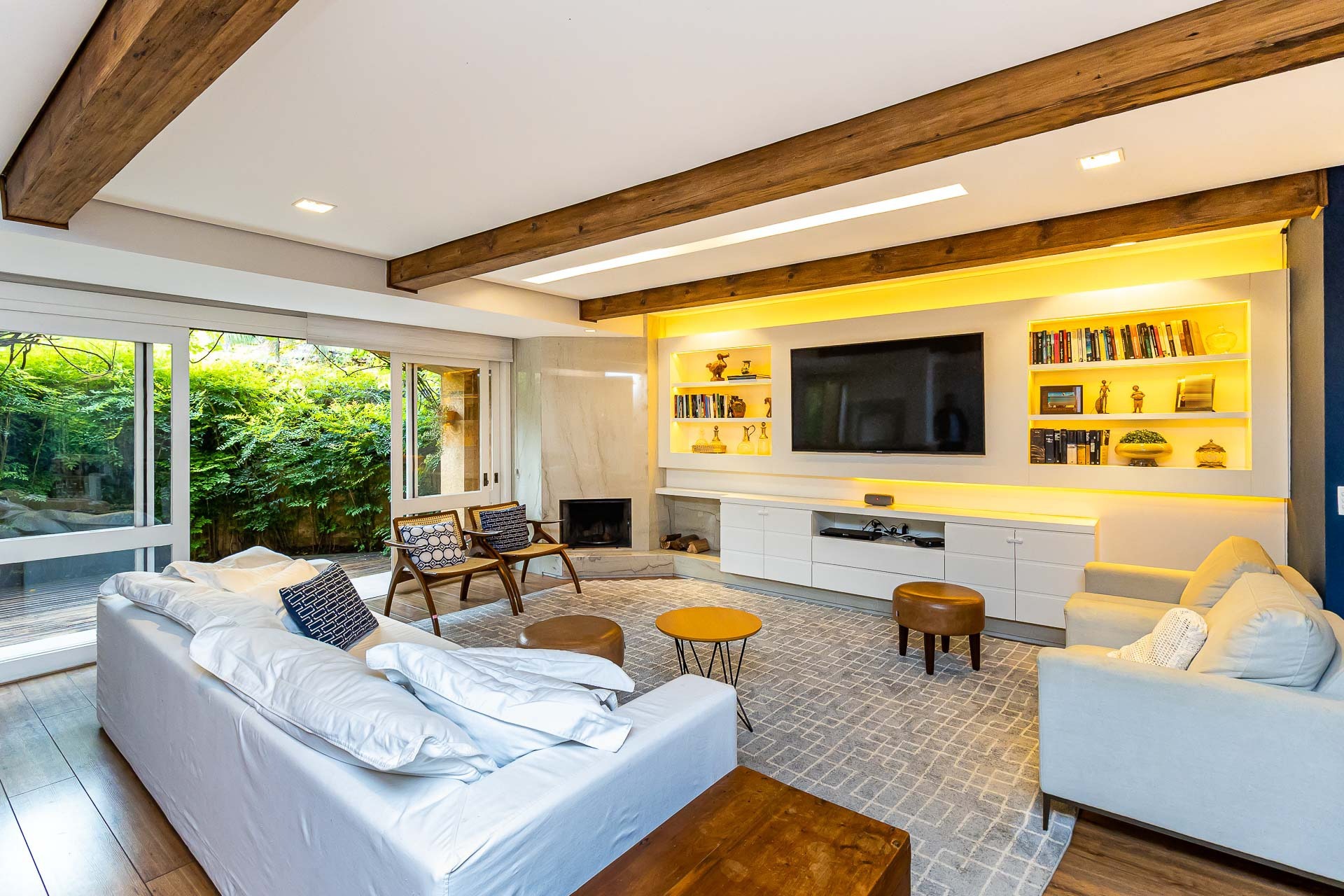 No pavimento térreo temos cozinha americana com churrasqueira, lavabo, living 3 ambientes, sendo 1 sala de estar com lareira e grandepátio com sol leste. No segundo pavimento 3 amplas suítes, uma master com closet e ampla sacada. No Terceiro pavime...