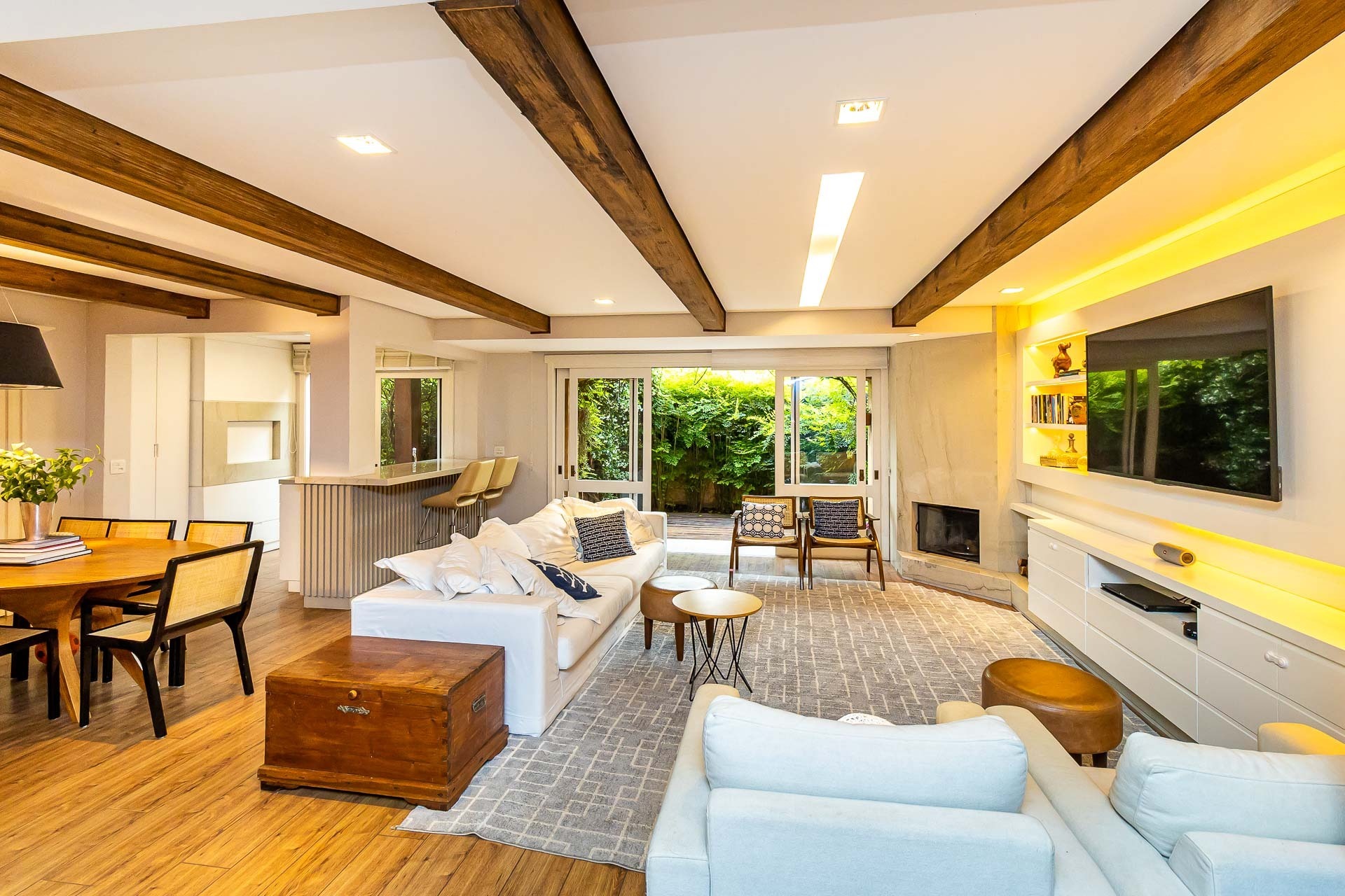 Esta residência, recentemente reformada com materiais de primeira linha, oferece o máximo em conforto e sofisticação. Localizada em um condomínio fechado, a casa dispõe de uma sala de estar aconchegante com lareira, grandes janelas que se abrem para o terraço, sala de jantar, lavabo, sala de TV e uma copa-cozinha equipada com lareira a gás. A área de serviço inclui lavanderia, suíte para caseiro c...