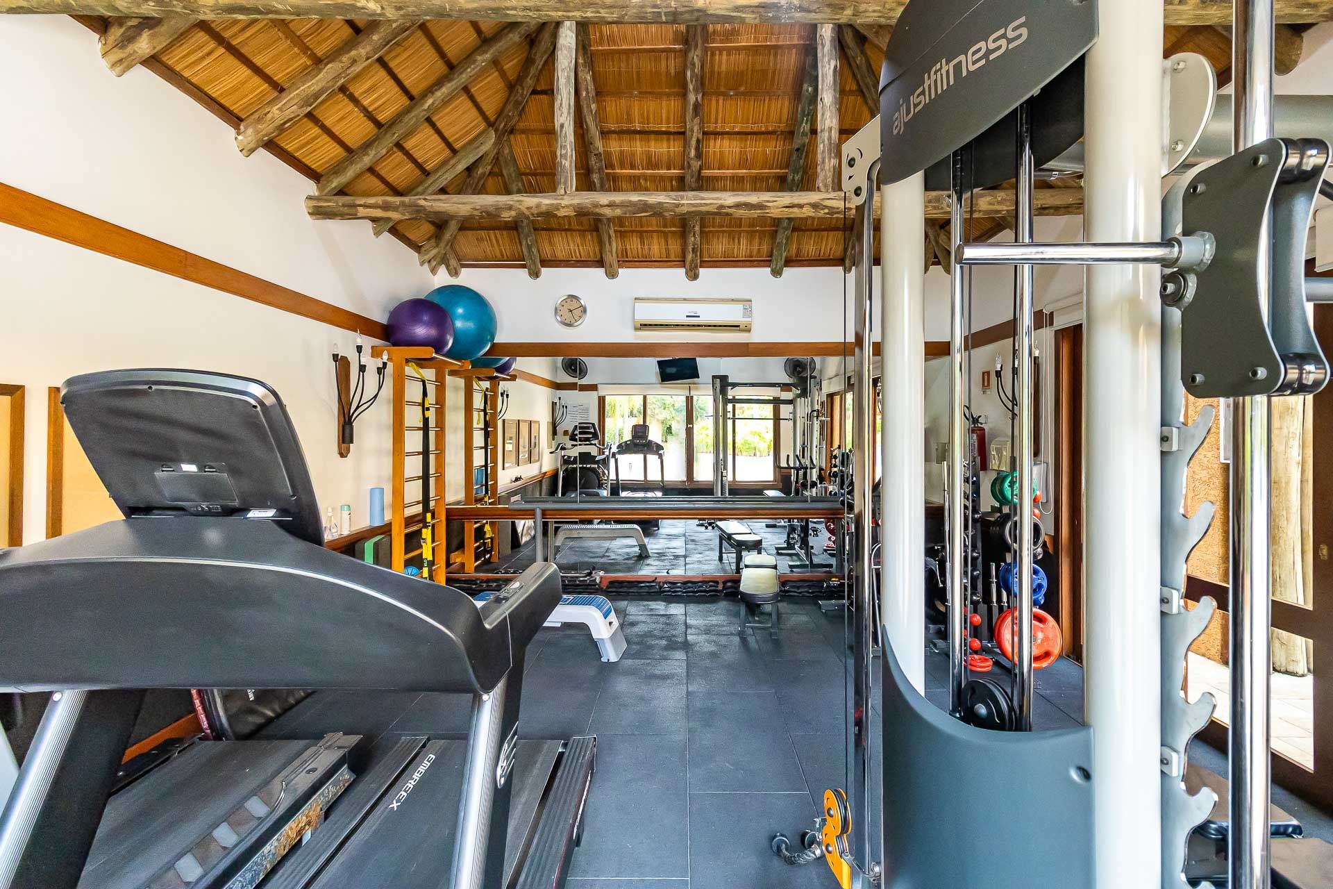 No acesso, hall de entrada, lavabo, sala de jantar, sala de TV e estar, além de uma cozinha com copa. Os ambientes são iluminados por claraboias e possuem pé direito triplo dando amplitude.