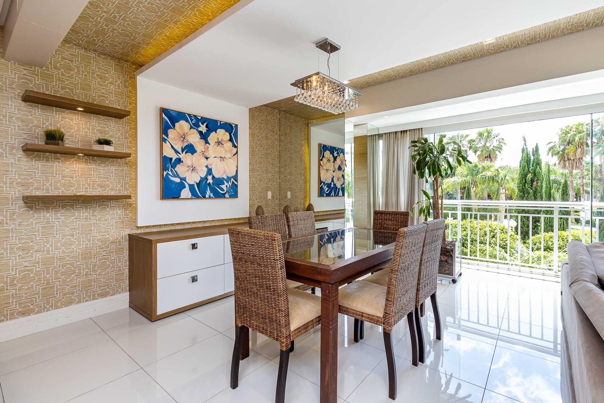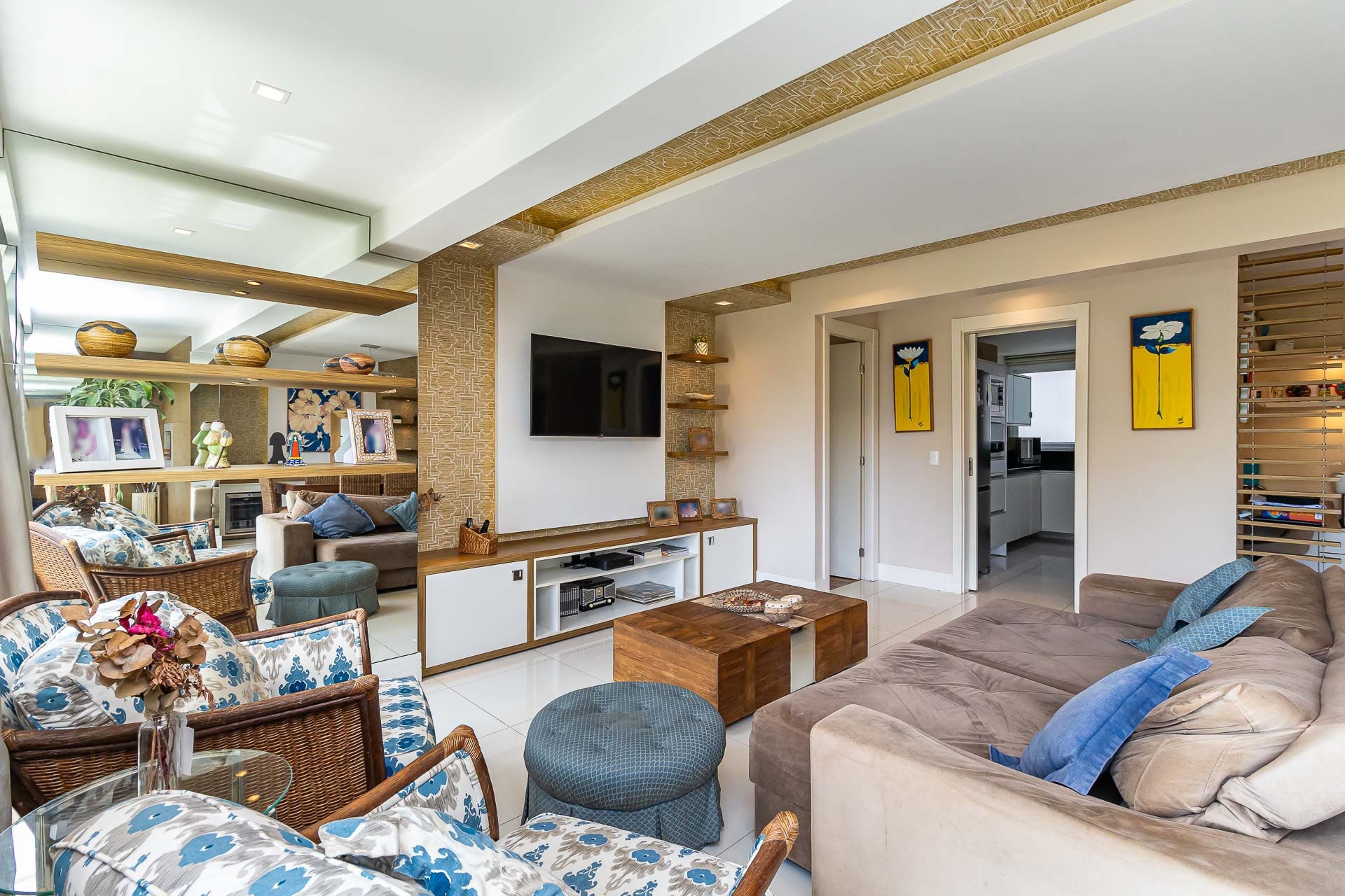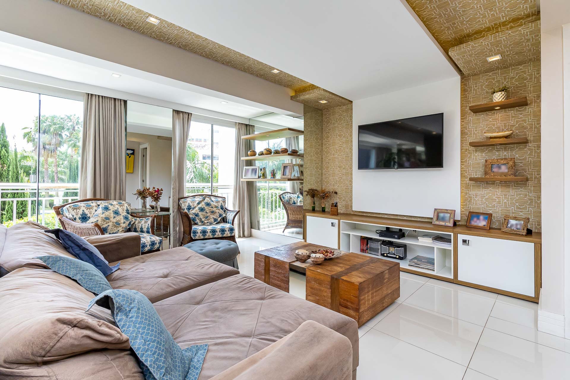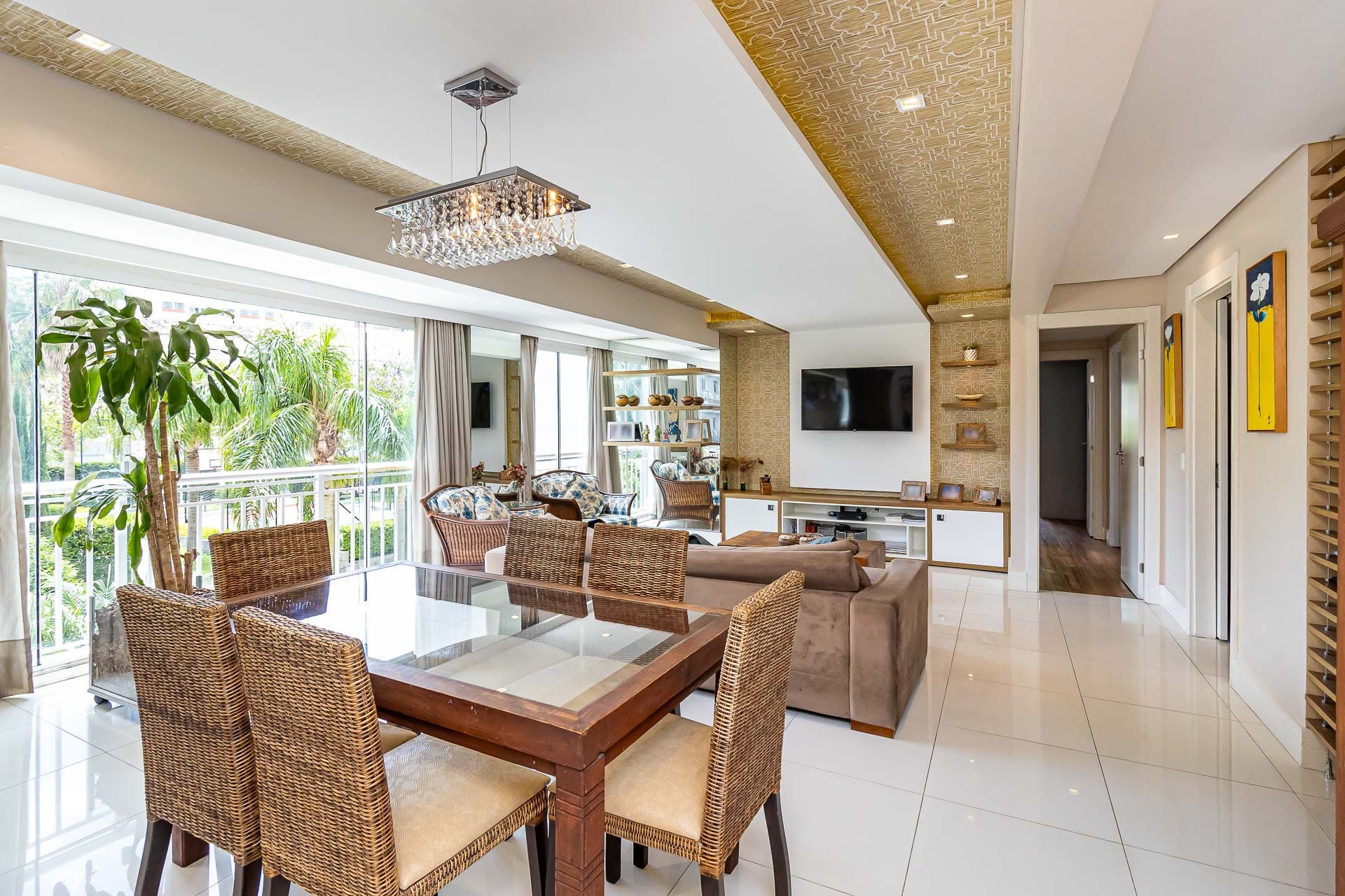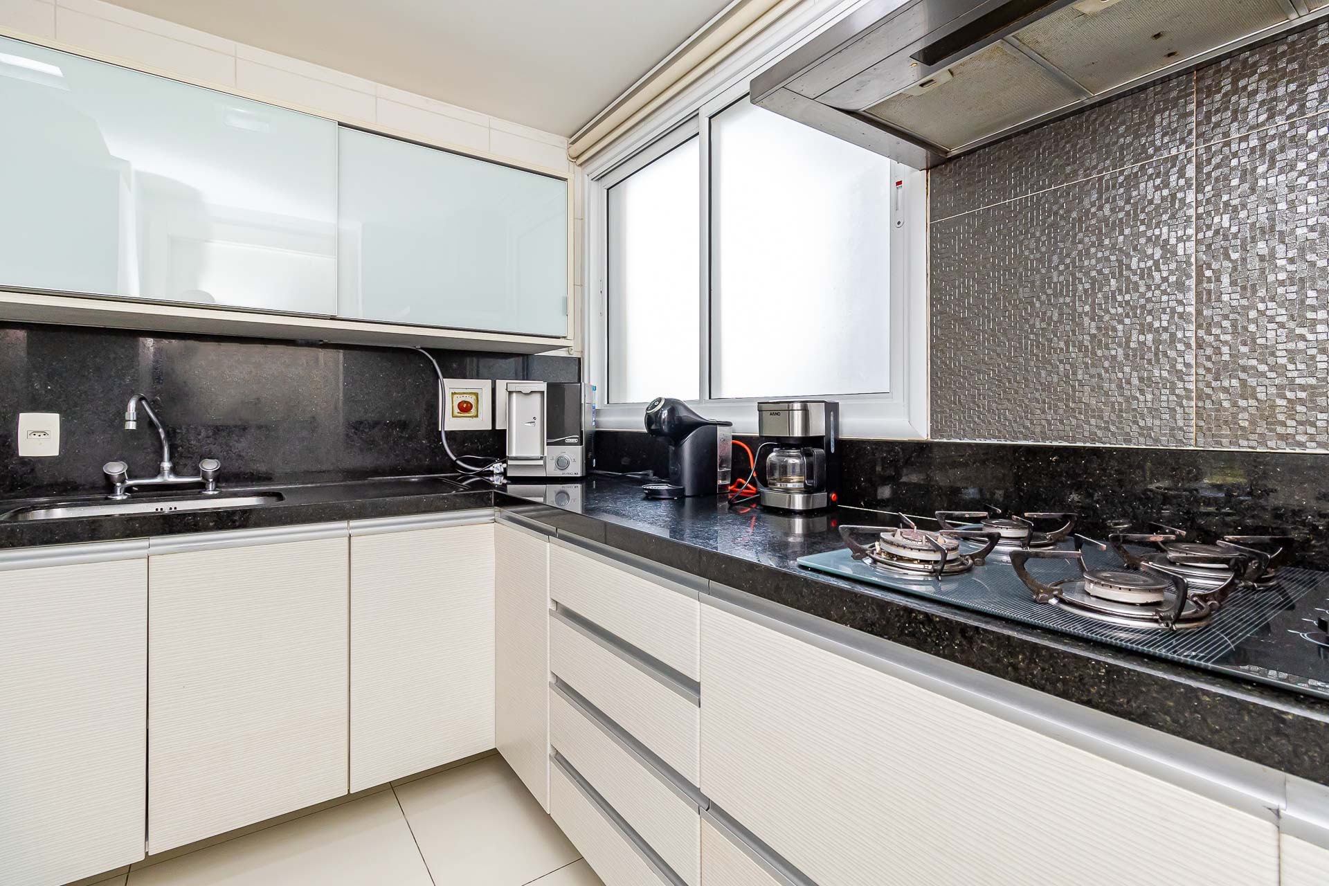 Living estendido integrado a cozinha americana completa, churrasqueira, lavabo, área de serviço, orientação solar voltada para o Norte, 2 vagas de garagem.