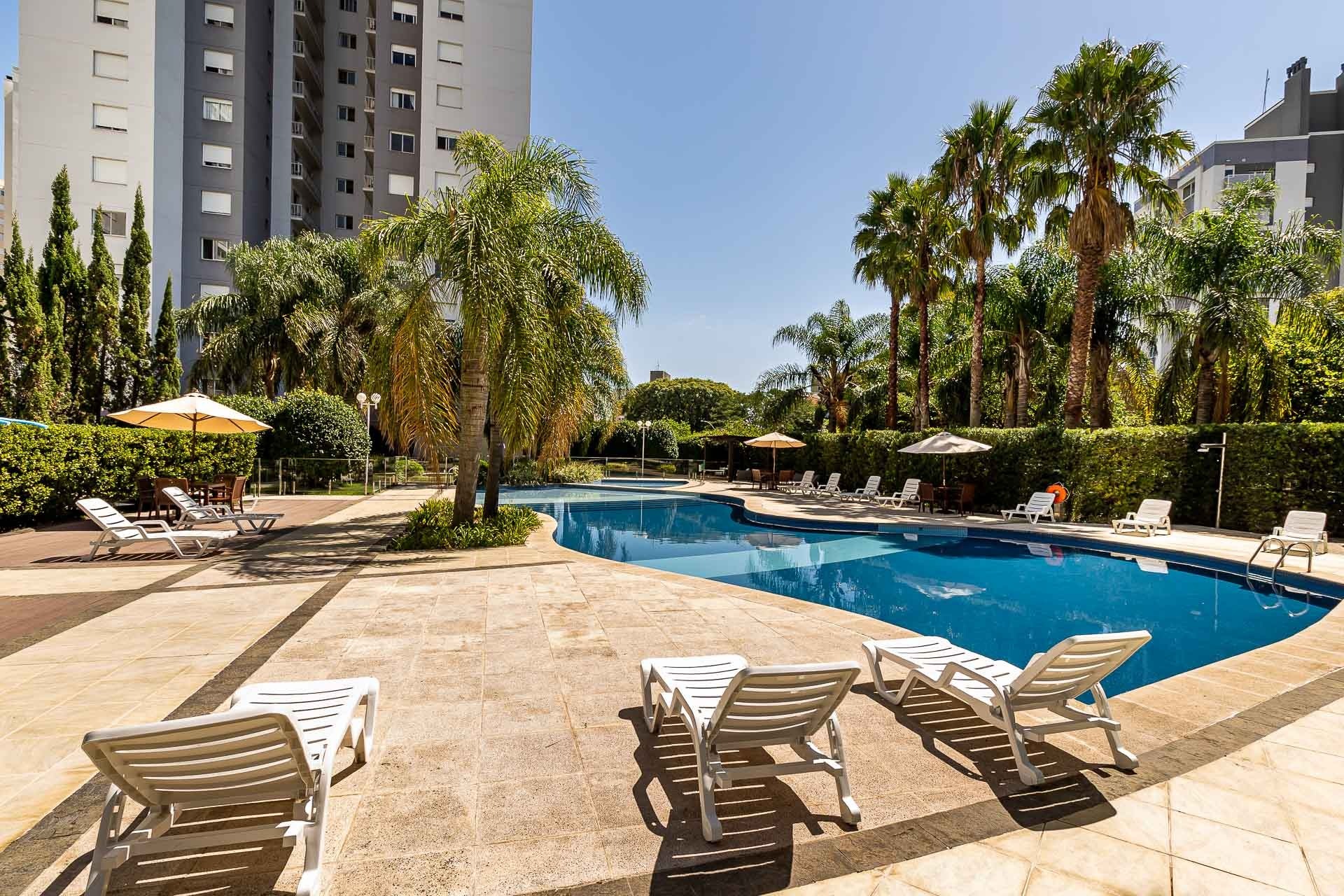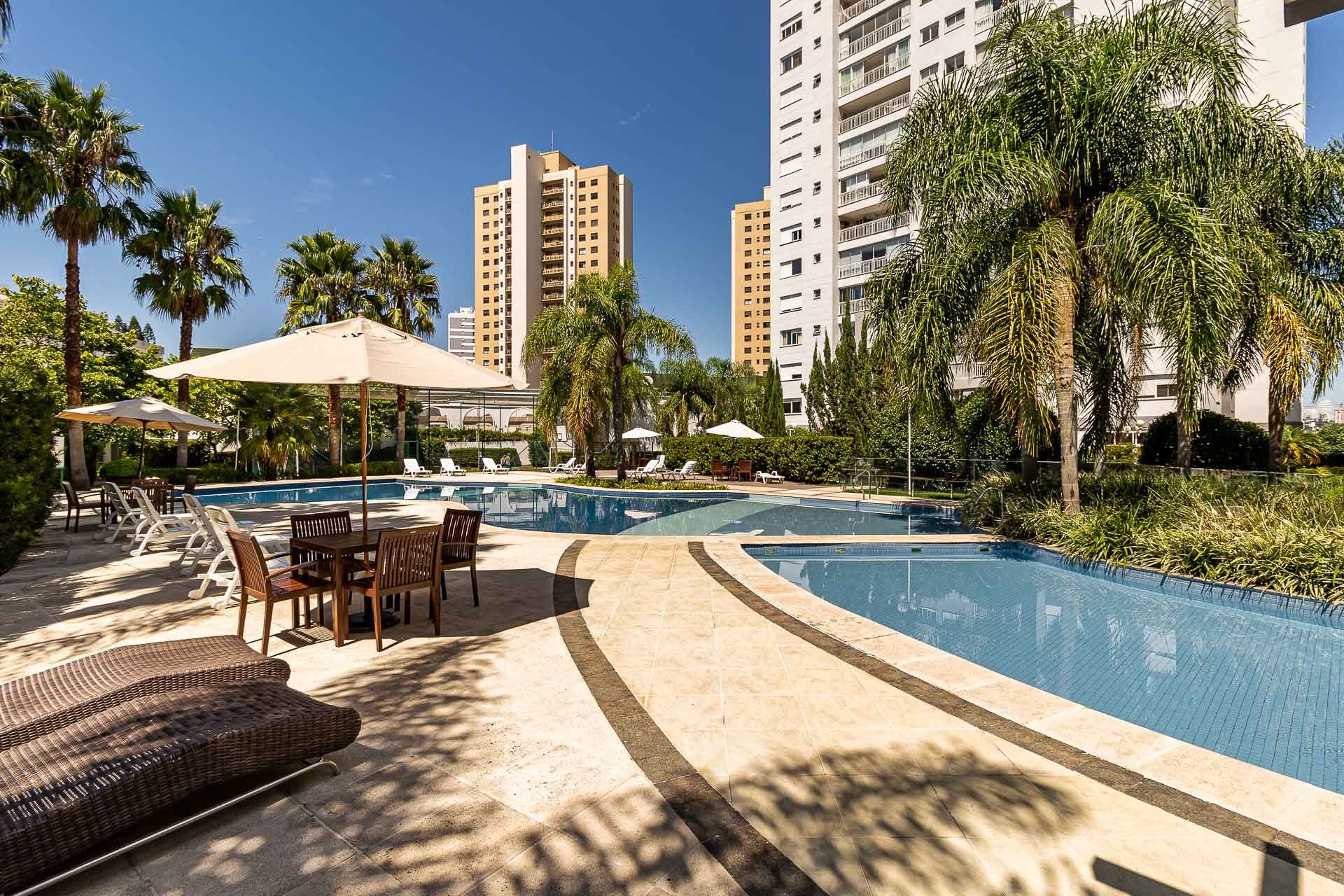Apartamento com 3 quartos, Churrasqueira e Lareira com uma piscina deslumbrante