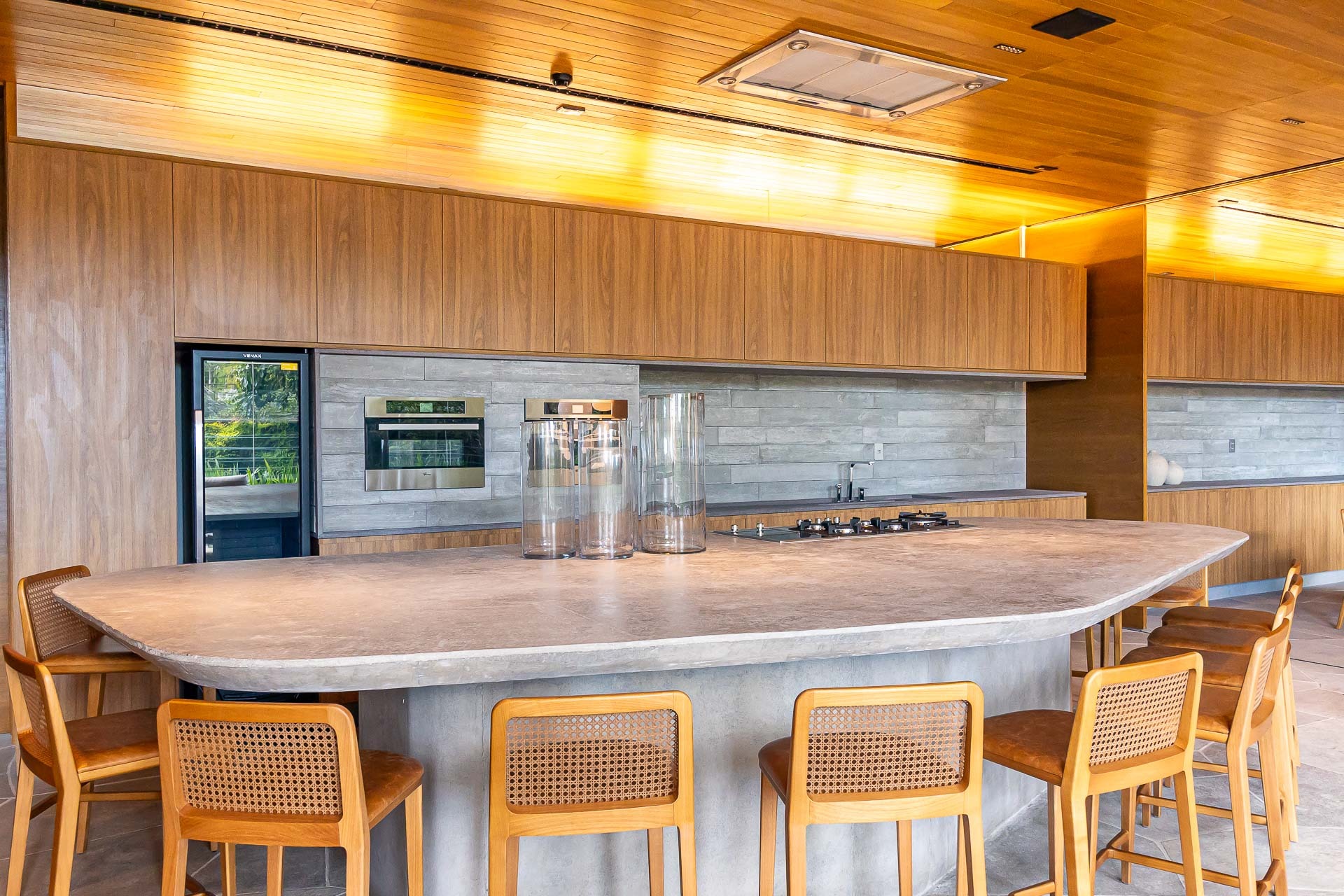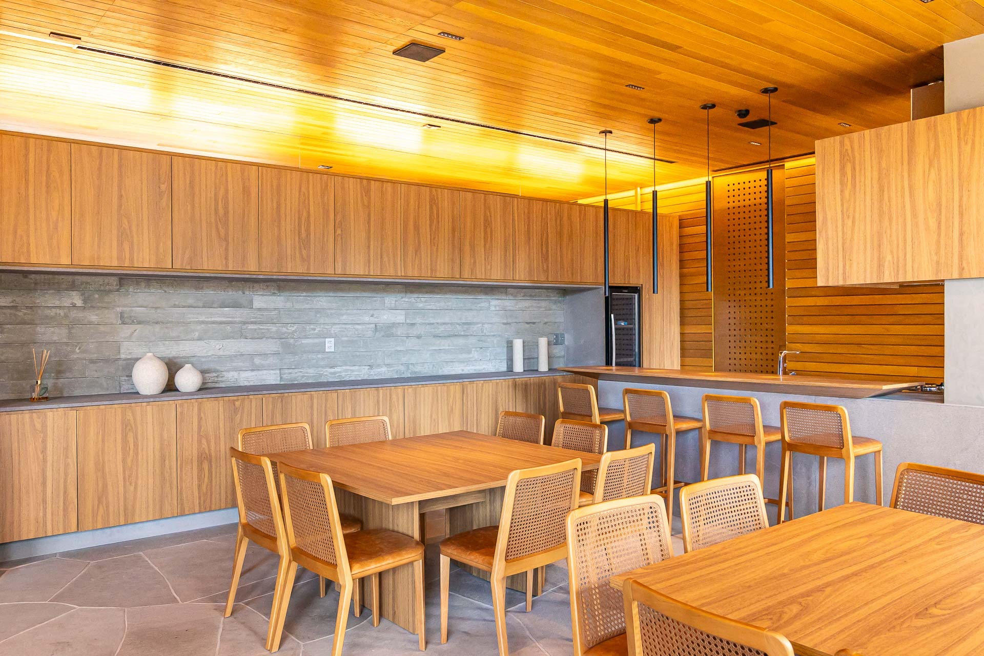 Living para 3 ambientes, com lavabo, churrasqueira, lareira, sacada aberta, ampla cozinha com móveis planejados, lavanderia, dependência de empregada completa e hall privativo. A área íntima conta com 4 amplas suítes, sendo 2 americanas e 1 máster com closet.