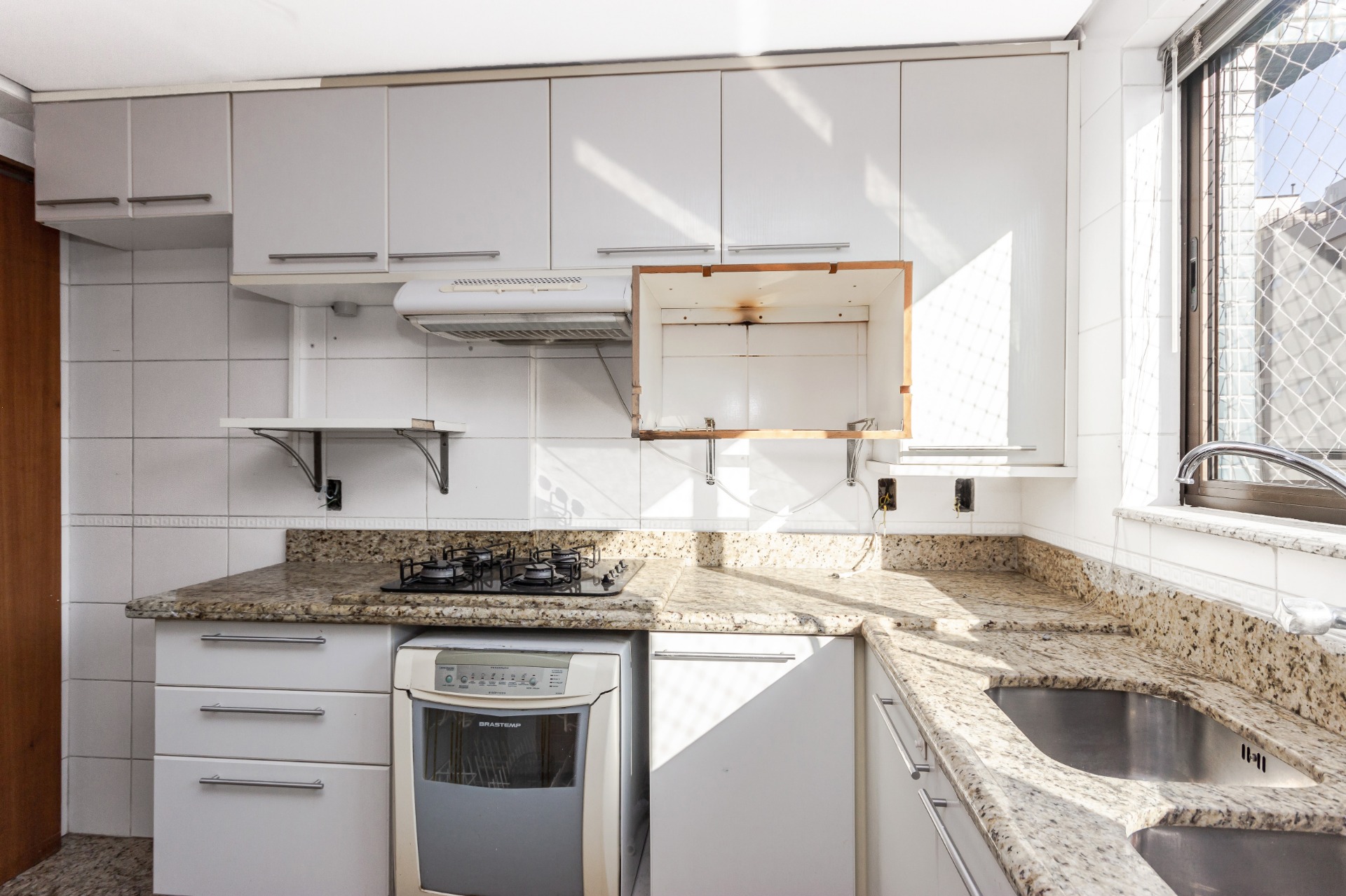 Apartamento para alugar mobiliado com 4 dormitórios, sendo 2 suítes, 179m de área privativa, living com ar condicionado, sacada fechada e ampla com churrasqueira, escrivaninha, cômodas, ventiladores de teto e cortinas, banheiro social com armários, cozinha completa com armários, fogão, geladeira, micro-ondas e coifa e área de serviço.