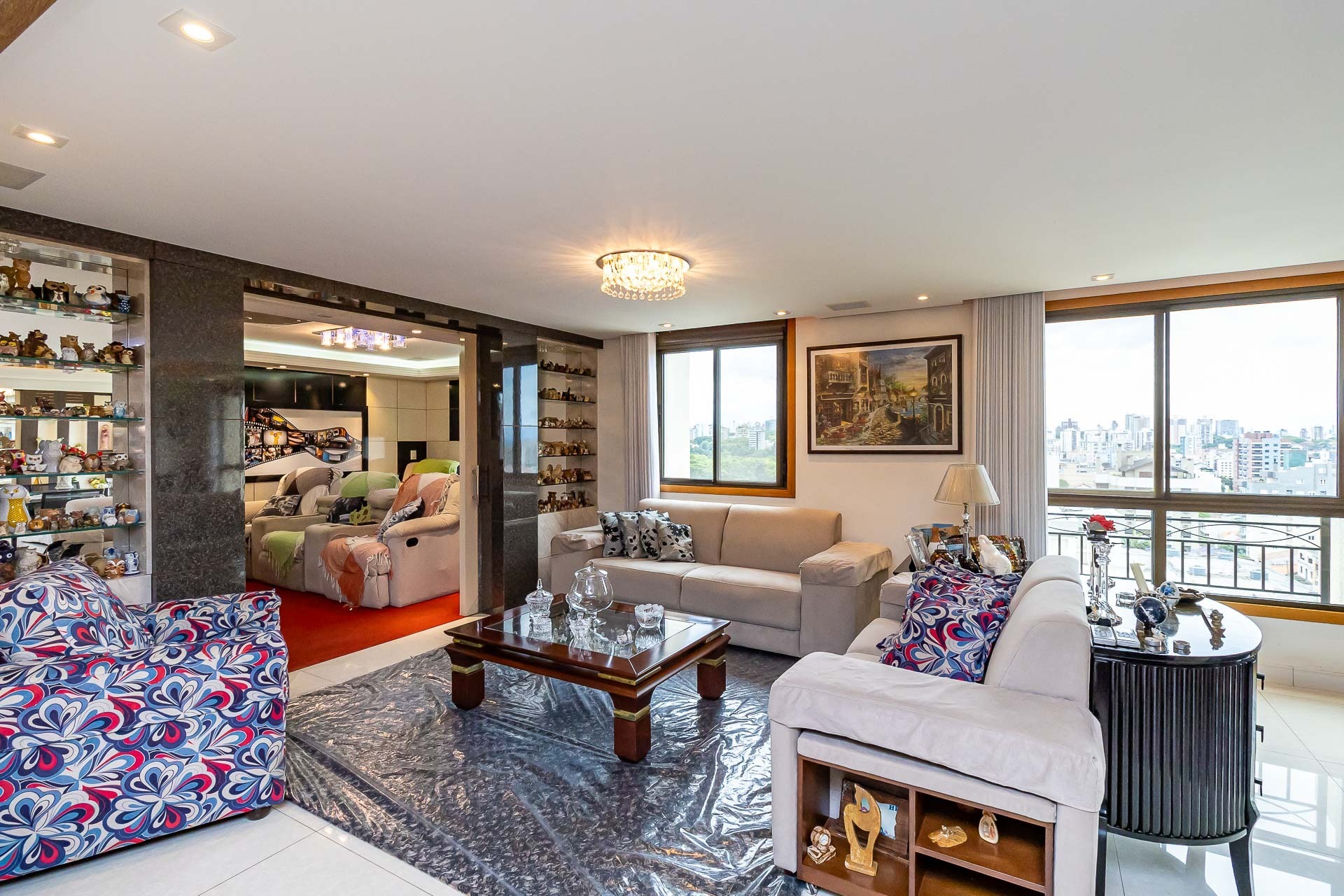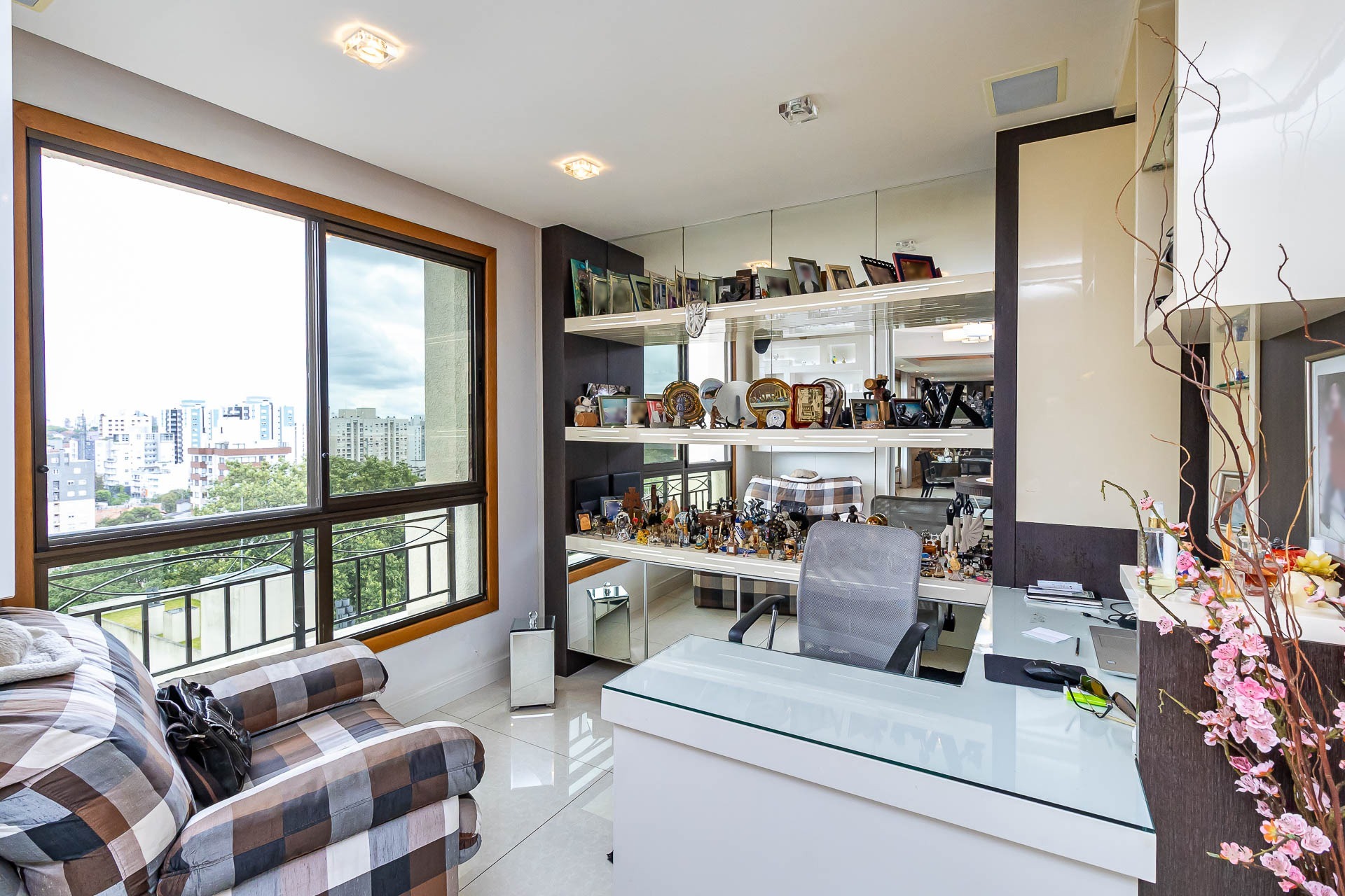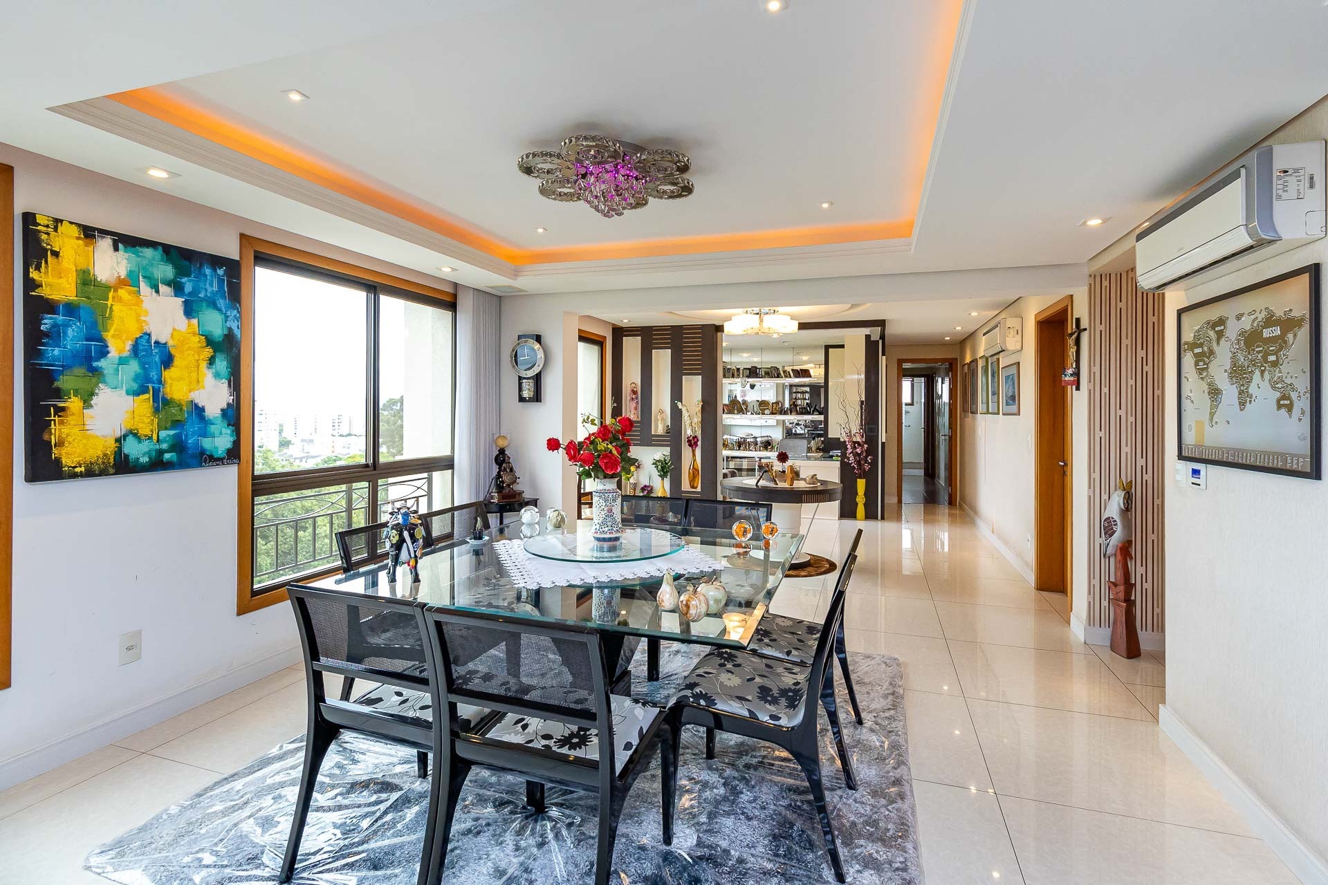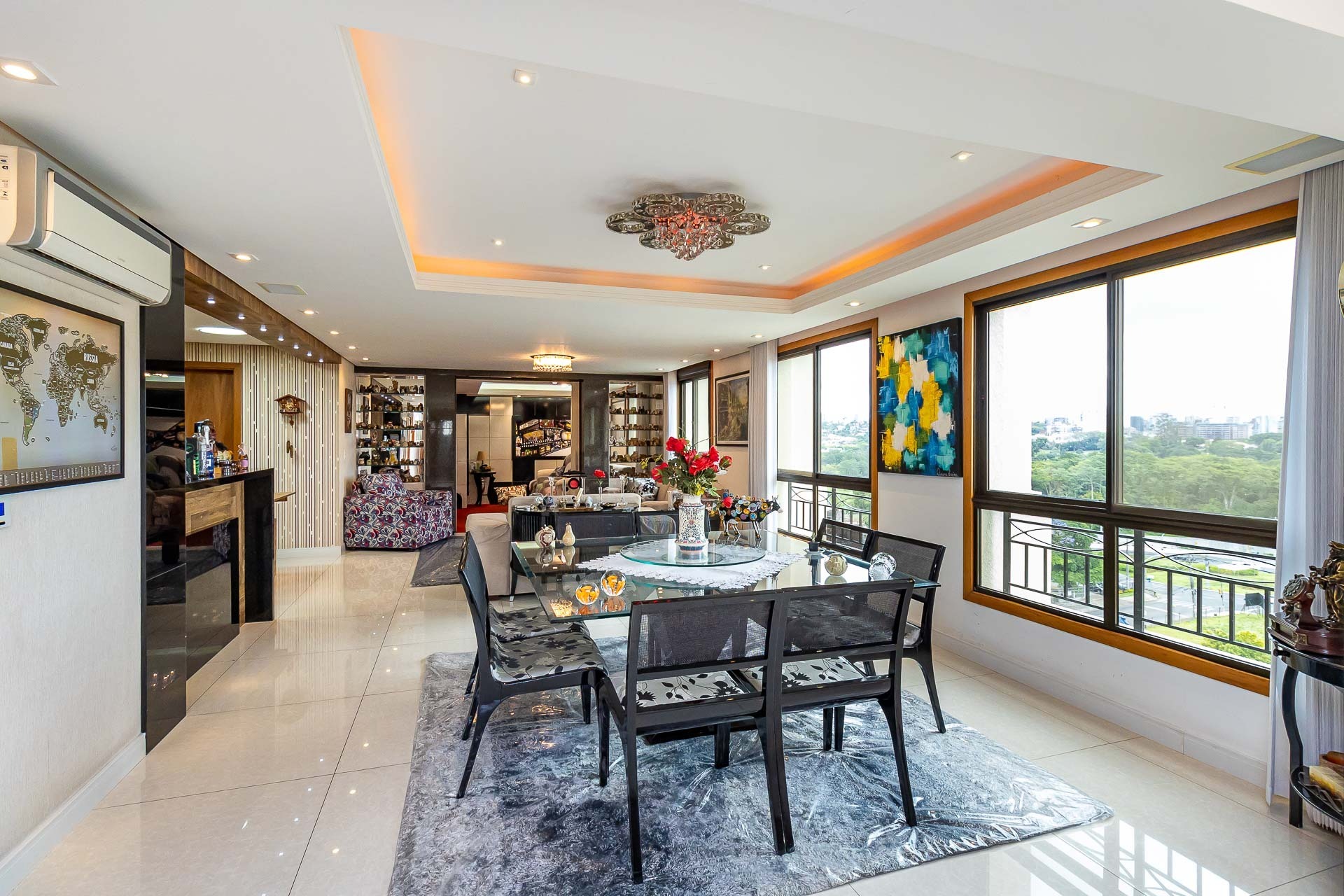 Com uma vista deslumbrante para a cidade e muito luz natural, este apartamento possui living 3 ambientes com lareira e churrasqueira, gabinete, copa cozinha, area de serviço separada, banheiro de serviço, entrada de serviço.