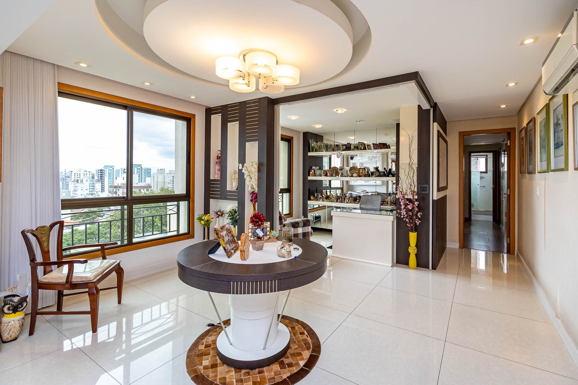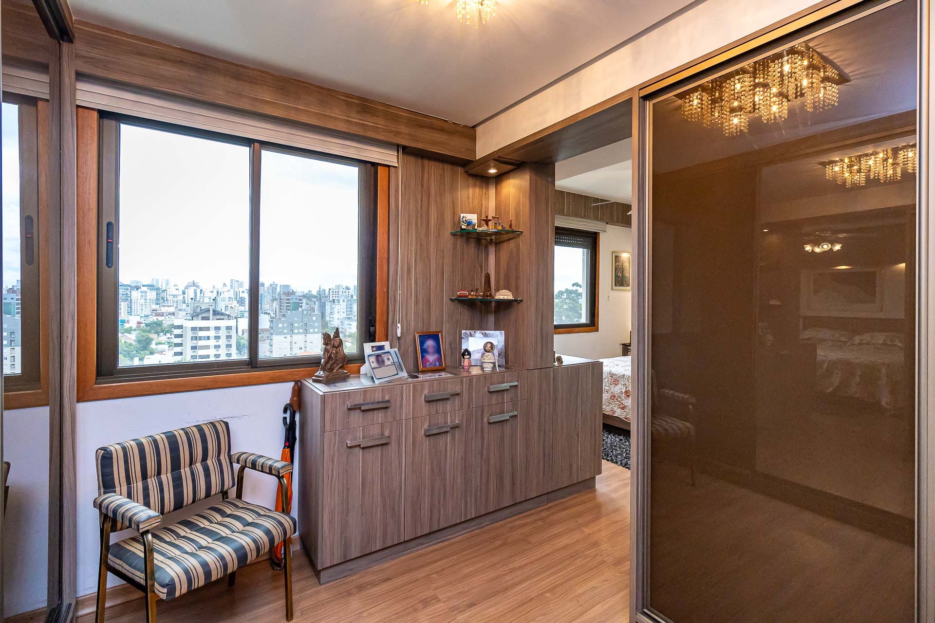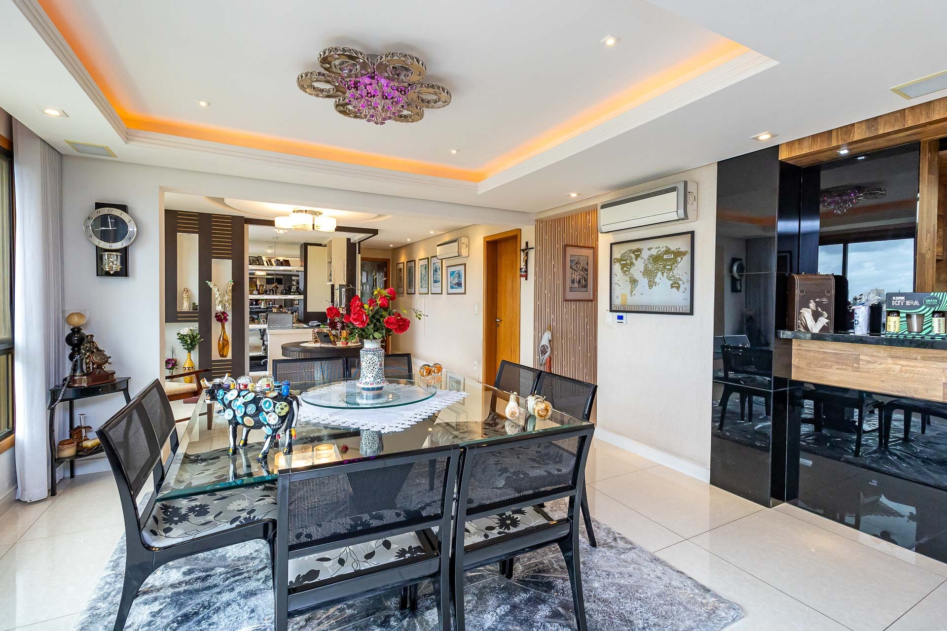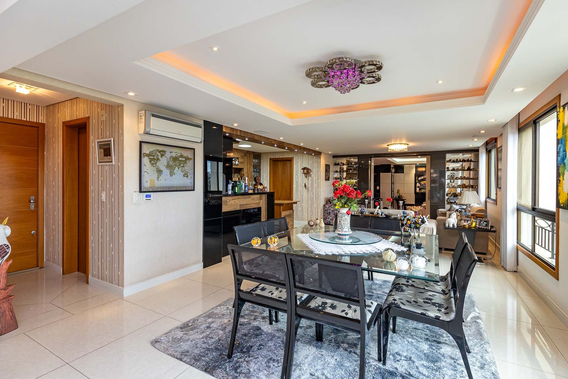 Com uma vista deslumbrante para a cidade e muito luz natural, este apartamento possui living 3 ambientes com lareira e churrasqueira, gabinete, copa cozinha, area de serviço separada, banheiro de serviço, entrada de serviço.