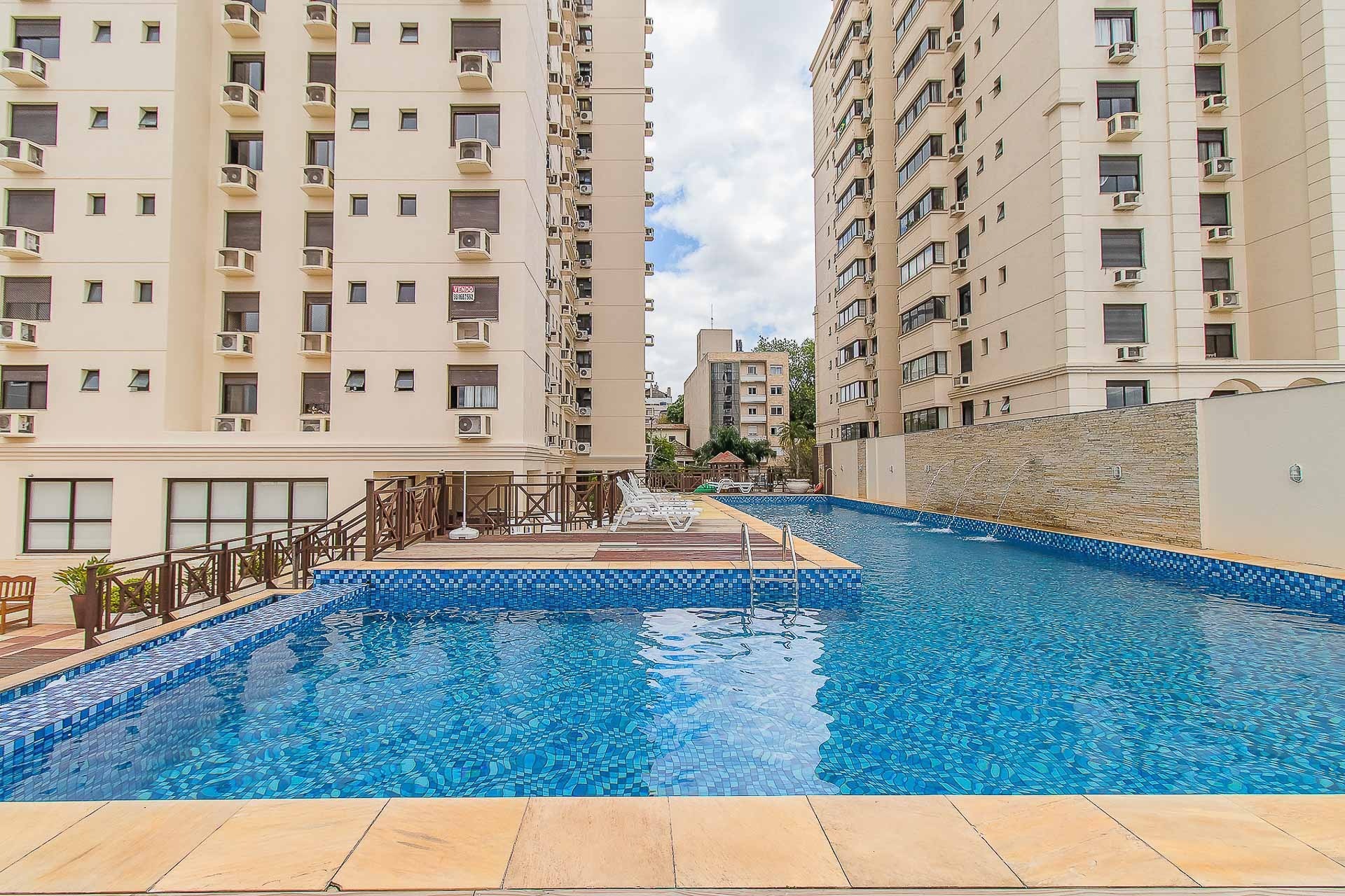 Apartamento com 4 quartos, Hidromassagem e Quadra de Tênis com uma linda piscina azul da cor do mar