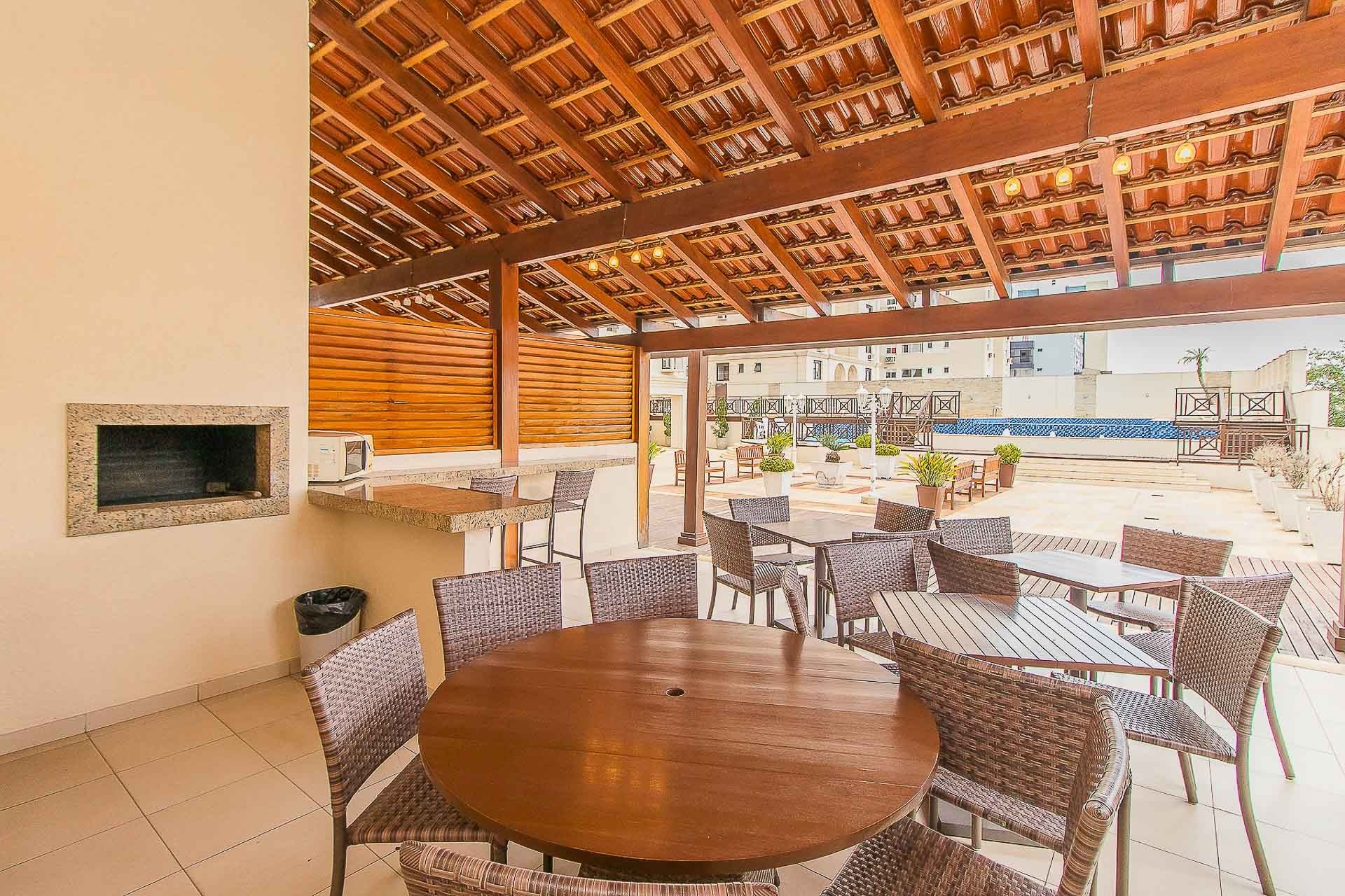 Apartamento para alugar mobiliado com 4 dormitórios, sendo 2 suítes, 179m de área privativa, living com ar condicionado, sacada fechada e ampla com churrasqueira, escrivaninha, cômodas, ventiladores de teto e cortinas, banheiro social com armários, cozinha completa com armários, fogão, geladeira, micro-ondas e coifa e área de serviço.