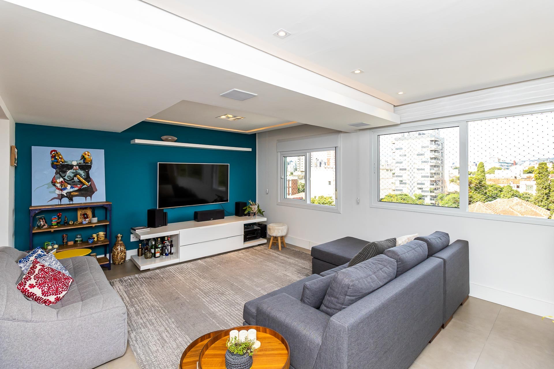 Apartamento, com 145m² privativos, 3 suítes, living 2 ambientes, lavabo, lareira, cozinha americana, area de serviço separada, com entrada de serviço. Terraço gourmet com churrasqueira.