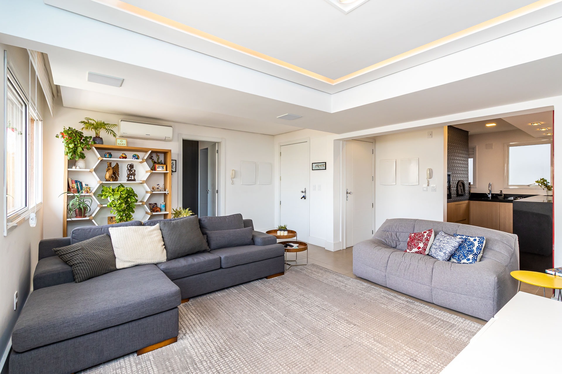 Apartamento semimobiliado gardem 3 dormitórios sendo 1 suíte, com 143m² de área privativa 1 vaga dupla. Living estendido com pátio integrado e espaço gourmet com churrasqueira, cozinha área se serviço com pátio. Ambiente com ótima iluminação e ventilação natural. Na área intima são 3 dormitórios sendo 1 suíte com gabinete, 2 dormitórios sendo 1 usado como home office e banheiro auxiliar. Prédio en...