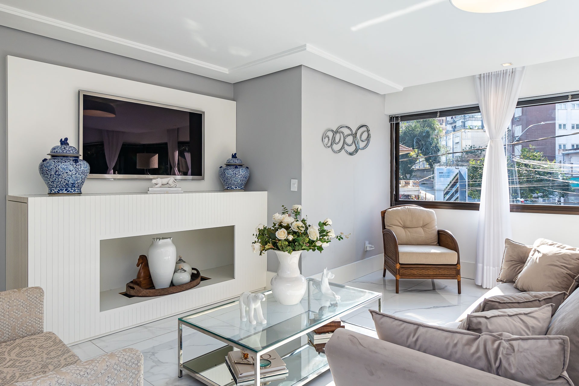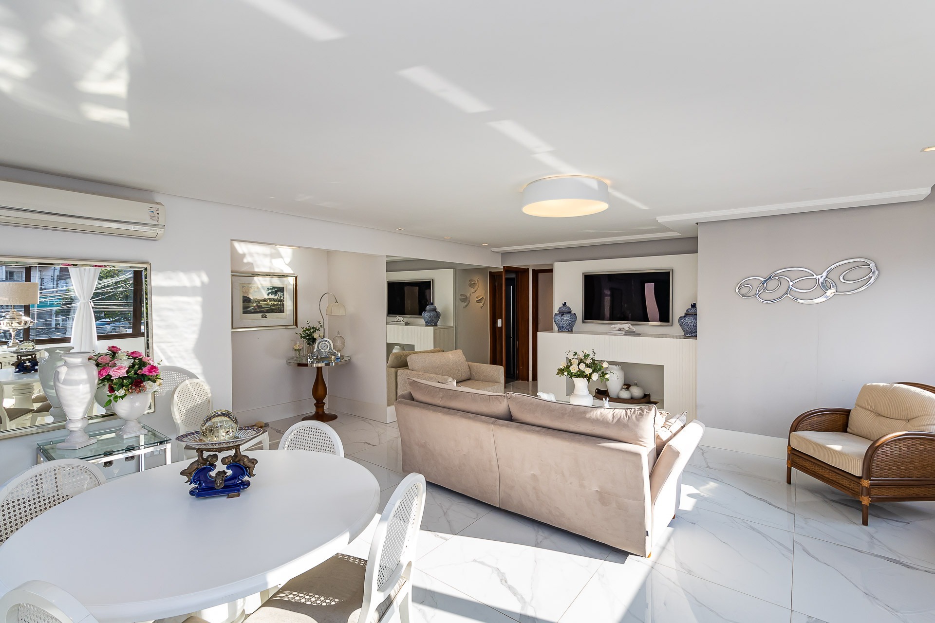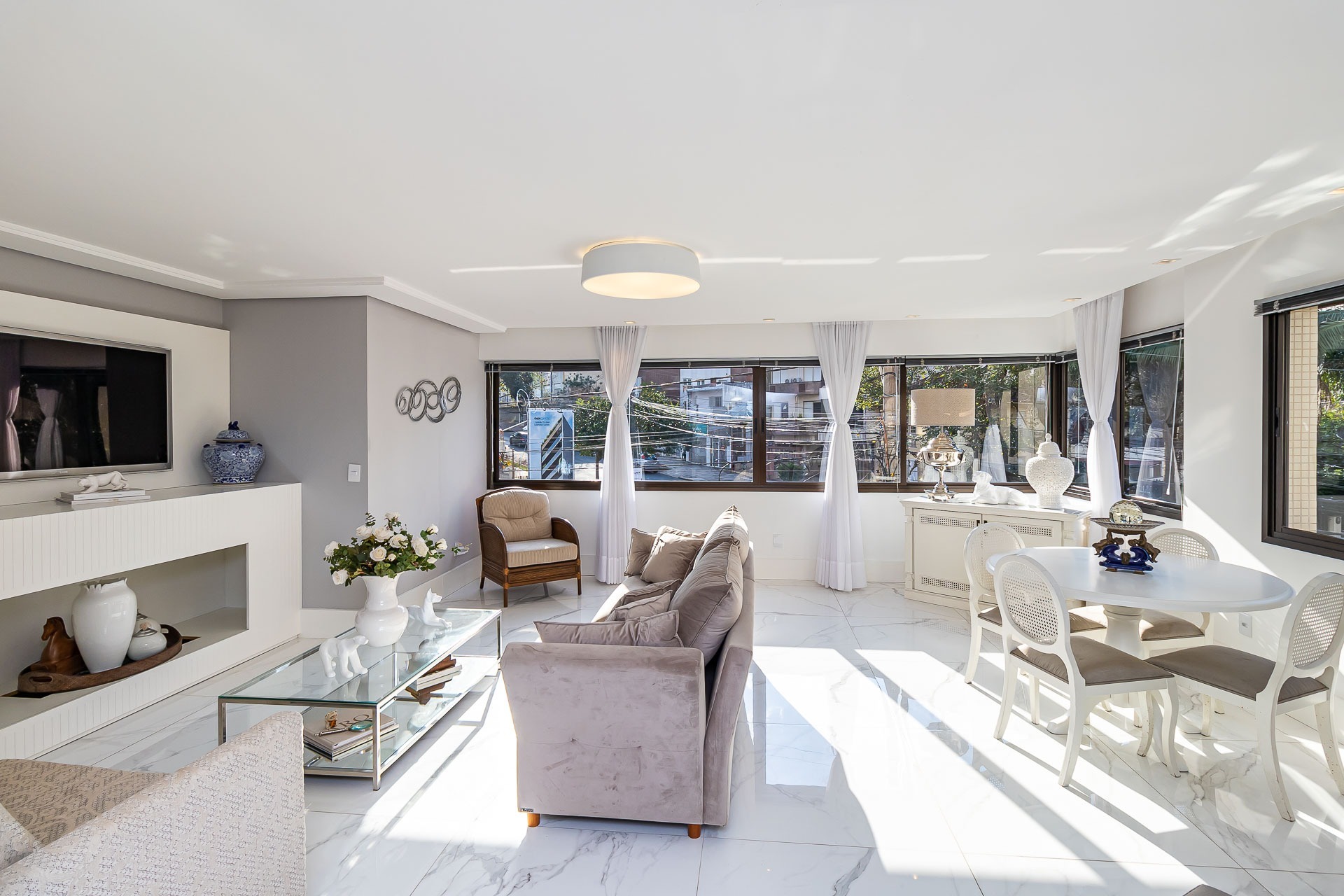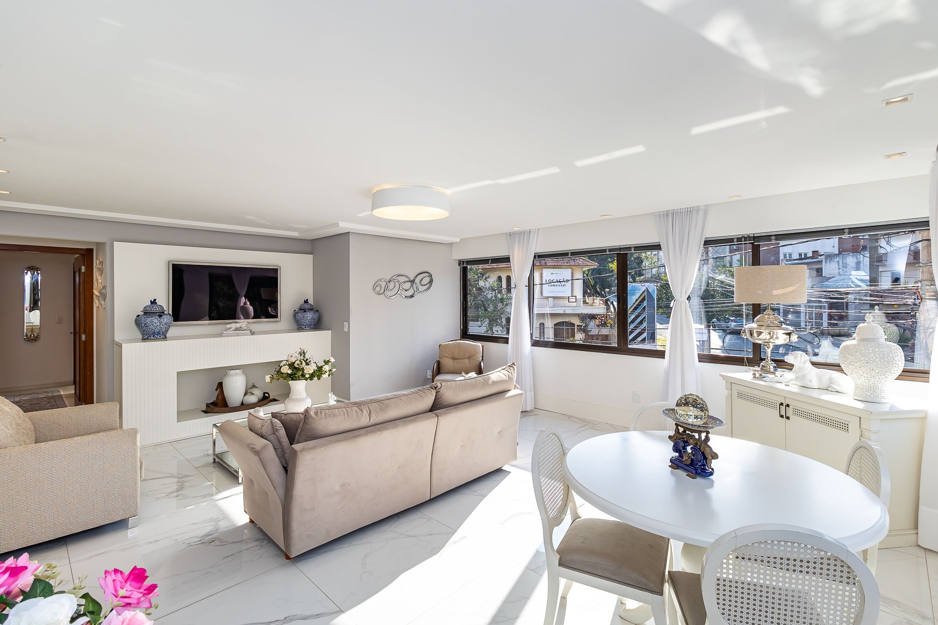 Apartamento de 180 m² privativos, composto por 3 dormitórios, sendo 2 suítes, banheiro social que atende o terceiro dormitório, generoso living para três ambientes, lareira, espaço gourmet com churrasqueira, cozinha com copa, área de serviço e banheiro auxiliar, 3 vagas de garagem + depósito. Imóvel com muitas benfeitorias, totalmente mobiliado, inclusive eletrodomésticos, móveis fixos de excelen...