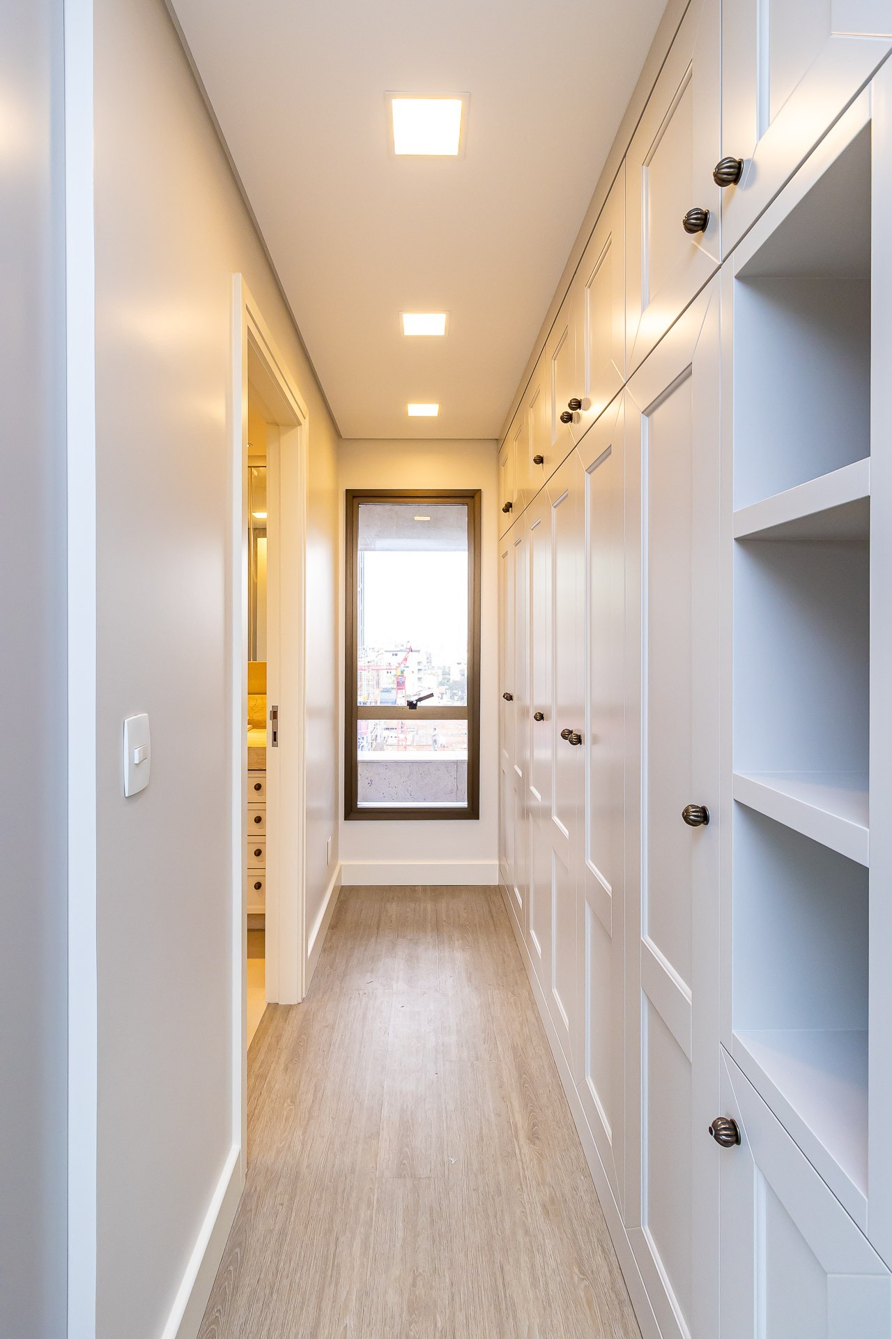 Pé-direito de 3m e esquadrias piso-teto que permitem ambientes abertos, arejados e com muita iluminação natural. Além disso, as esquadrias fazem com que o interior se integre com o espaço externo, tornando o living em uma grande varanda. A ideia é descomplicar a vida e favorecer o convívio.