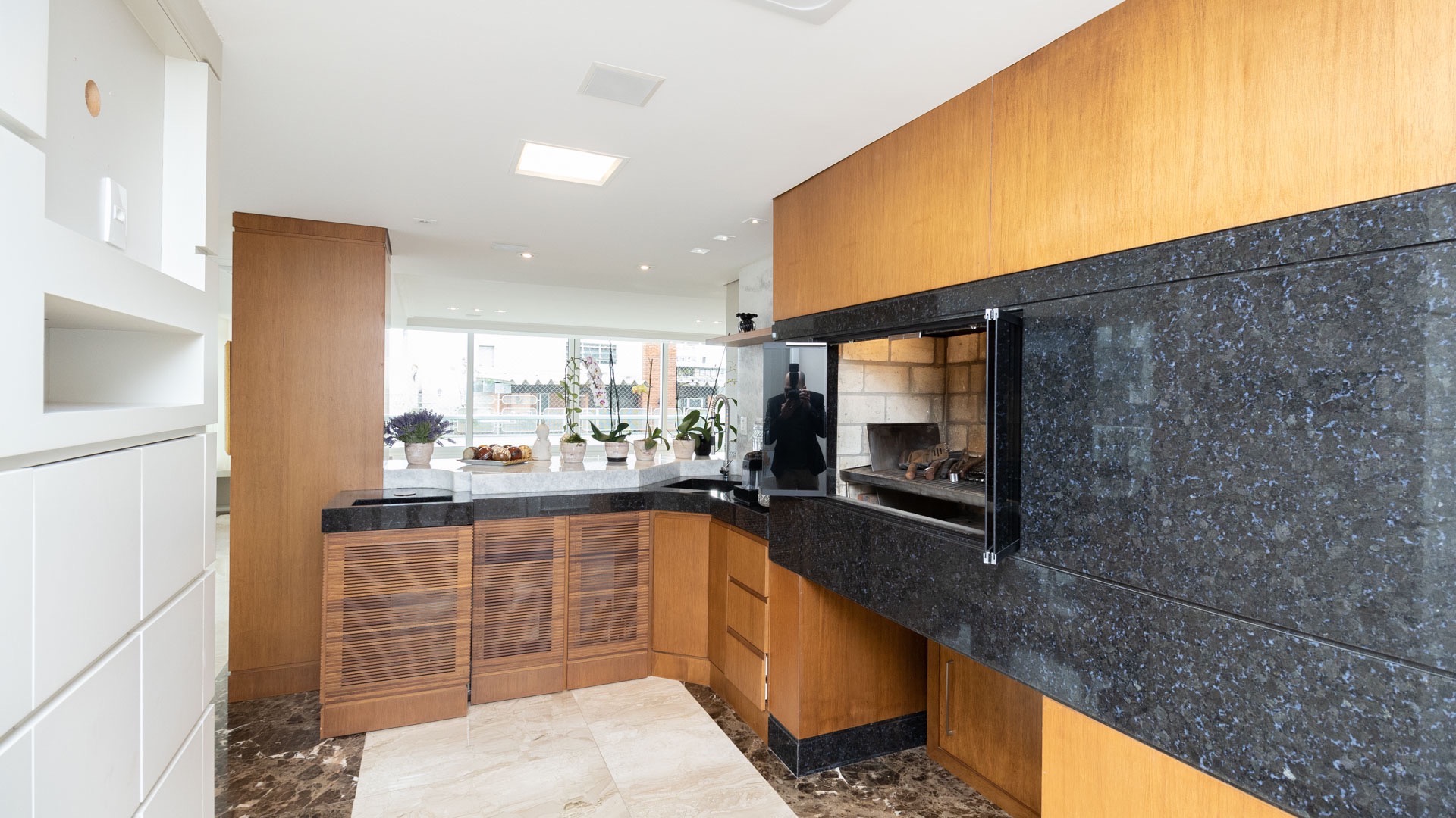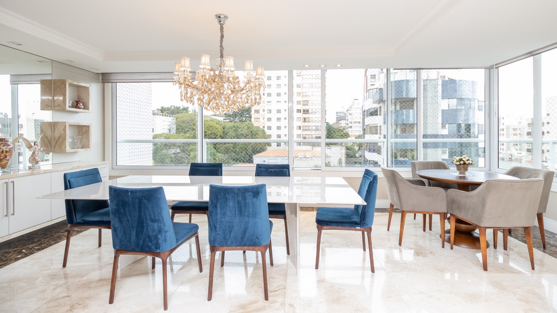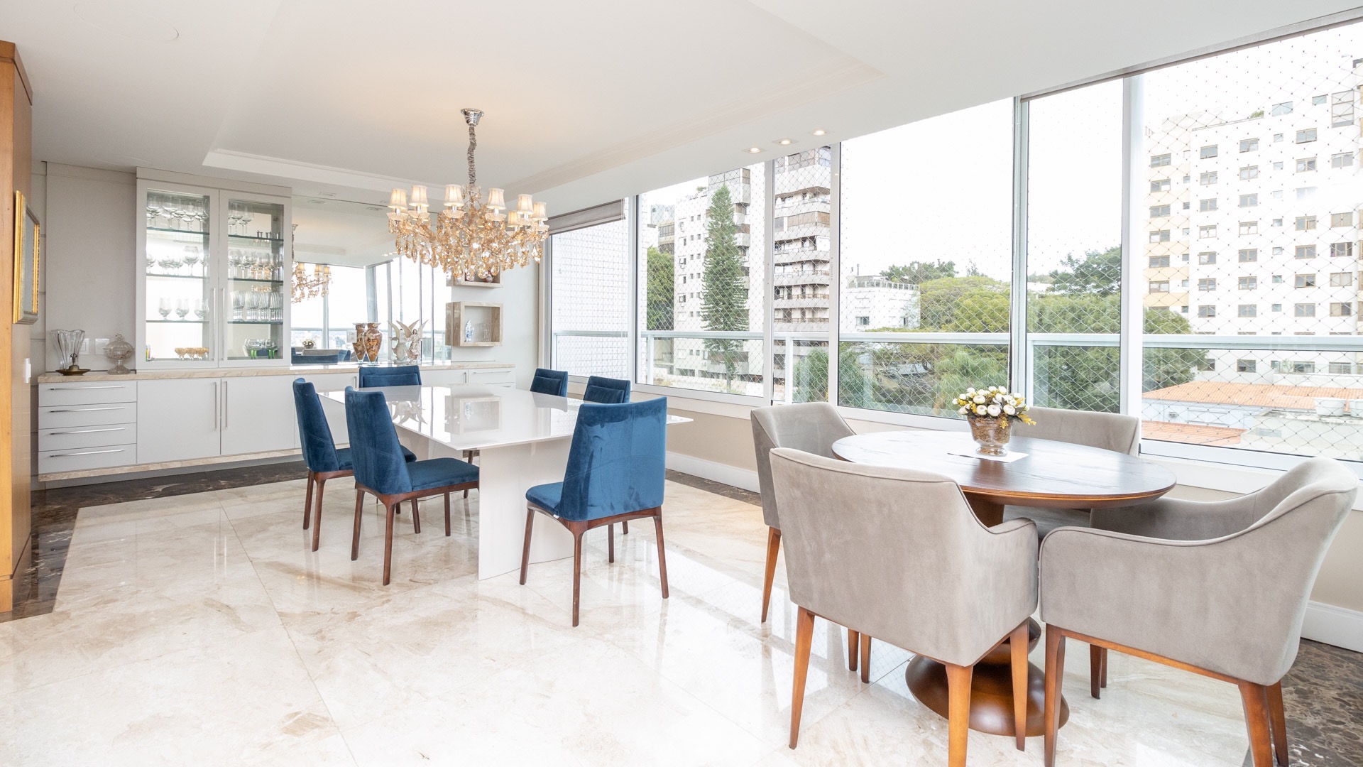 Além disso há a sacada com churrasqueira, é desse cômodo que se pode observar a vista indescritível que o apartamento possui.