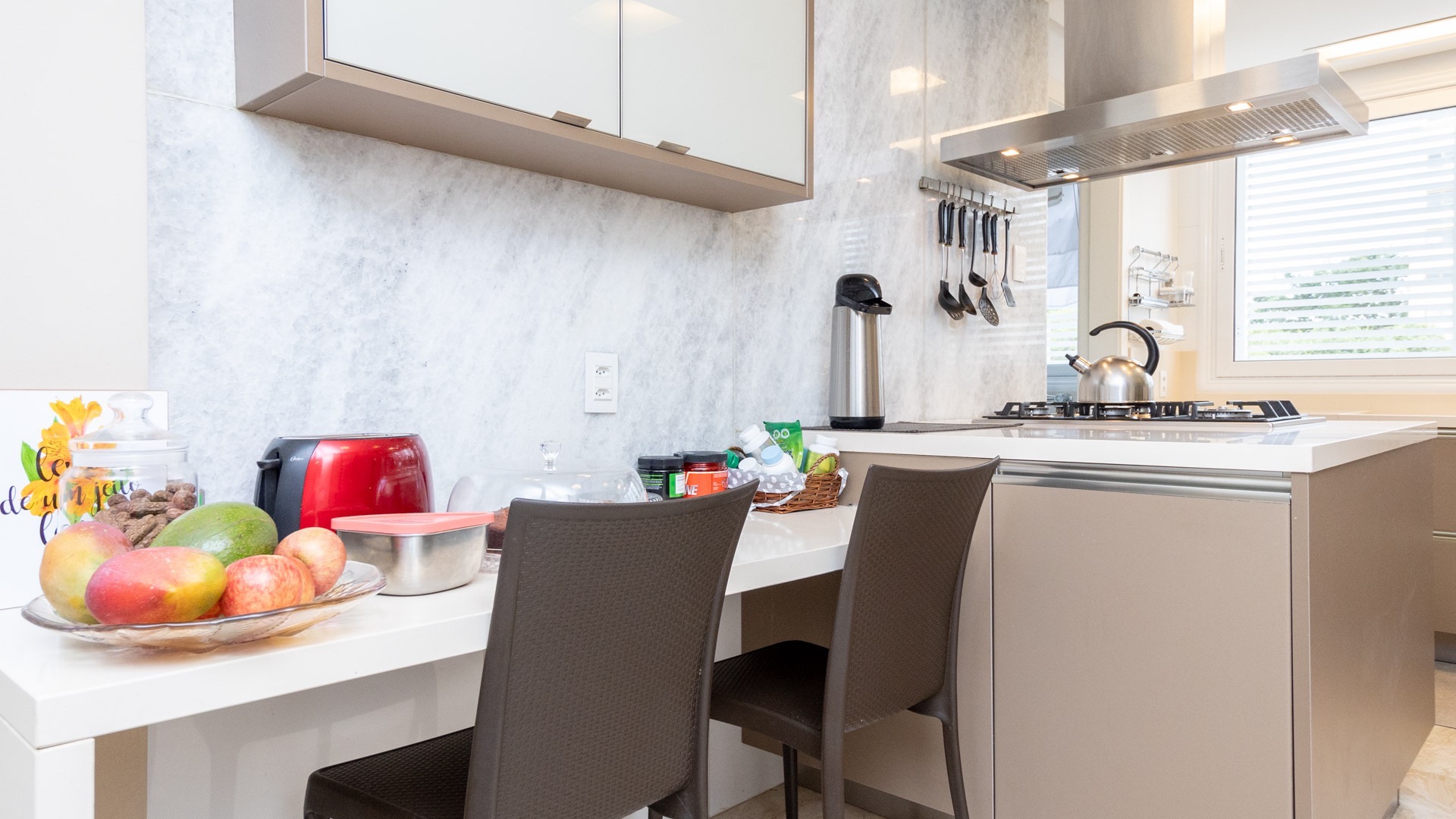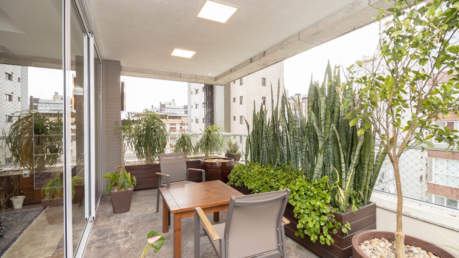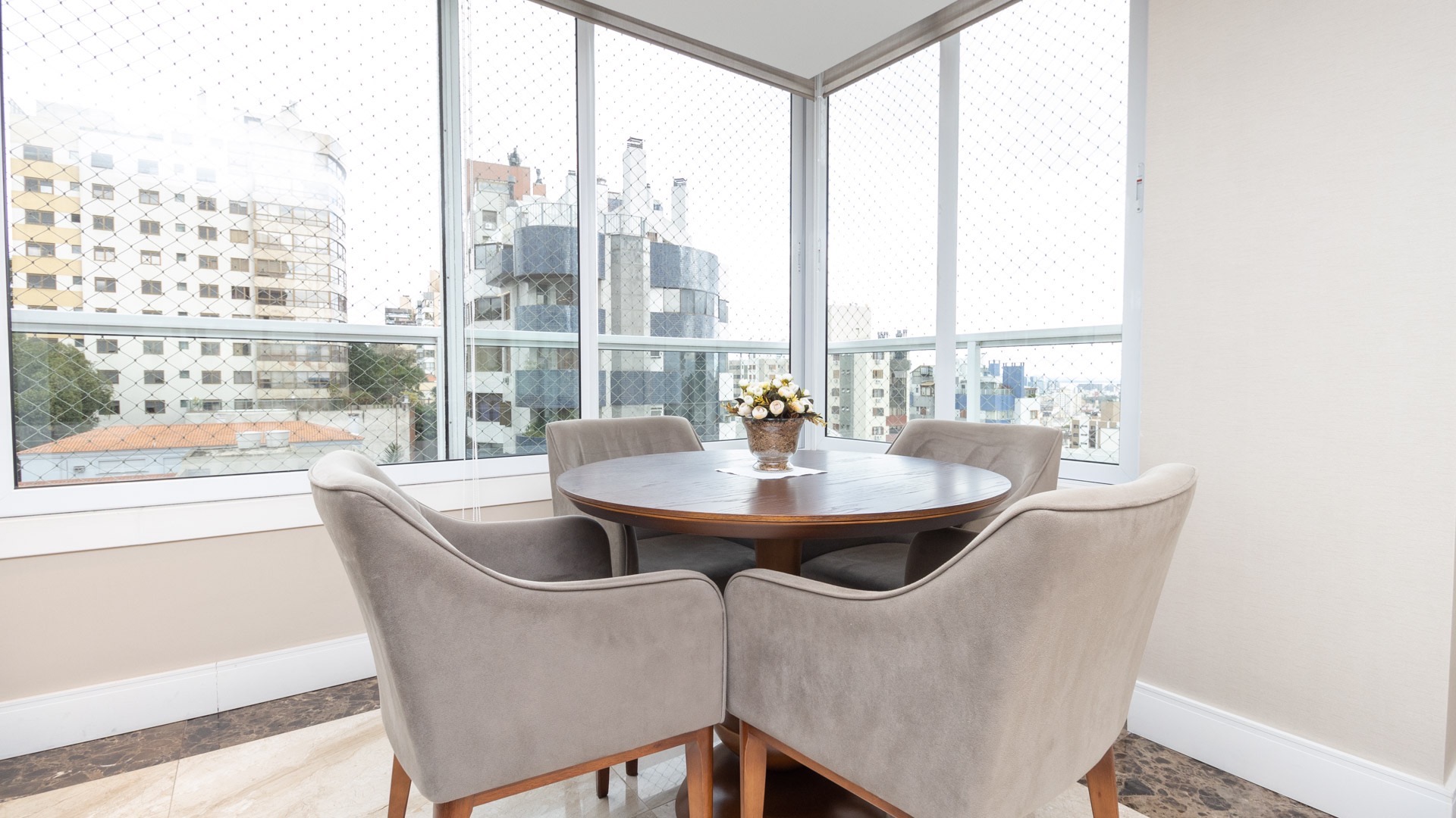 Além disso há a sacada com churrasqueira, é desse cômodo que se pode observar a vista indescritível que o apartamento possui.