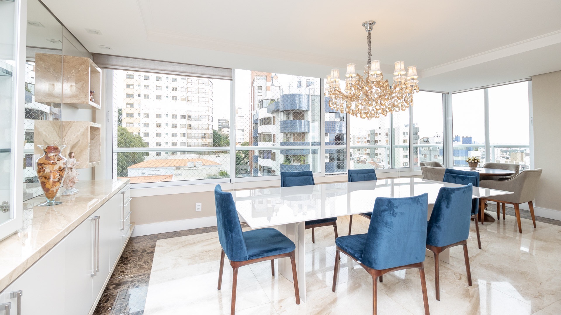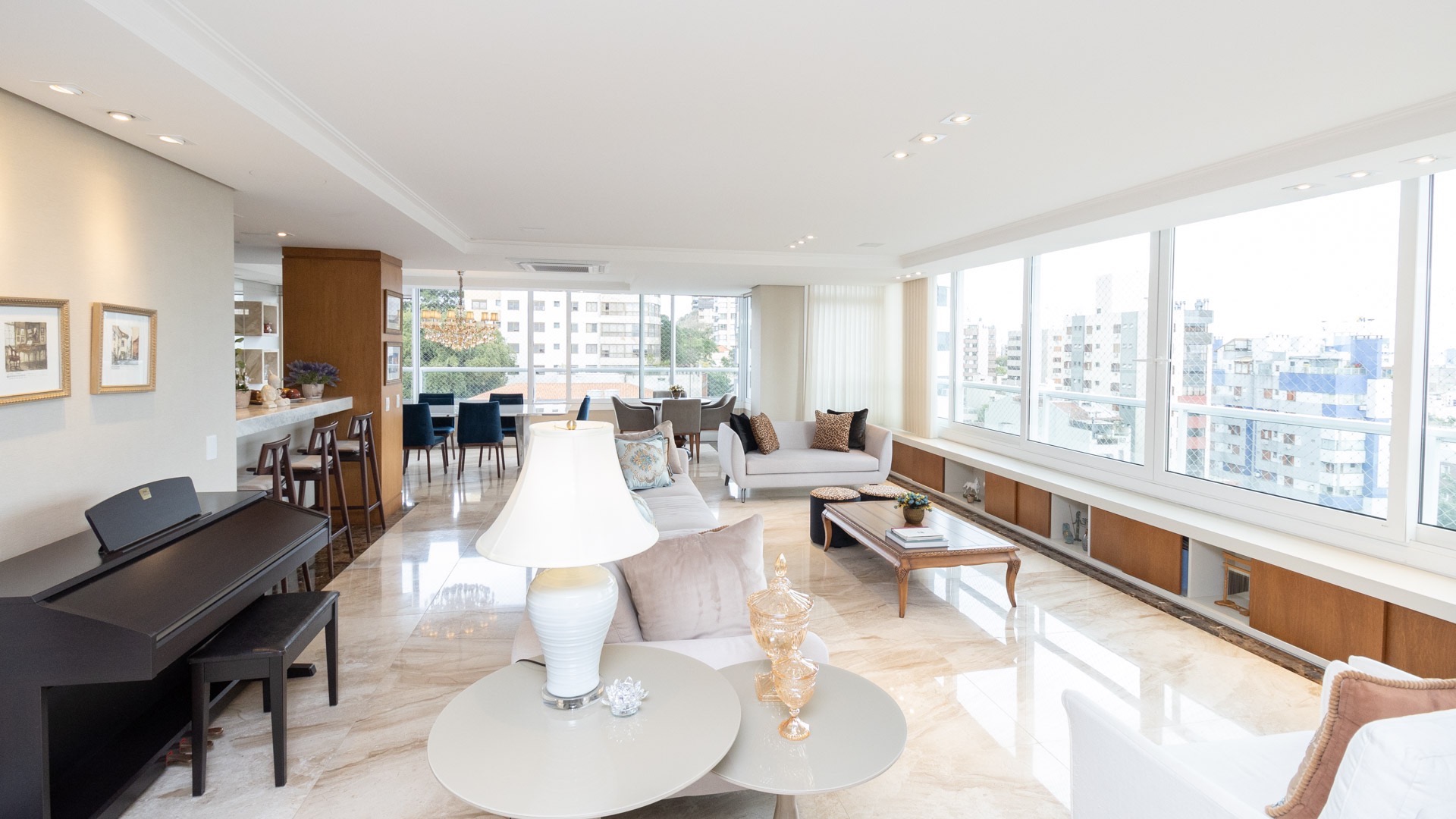 Apartamento 4 suítes com 294m² privativos no Bairro Bela Vista. Amplo living 4 ambientes, lareira e lavabo, copa cozinha, área de serviço, dependência de empregada (transformada em escritório) , espaço gourmet com churrasqueira parrilla, aquecimento em todo apartamento, vista espetacular.