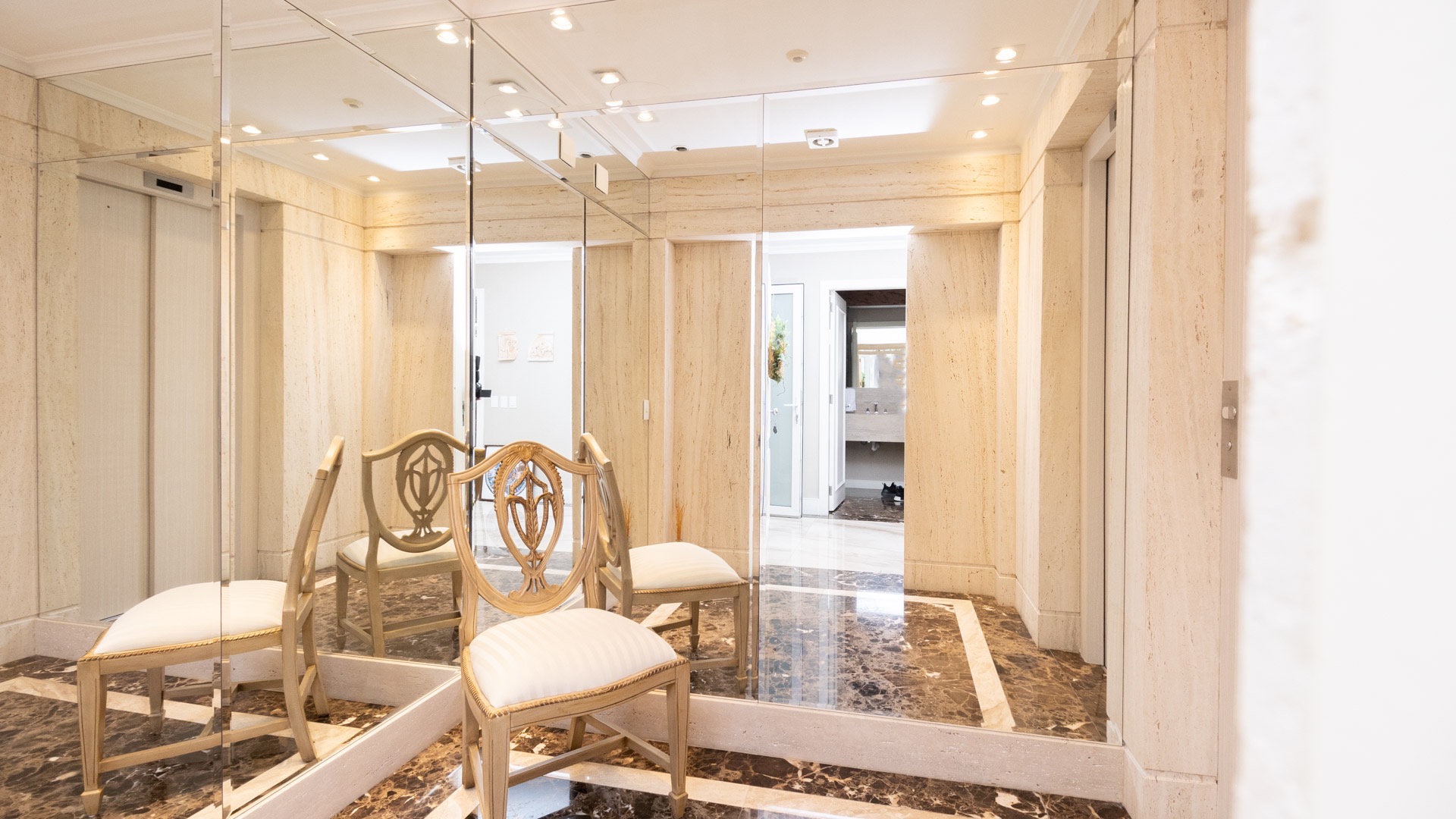 Um Apartamento por andar, são 382 m², 4 suítes, sendo a master com dois closets, banheiro ele e ela, escritório amplo, aconchegante e bem iluminado.