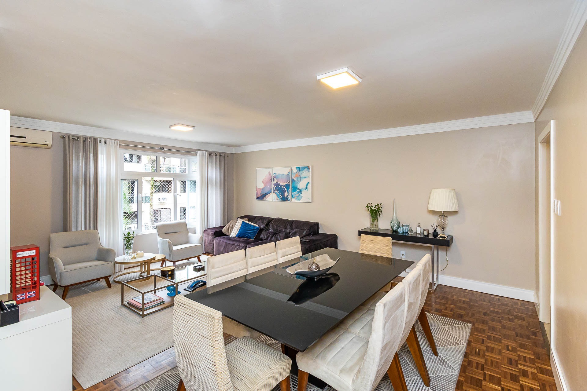 Apartamento, com 145m² privativos, 3 suítes, living 2 ambientes, lavabo, lareira, cozinha americana, area de serviço separada, com entrada de serviço. Terraço gourmet com churrasqueira.